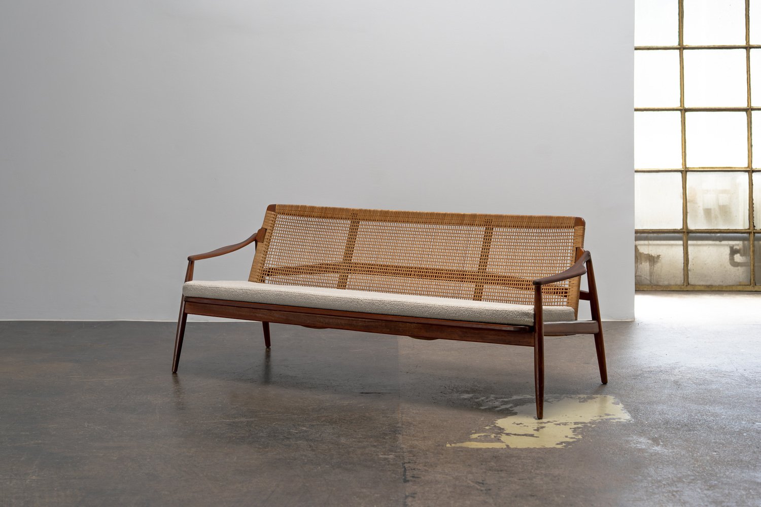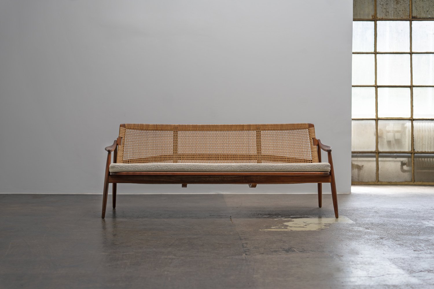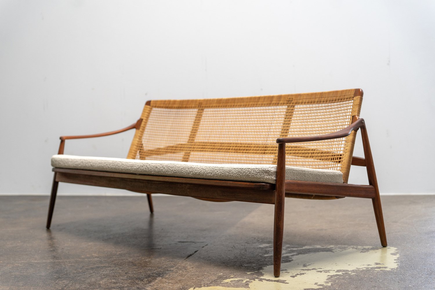 Mid-Century Modern Sofa aus Teak & Rohrgeflecht von Hartmut Lohmeyer für Wilkhahn, 1950er
