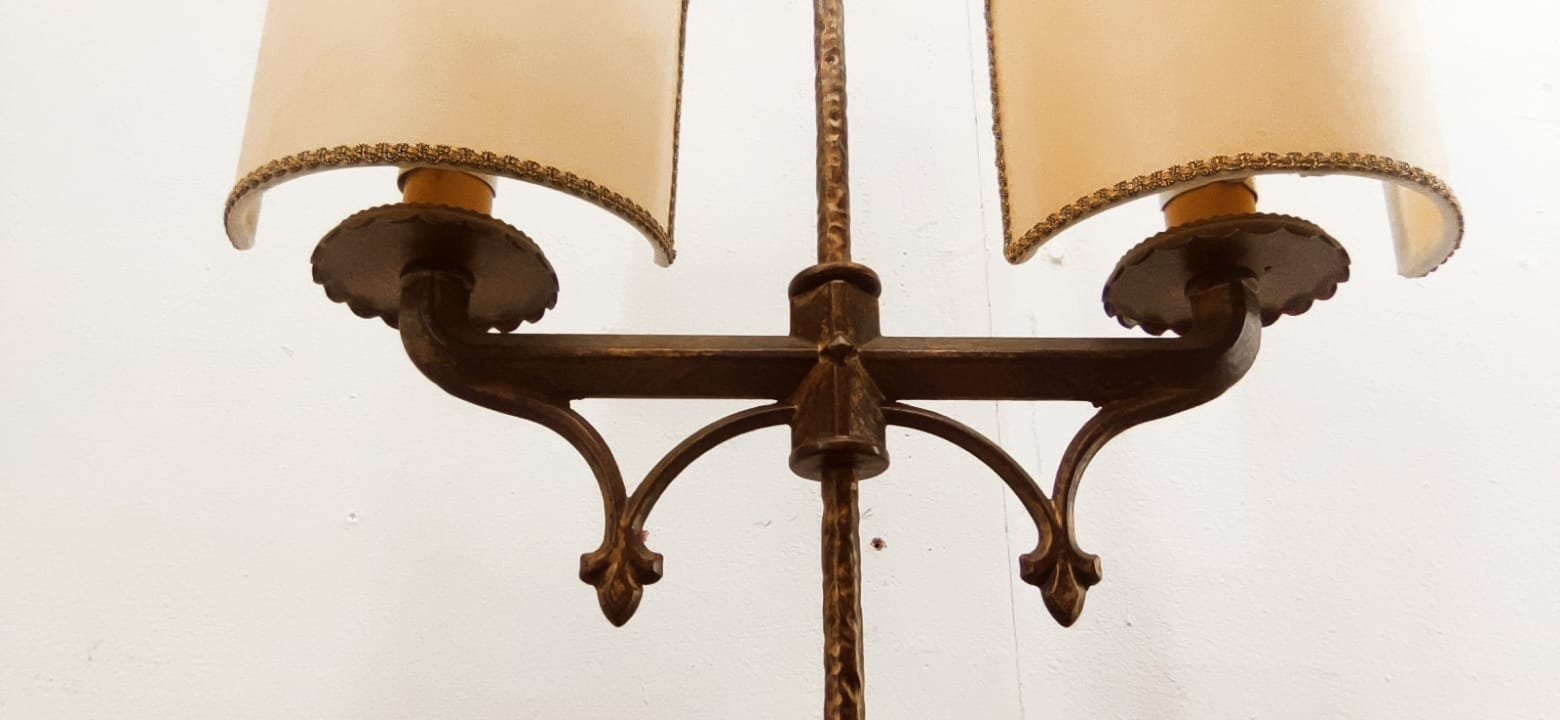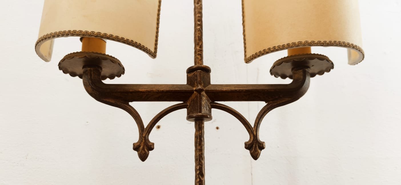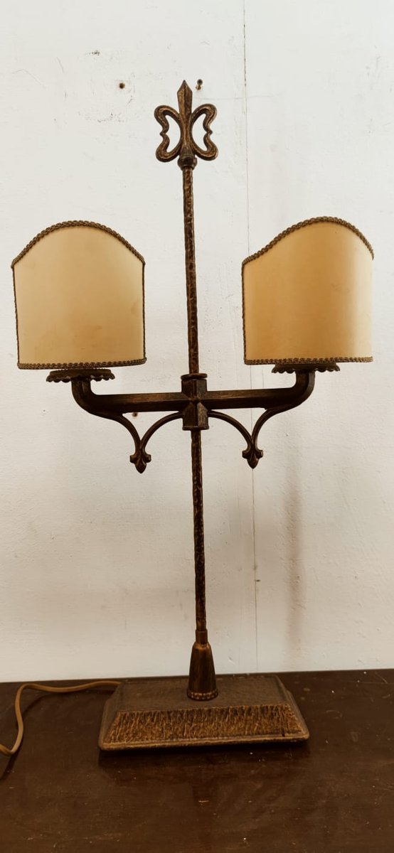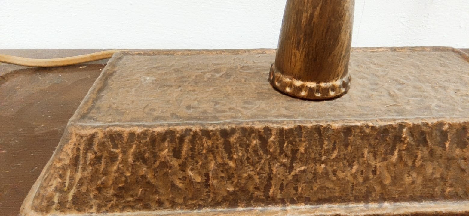 Mittelalterliche Tischlampe aus gehämmertem Messing