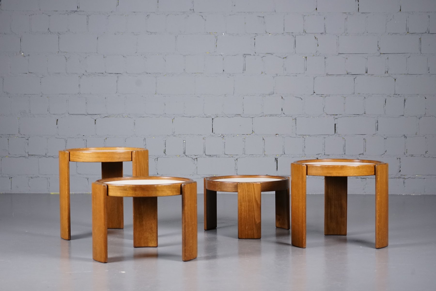Immerse yourself in the purist elegance of the 1960s with this coveted "780" nesting table set, designed in 1966 by renowned designer Gianfranco Frattini for Cassina, one of Italy's leading design houses. A masterpiece that combines aesthetics, function, and perfect craftsmanship.