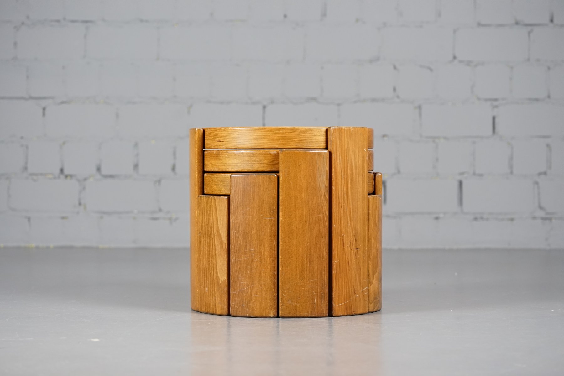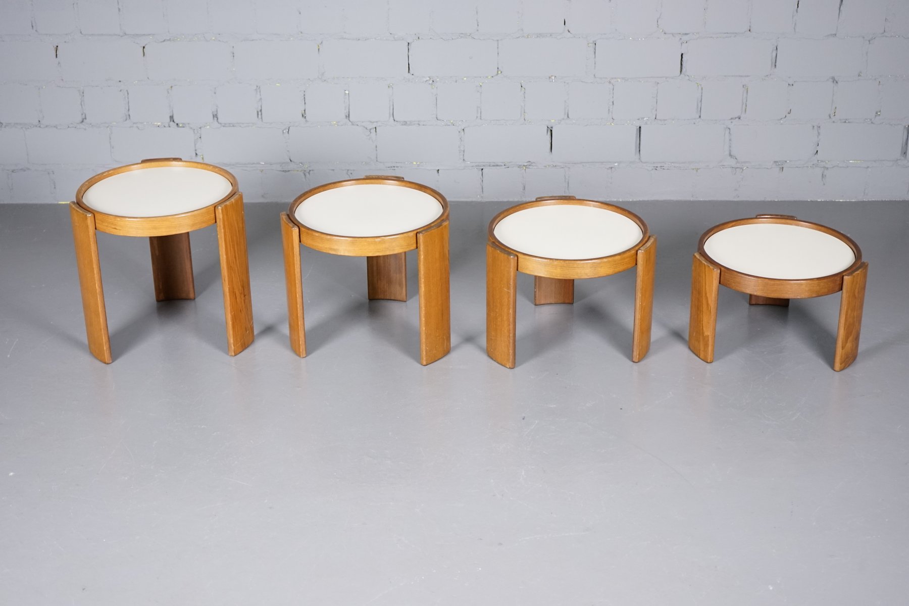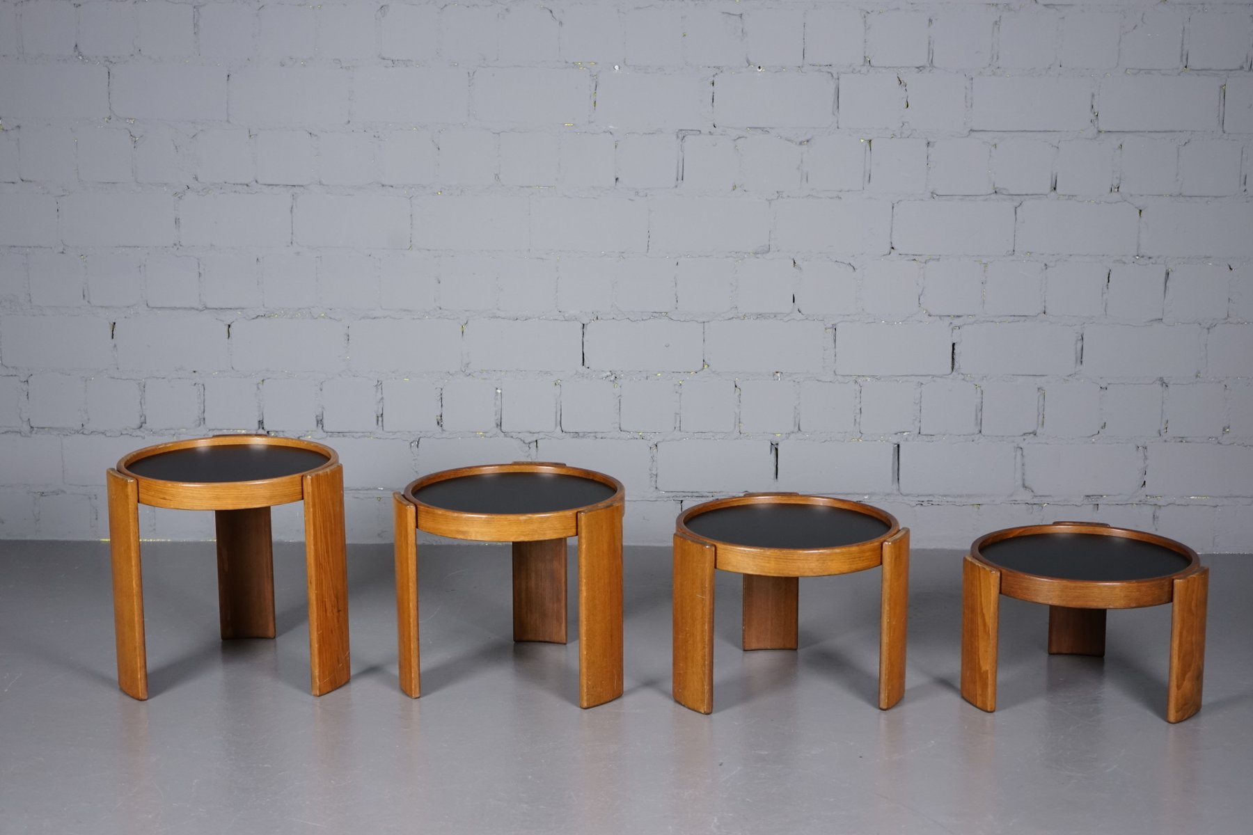 Tauchen Sie ein in die puristische Eleganz der 1960er Jahre mit diesem begehrten Satztisch-Set „780“, entworfen 1966 vom renommierten Designer Gianfranco Frattini für Cassina, einem der führenden italienischen Designhäuser. Ein Meisterstück, das Ästhetik, Funktion und handwerkliche Perfektion vereint.