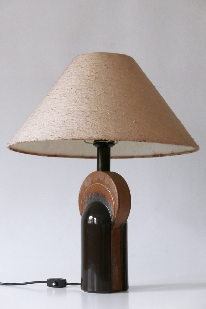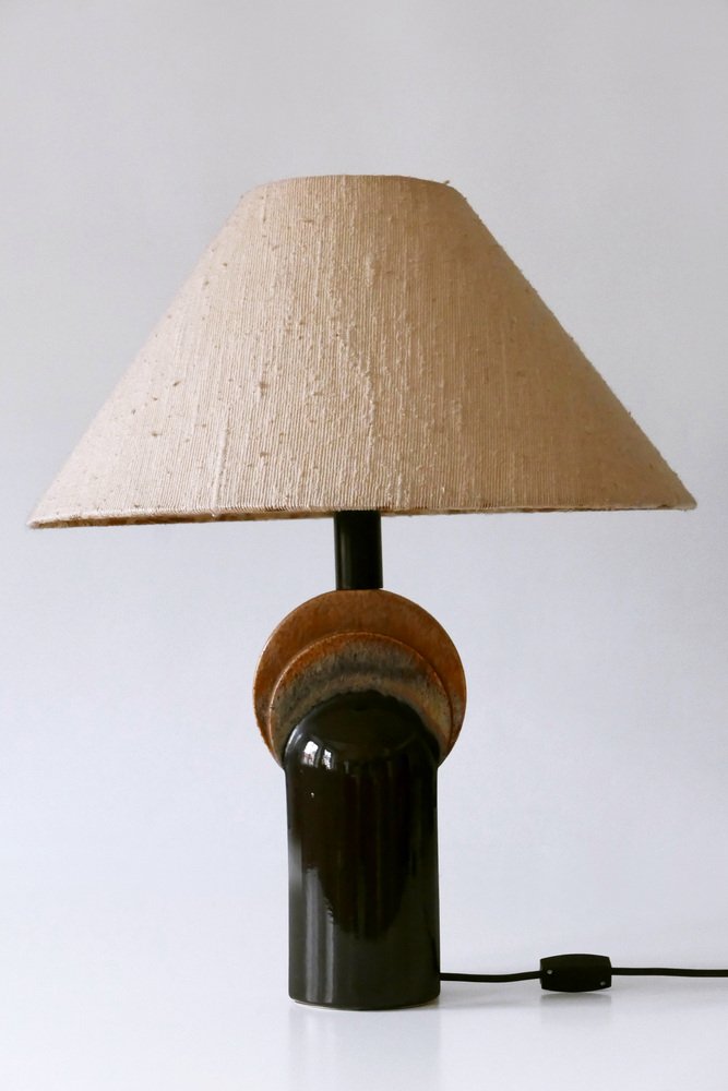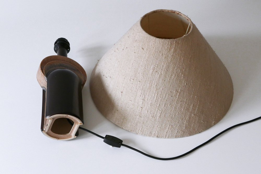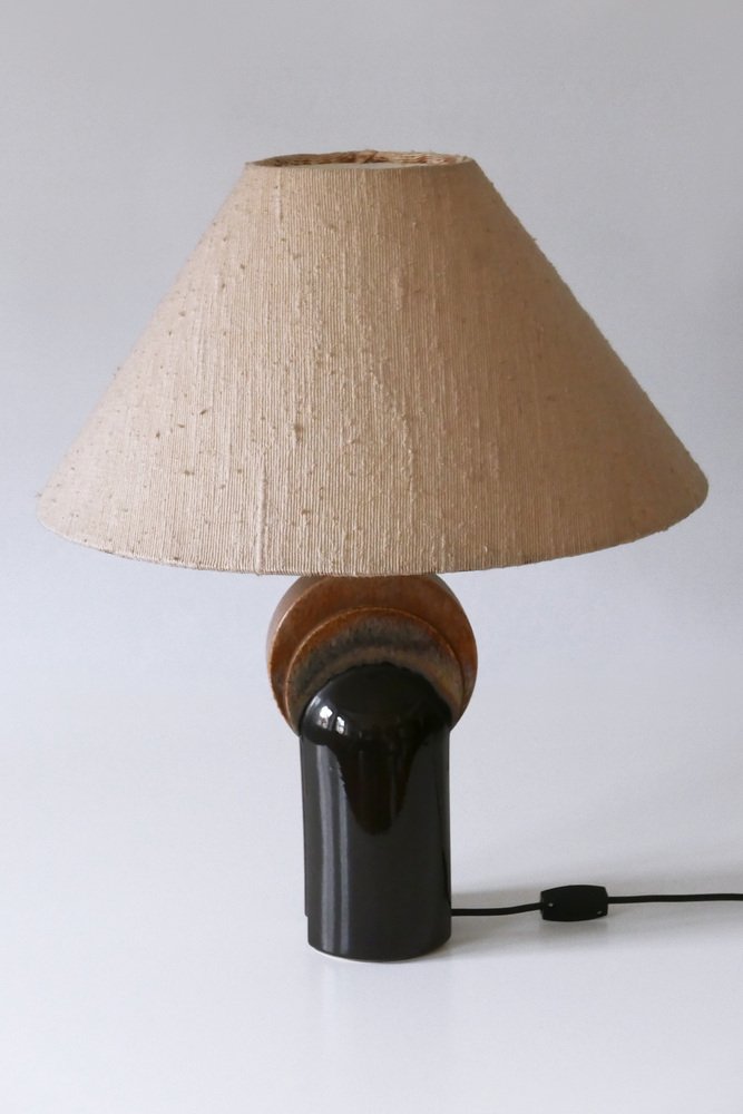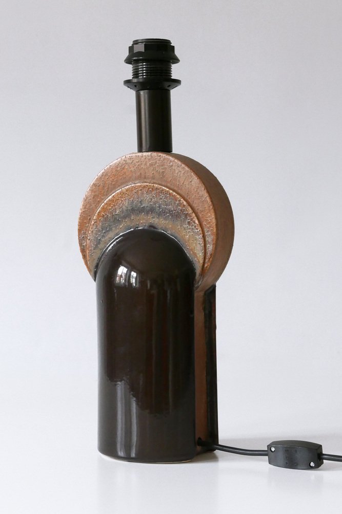 Extremely rare and elegant Mid-Century Modern ceramic table lamp. Designed & manufactured by Leola Design, Germany, 1960s. Makers label on the base.