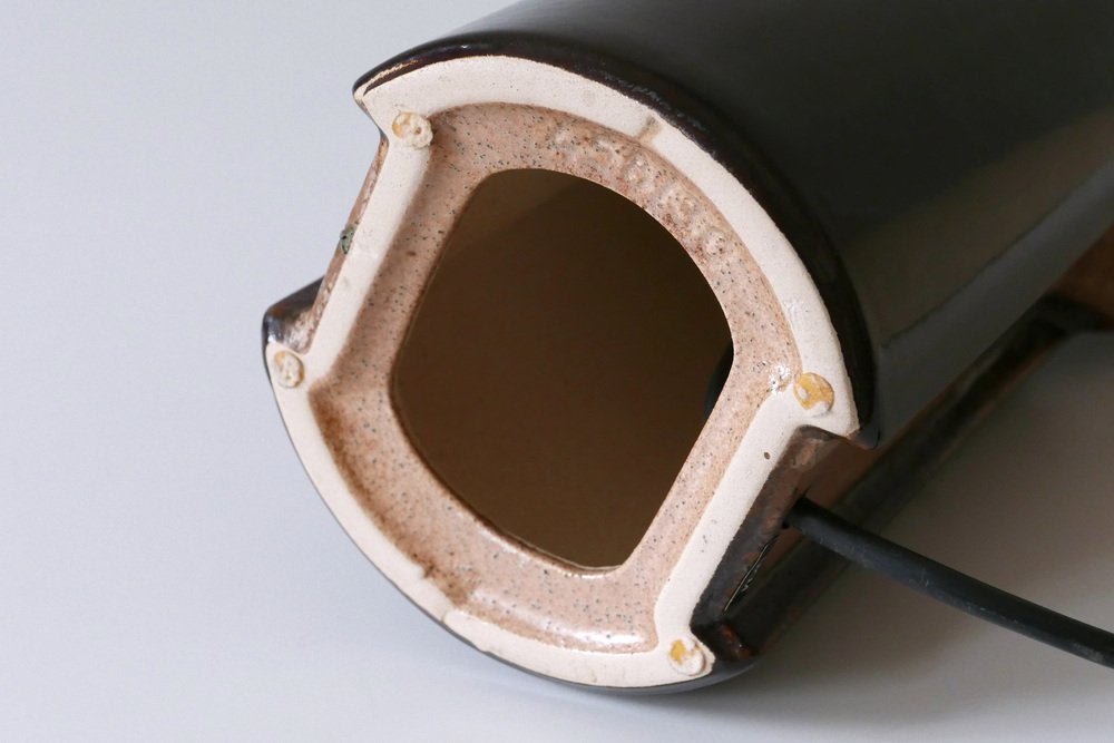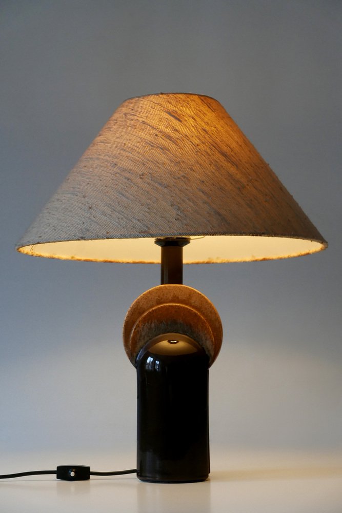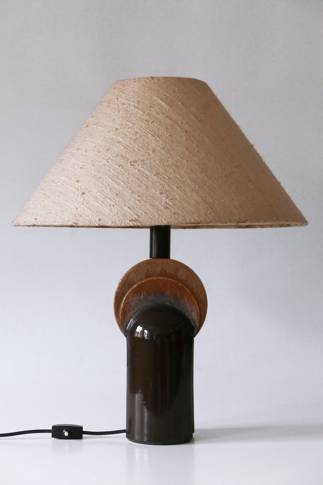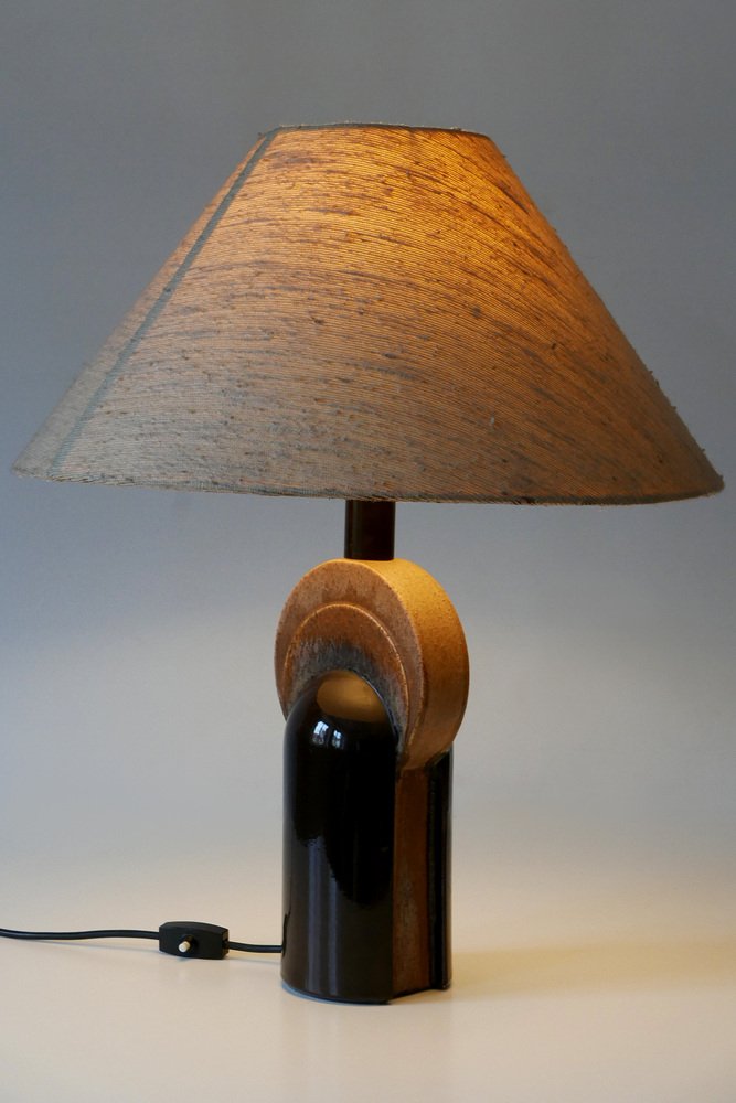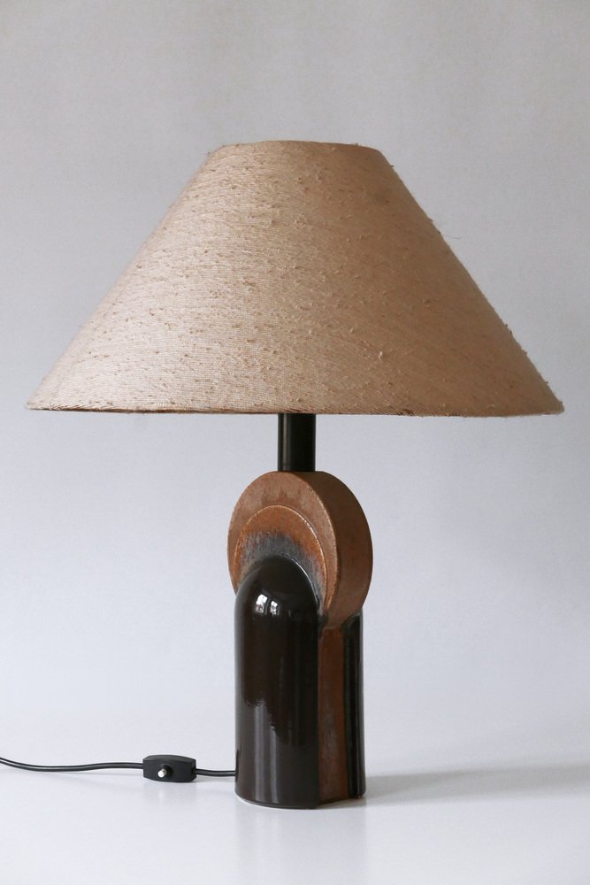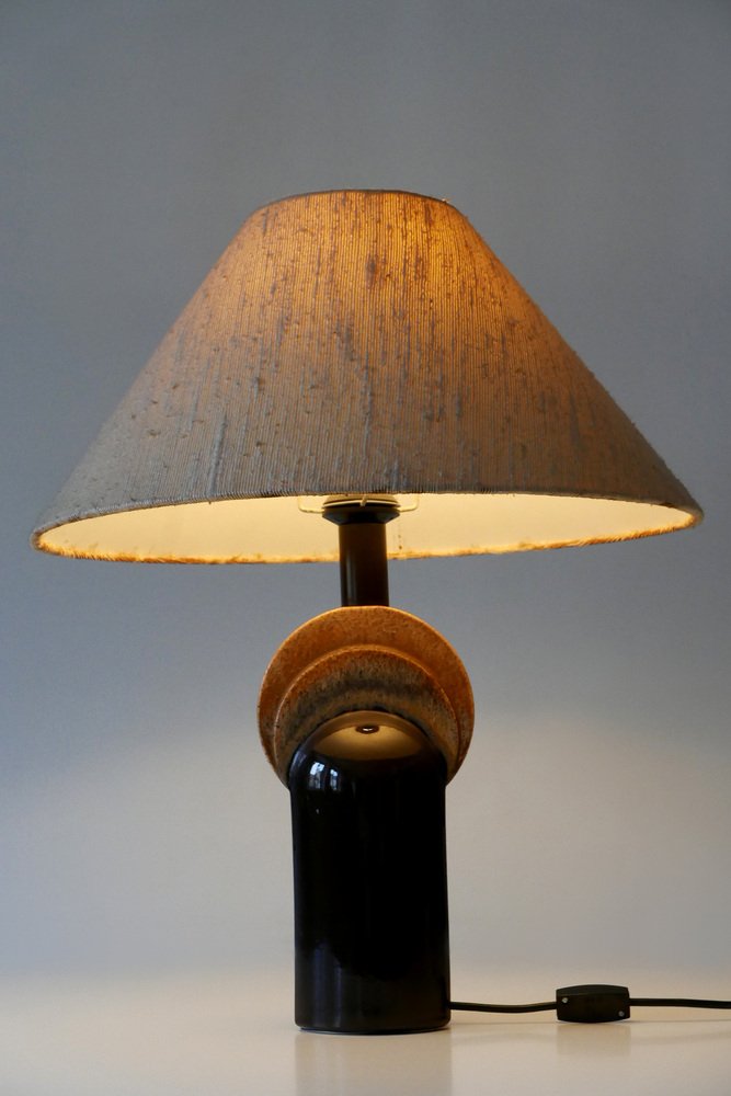 Extremely rare and elegant Mid-Century Modern ceramic table lamp. Designed & manufactured by Leola Design, Germany, 1960s. Makers label on the base.