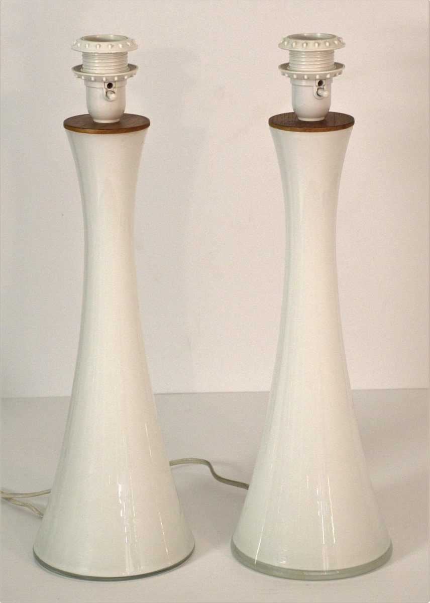 Moderne schwedische Tischlampen aus Glas & Teak von Bernt Nordstedt für Bergboms, 2er Set