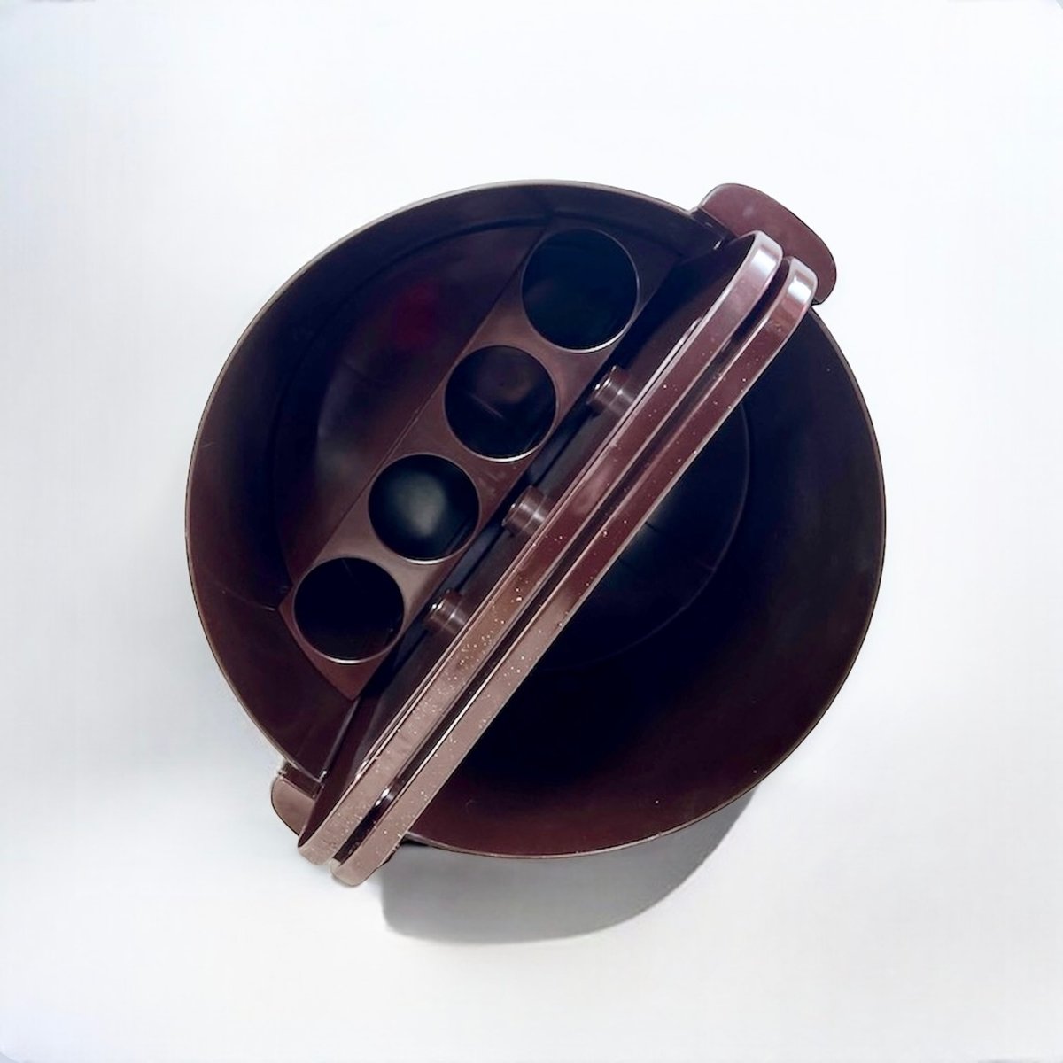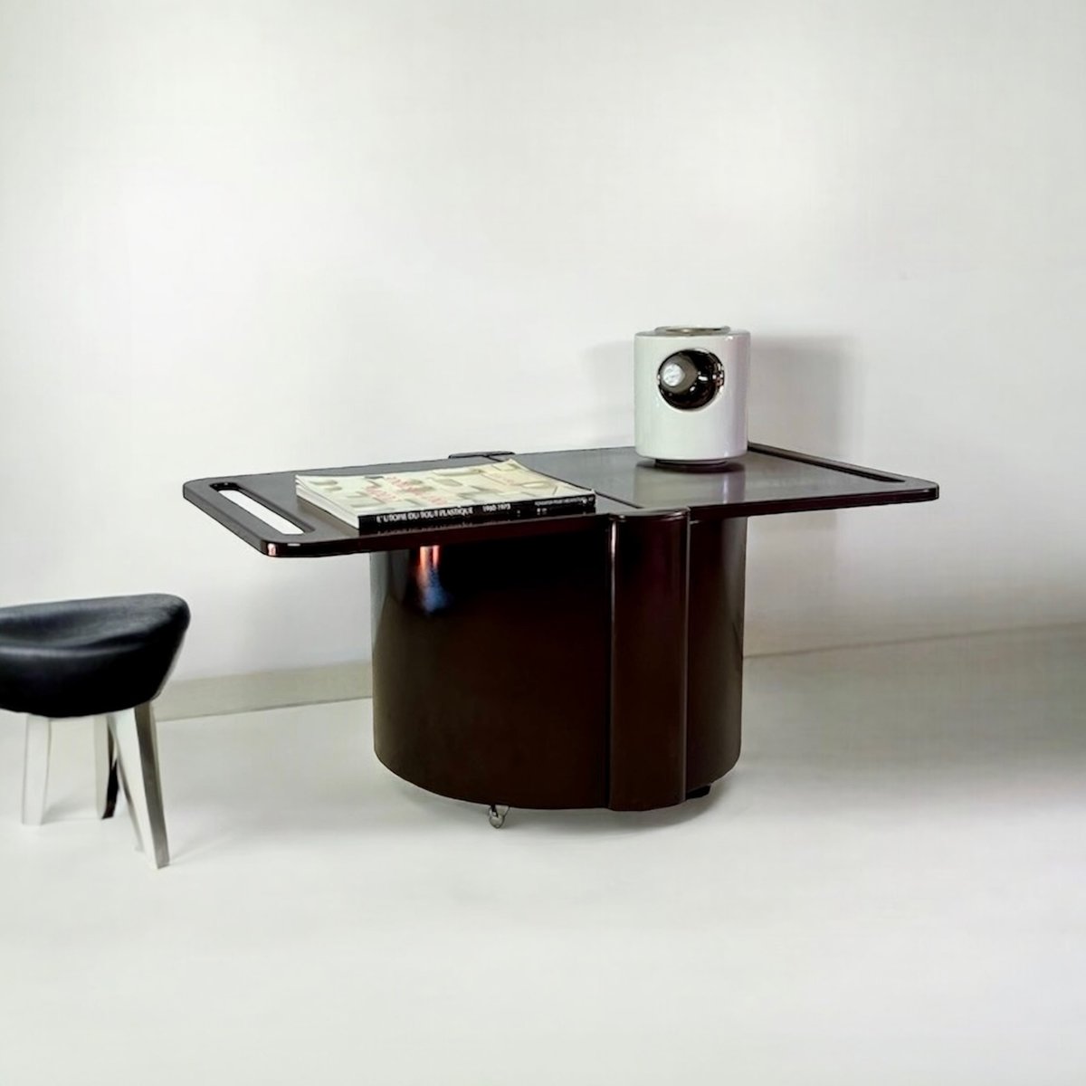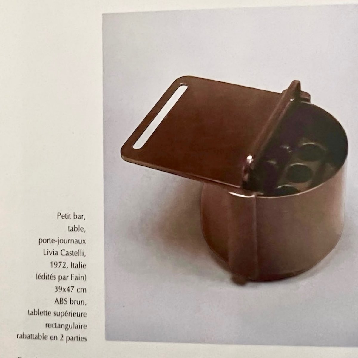 Distinctive and stylish space age design serving trolley design by Livia Castelli for Fain Italy in the early 70s. This is the iconic brown version, quoted also in the book “L’Utopie du tout plastique“, page 64.