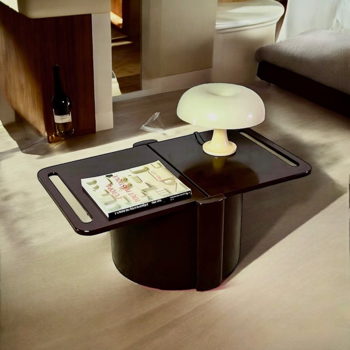 Two shelves can be opened individually to form a coffee table up to 86 cm wide.