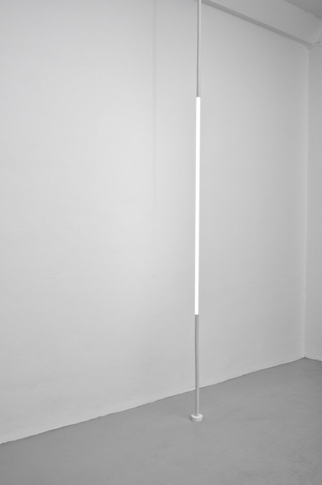 Mono lights by OS and OOS Price for two fixtures Made on bespoke. Edition: On Bespoke Dimensions: 120 x 45 x 174 cm Materials: Silicone foam tubing, led-tl’s, aluminium Copper edition available Colours: light grey ral 7047, dark grey ral 7012, beige red ral 3012 other ral colors available Colour temperature of lighting: 830 lumens, 3000 K, warm white 840 lumens, 4000 K, neutral white 865 lumens, 6500 K, daylight white Voltage: 230 V, 110 V possible with transformer Installations are made on bespoke. We would need to receive the dimensions of the space, possibly supplemented by photographs. Based on these measurements and the wishes of the client we make a visualization. This composition is discussed and may be adjusted. After approval, the installation is made in the workshop of OS ? OOS. with ever increasing demands for products to become lighter, faster, smaller, more intuitive and interface with us as human beings, materials are having to become more multifunctional, being able to perform more than one task. Mono-lights by OS ? OOS takes on this task and presents a methodology where one material combines multi-functionality with a clear monolithic aesthetic. The Mono-lights are an extension of the unibody fluorescent tubes, updated with the latest technology in the field of LED lighting. The structural elements have become an extension of the tubes themselves, with the added function of being completely flexible; yielding themselves to the possibilities of being bent and contorted to fix into any situation. from the beginning OS ? OOS have been facinated with the play of light and the manipulation there of. These works have brought this fascination to a new scale, creating objects whose intention is to combine elements that interact with their immediate surroundings.