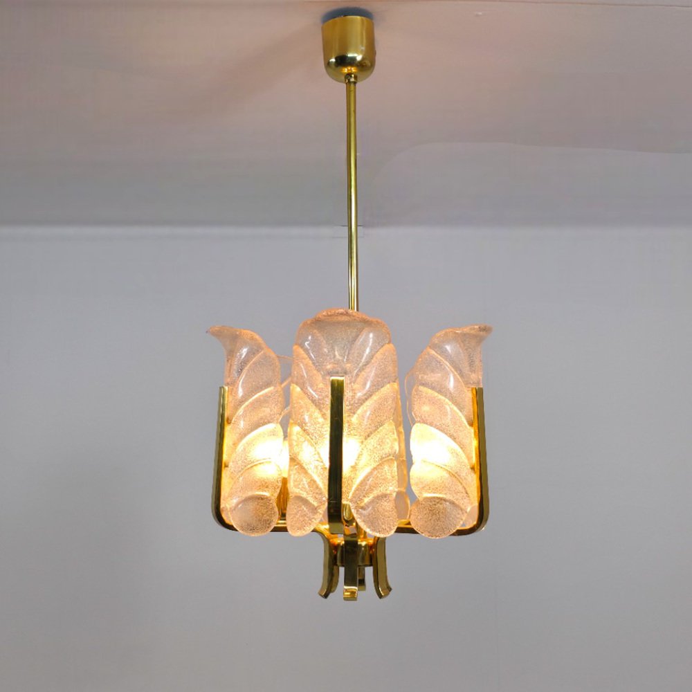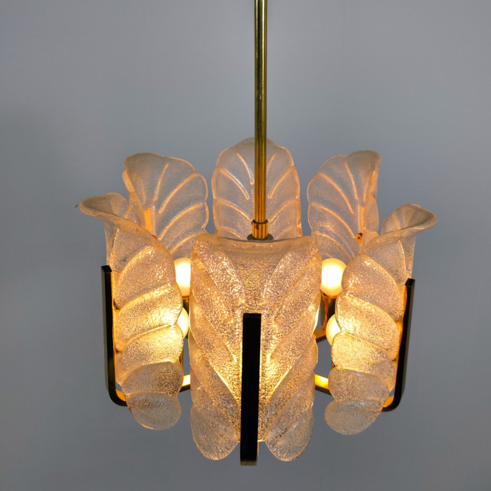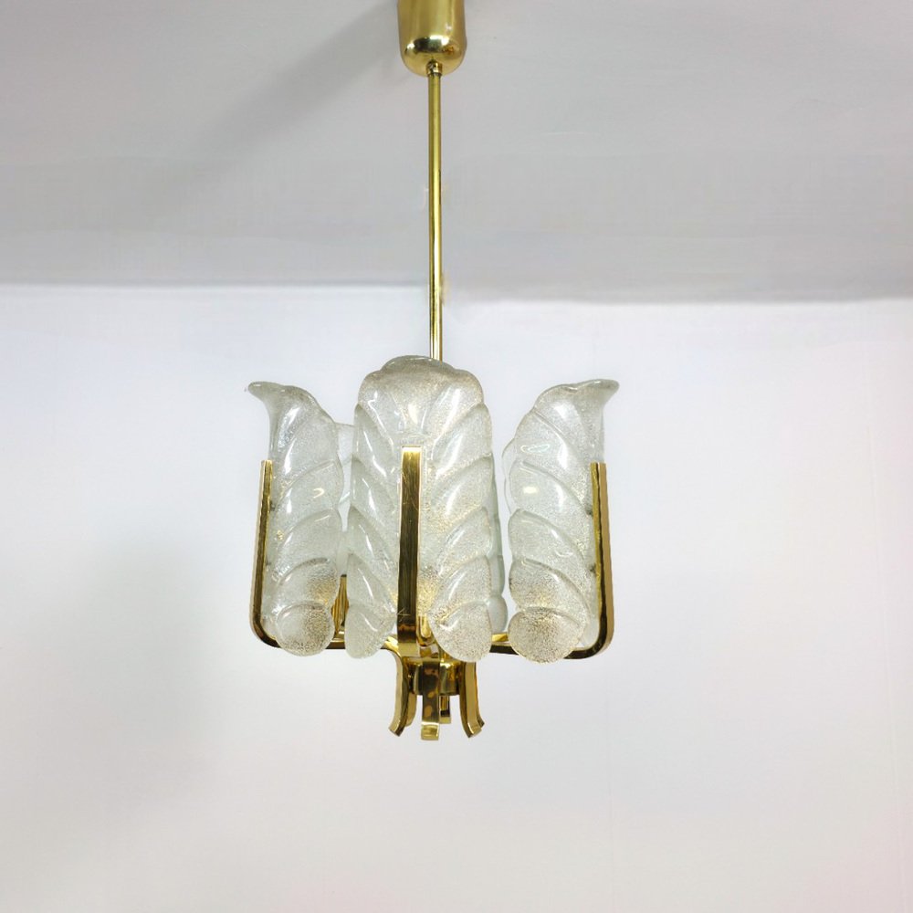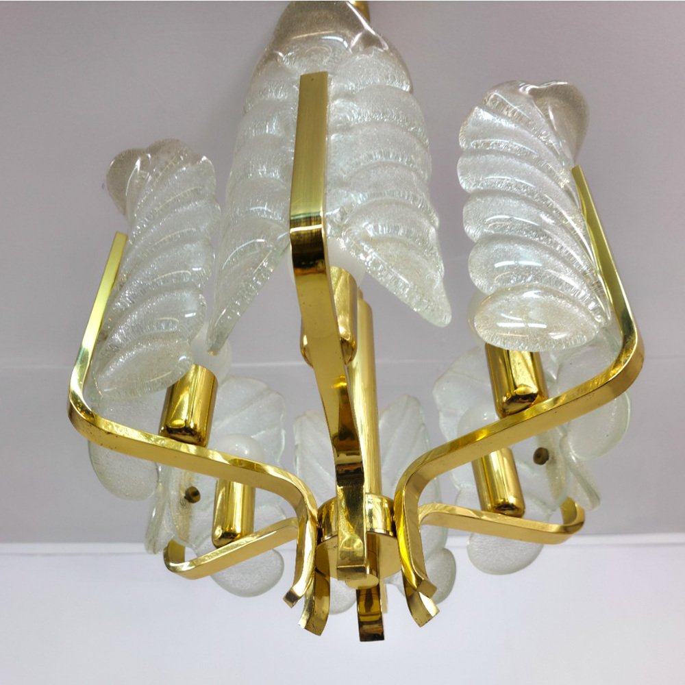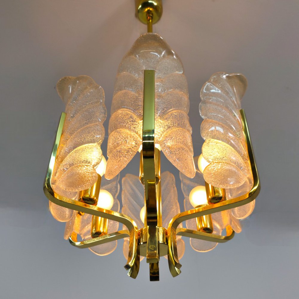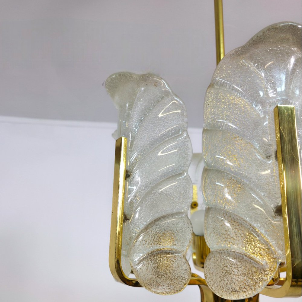 Murano Glas Kronleuchter mit 6 Flügeln und Messingrahmen von Carl Fagerlund für JBS