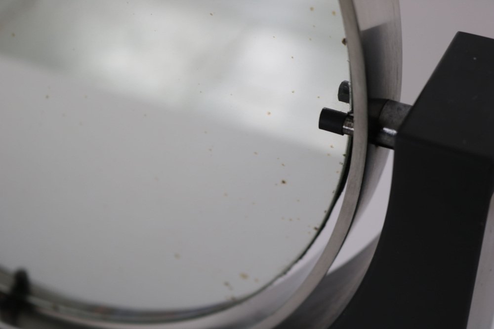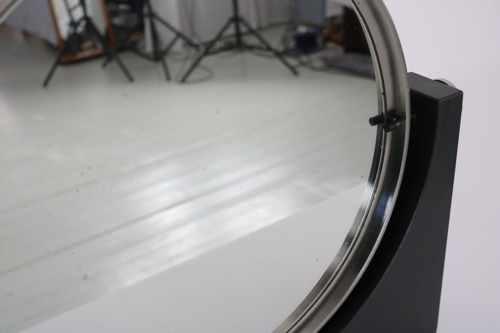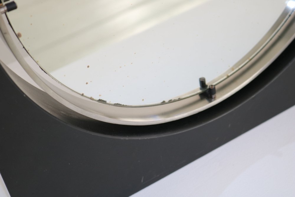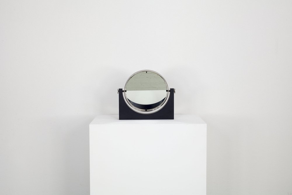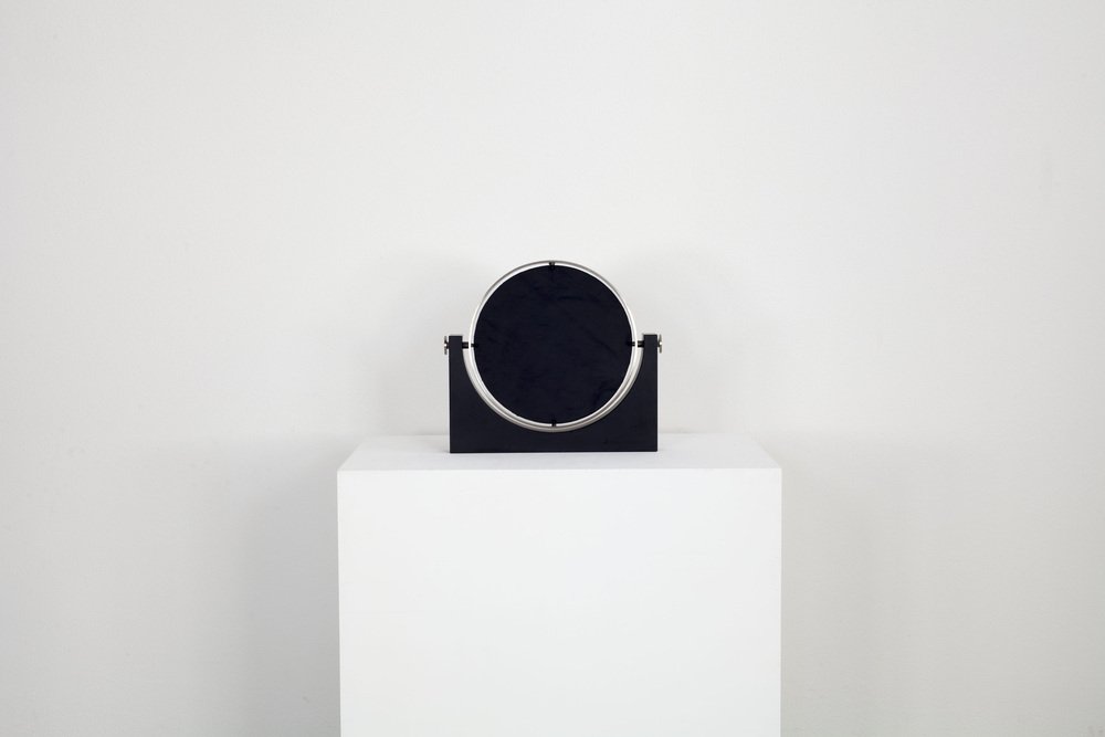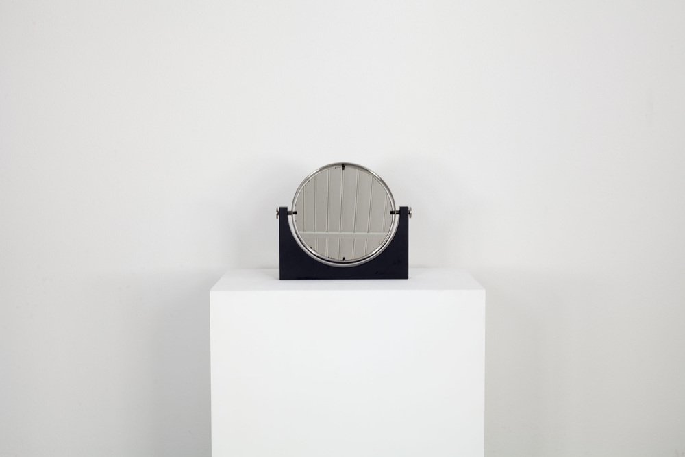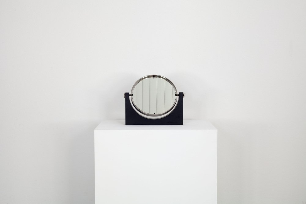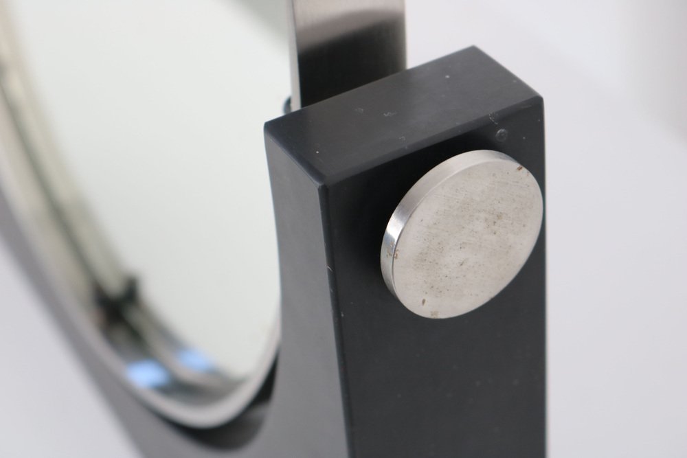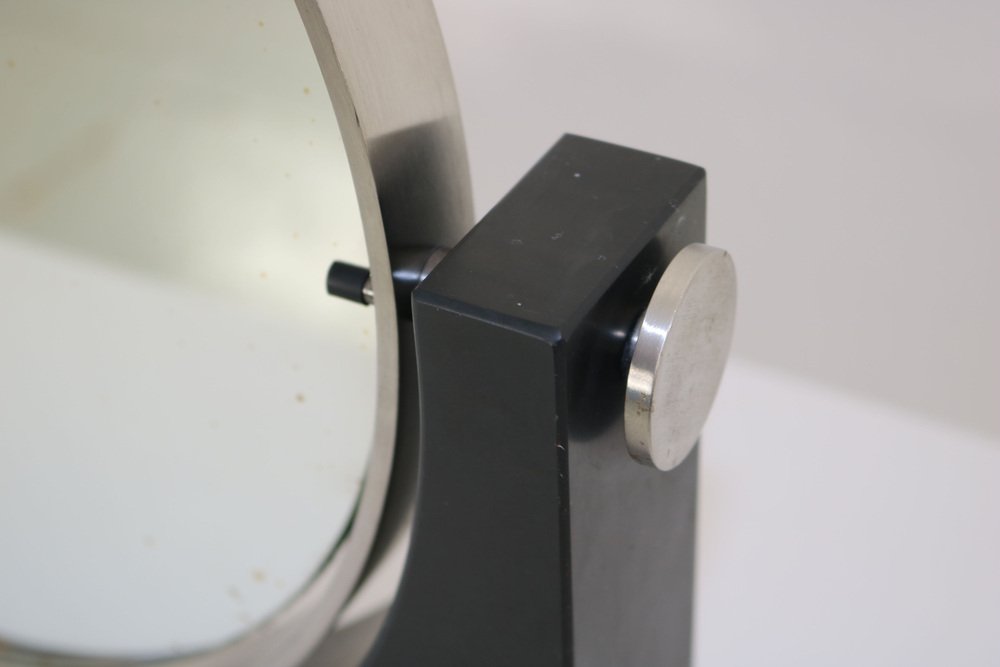 Neigbarer Tischspiegel mit Gestell aus schwarzem Marmor und Rand aus gebürstetem Chrom, Italien, 1960er
