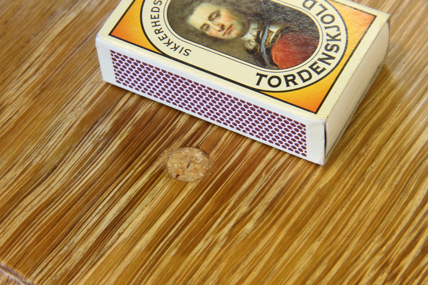 Auf den Zustandsfotos sind sichtbare Spuren auf der Platte zu sehen, wo einst eine frühere Ergänzung saß