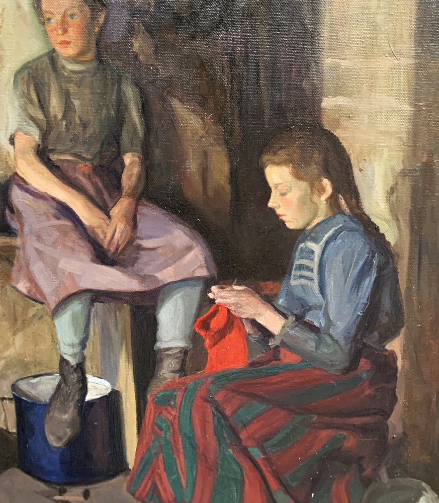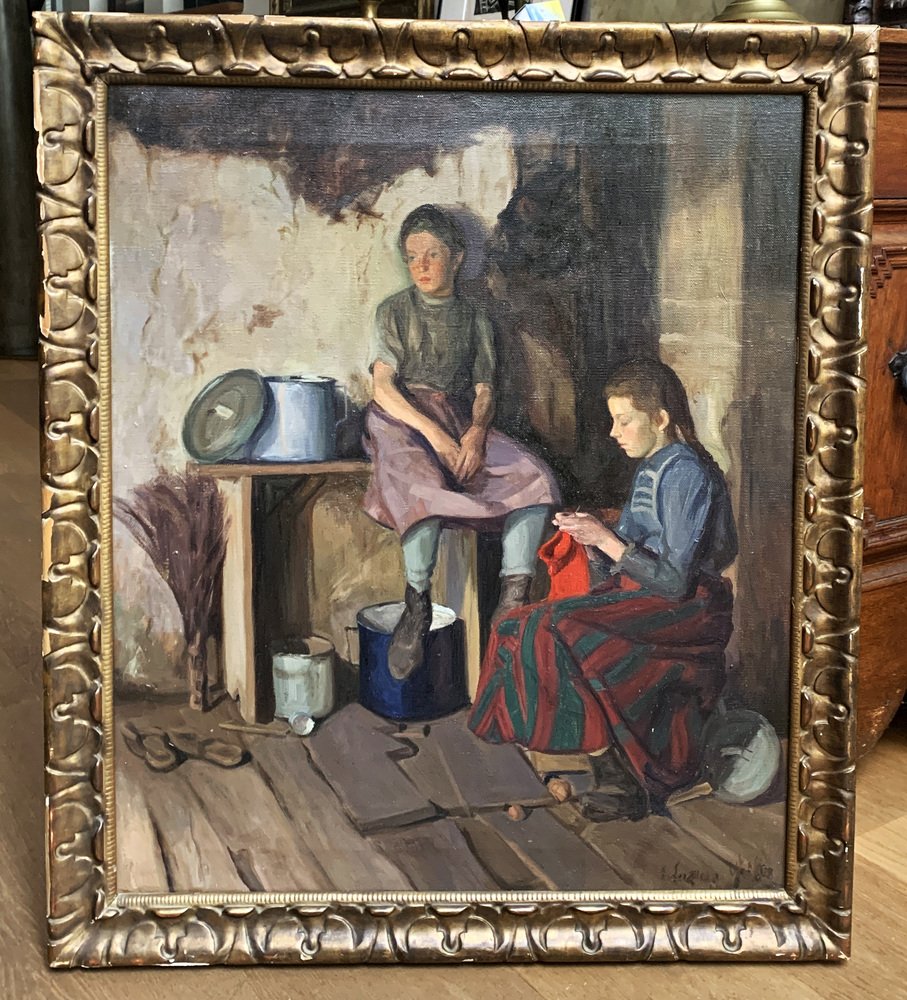 Österreichisches Vintage Kinderbild mit unleserlicher Signatur, Circa 1900