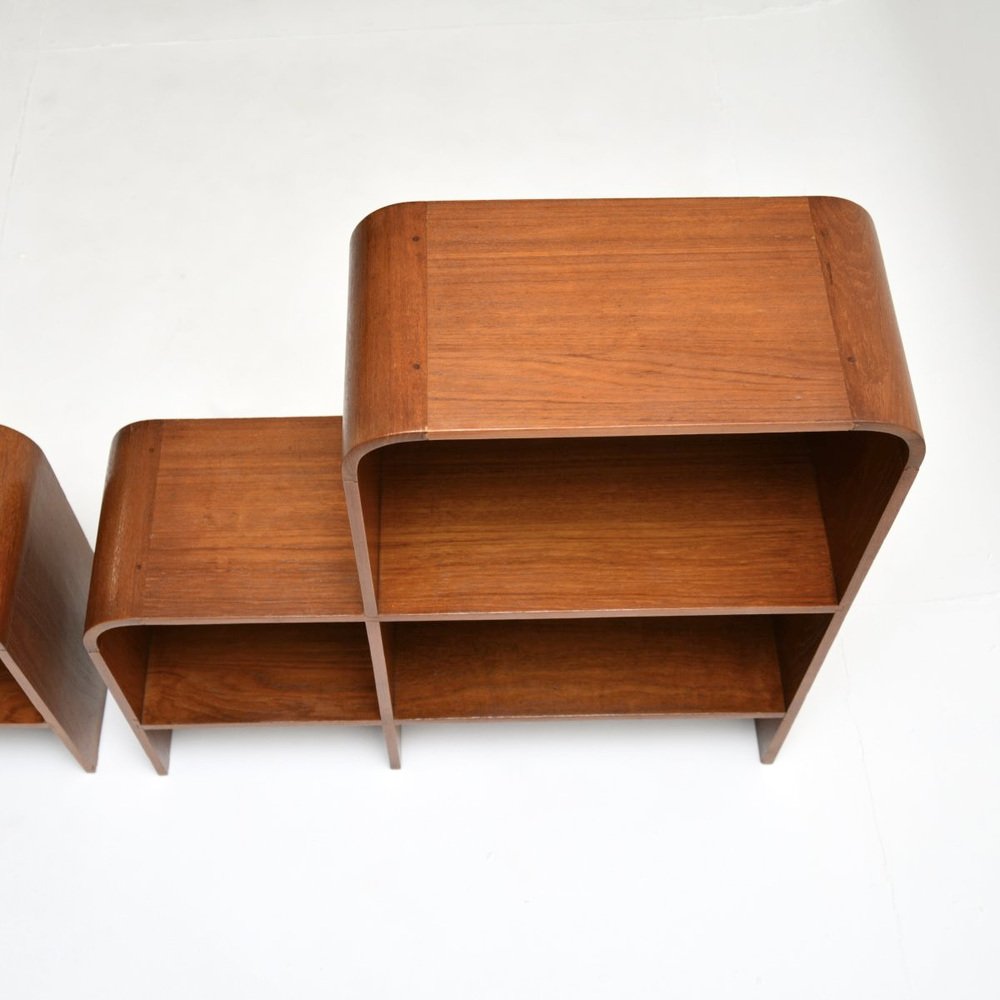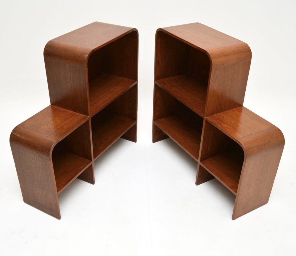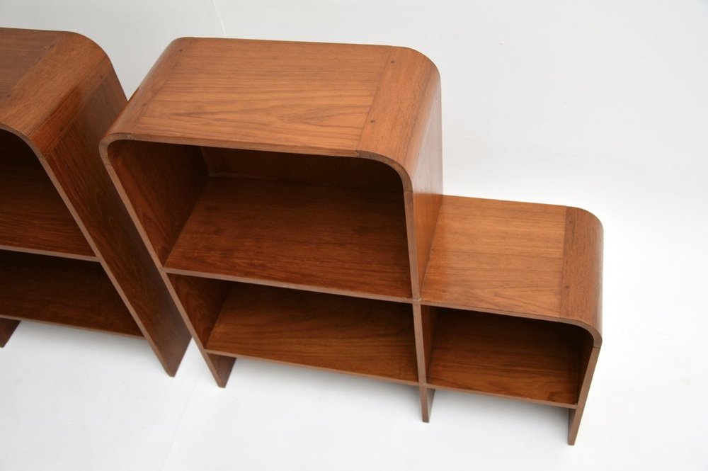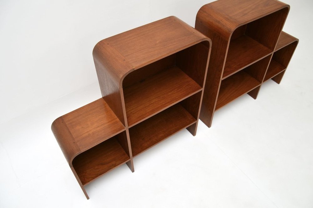 Ein schickes und sehr stilvolles Paar offener Bücherschränke aus Teakholz im Vintage-Stil. Sie wurden in England hergestellt und stammen etwa aus den 1950-60er Jahren.