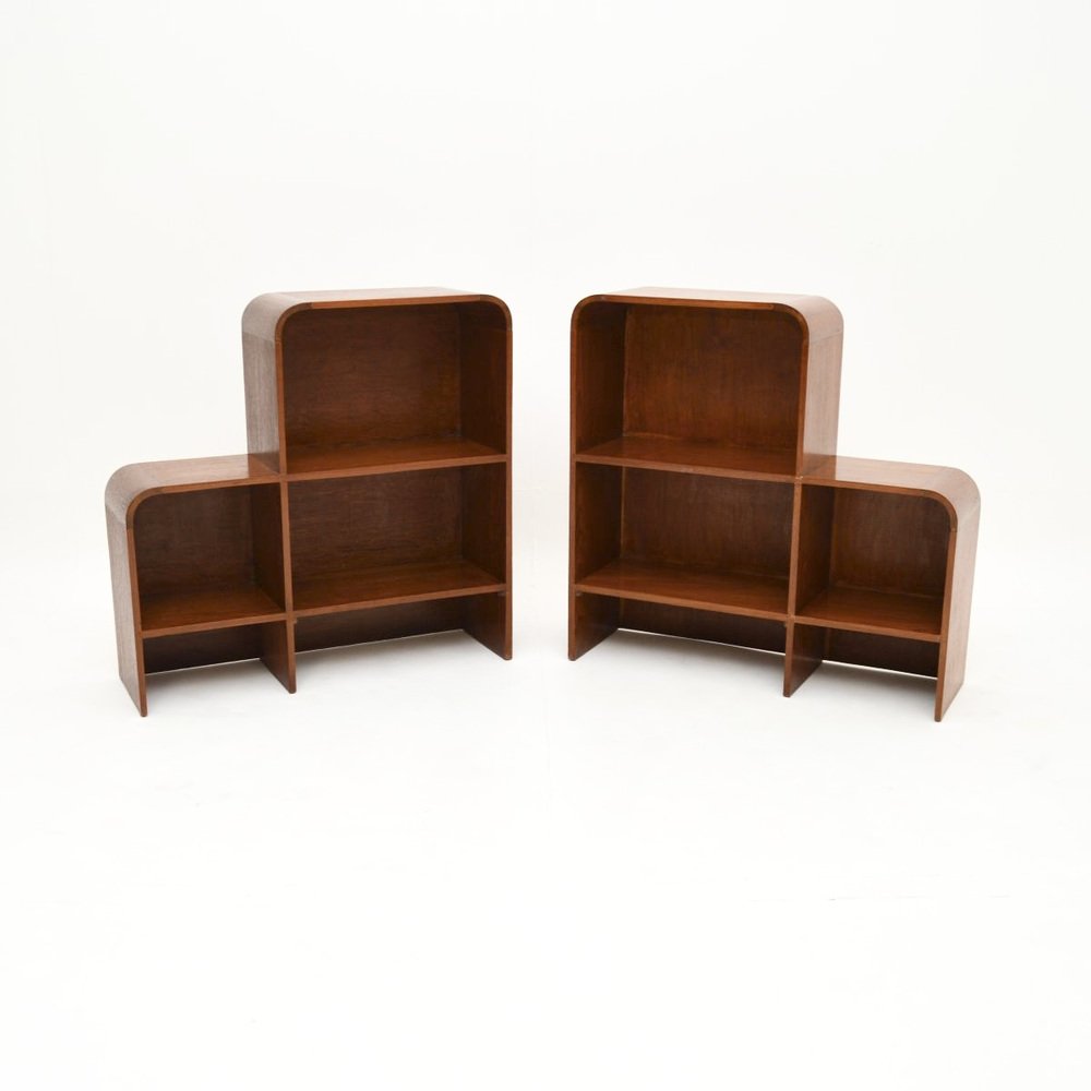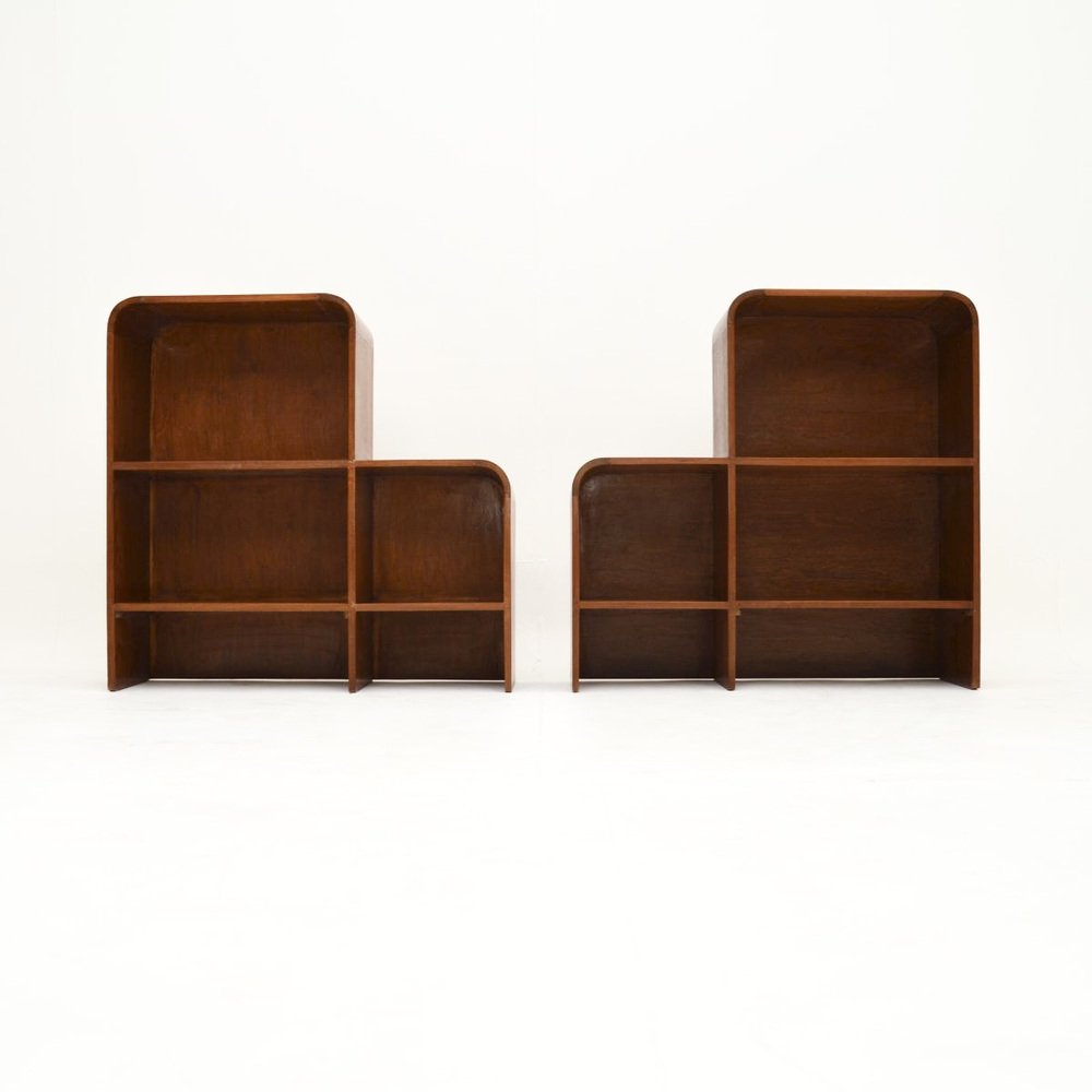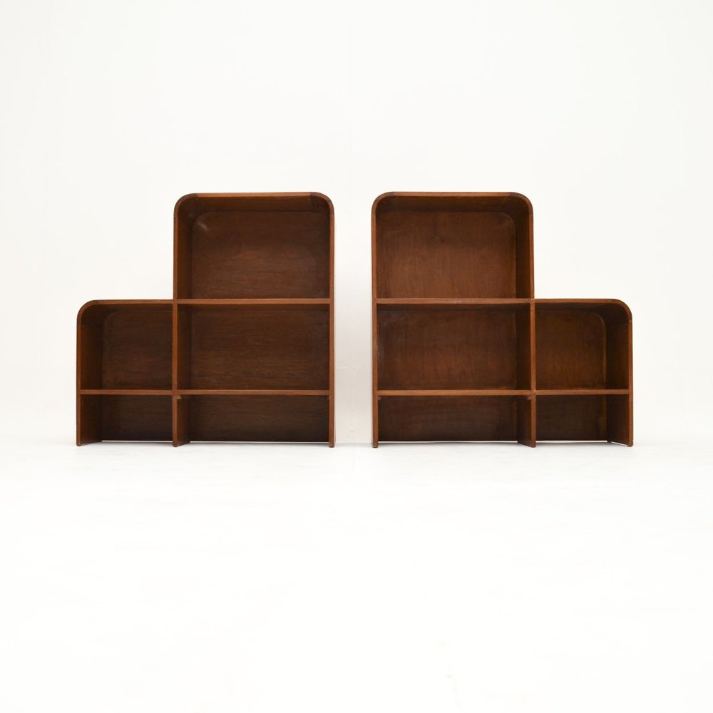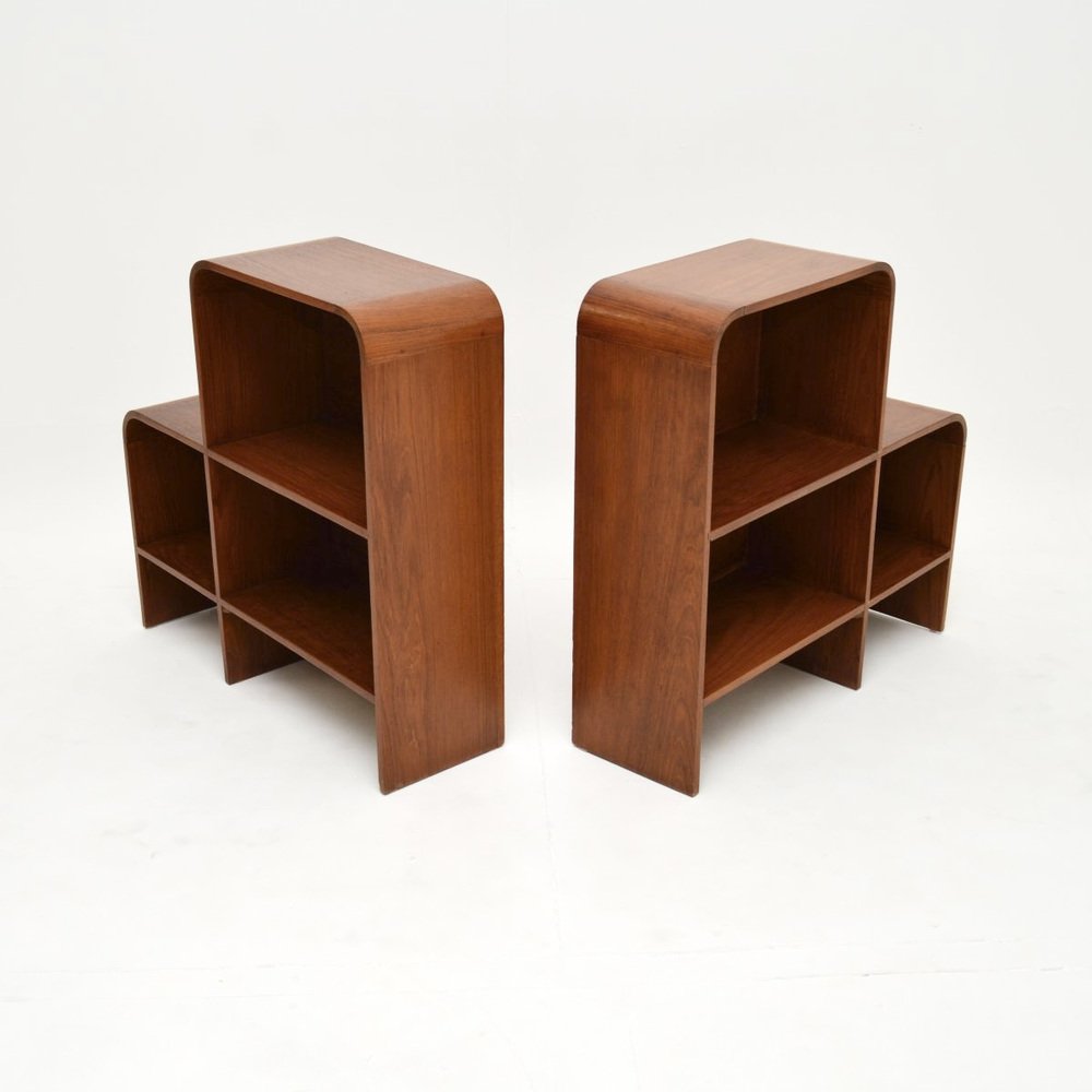 Ein schickes und sehr stilvolles Paar offener Bücherschränke aus Teakholz im Vintage-Stil. Sie wurden in England hergestellt und stammen etwa aus den 1950-60er Jahren.