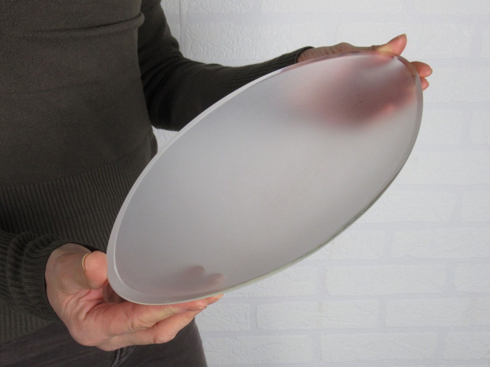 Besondere ovale Form mit satiniertem Inneren und glänzendem Äußeren, ein sehr spektakuläres und elegantes Objekt von hoher Qualität.