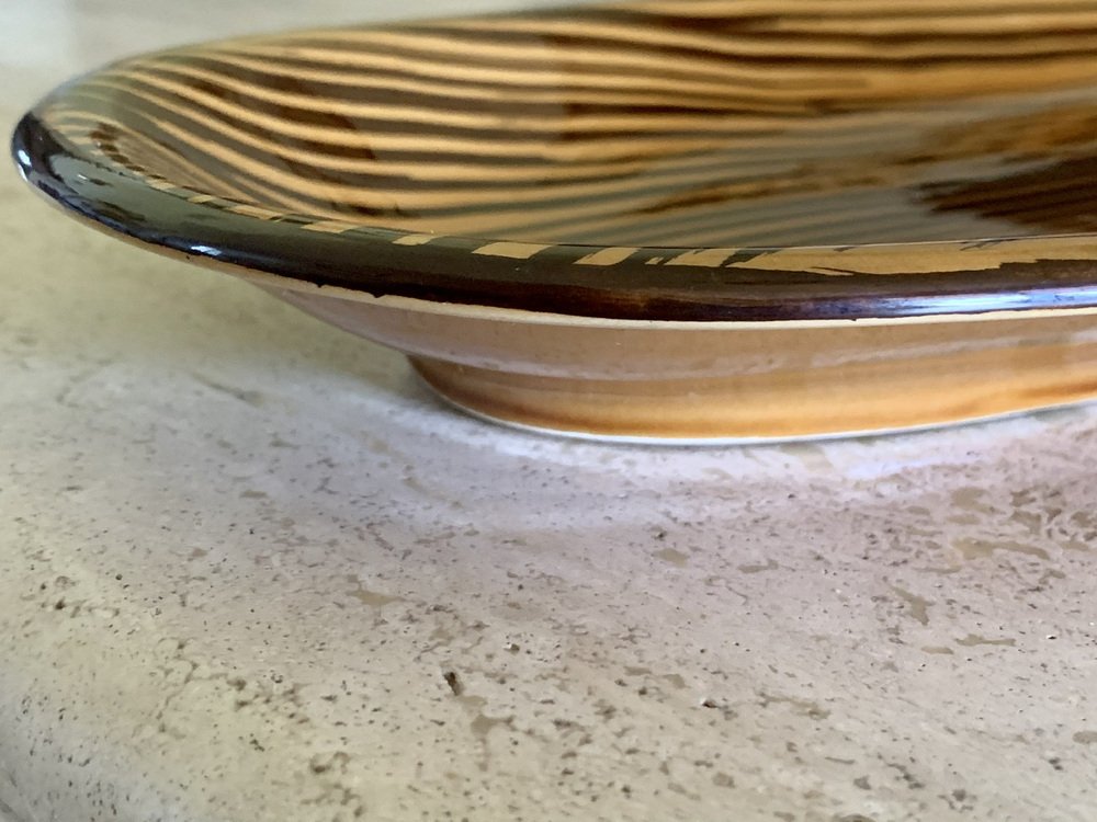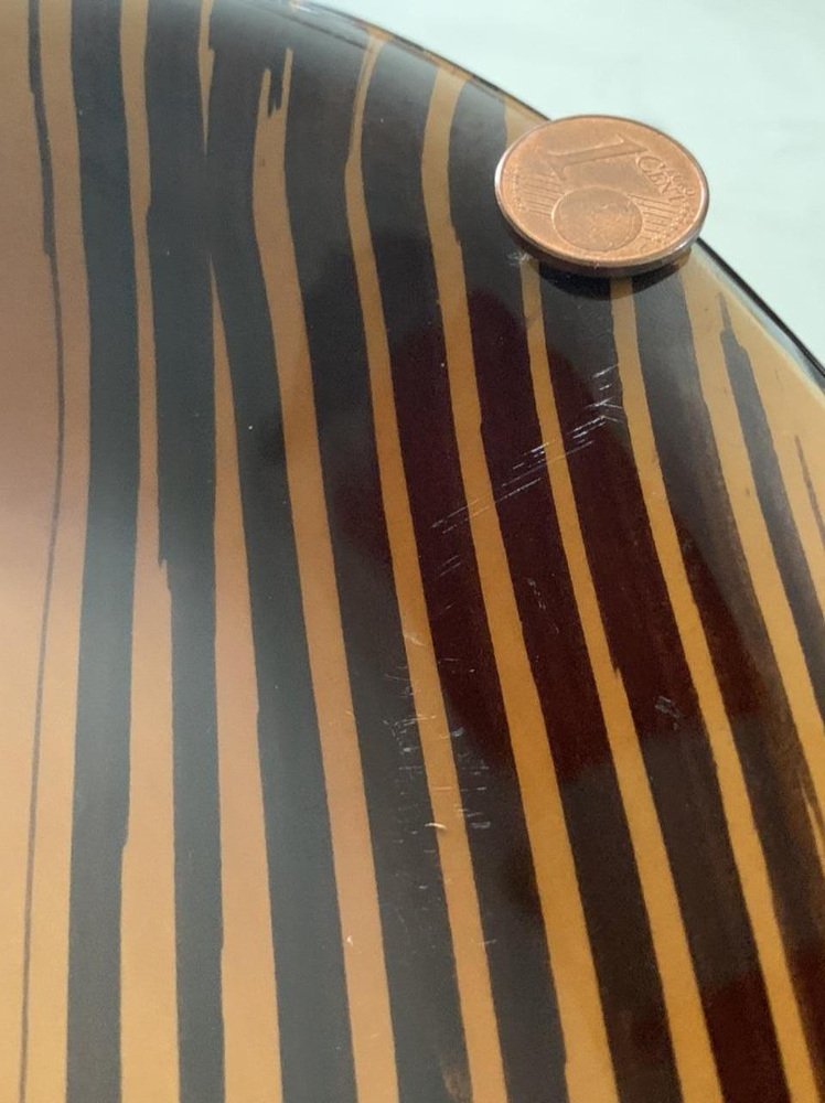 Es gibt winzige, natürliche Blasen in der Glasur (siehe Fotos), aber keine Risse oder Chips