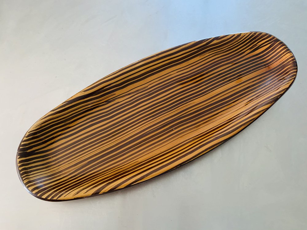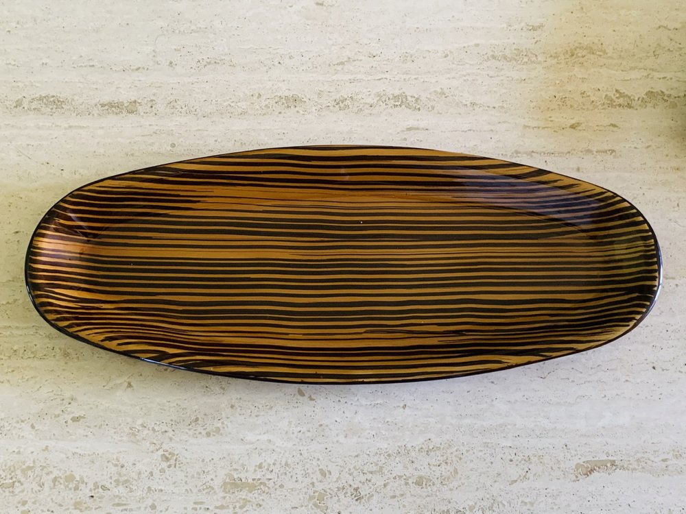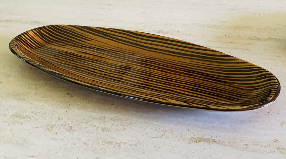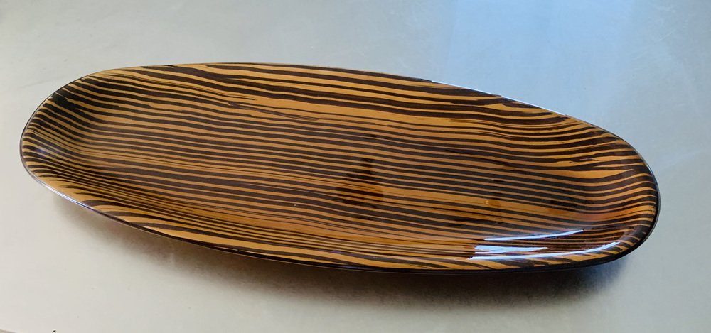 Sehr coole, lange, ovale Servierplatte aus der Mitte des Jahrhunderts von einem bekannten Keramikhersteller aus Sarreguemines, Frankreich.