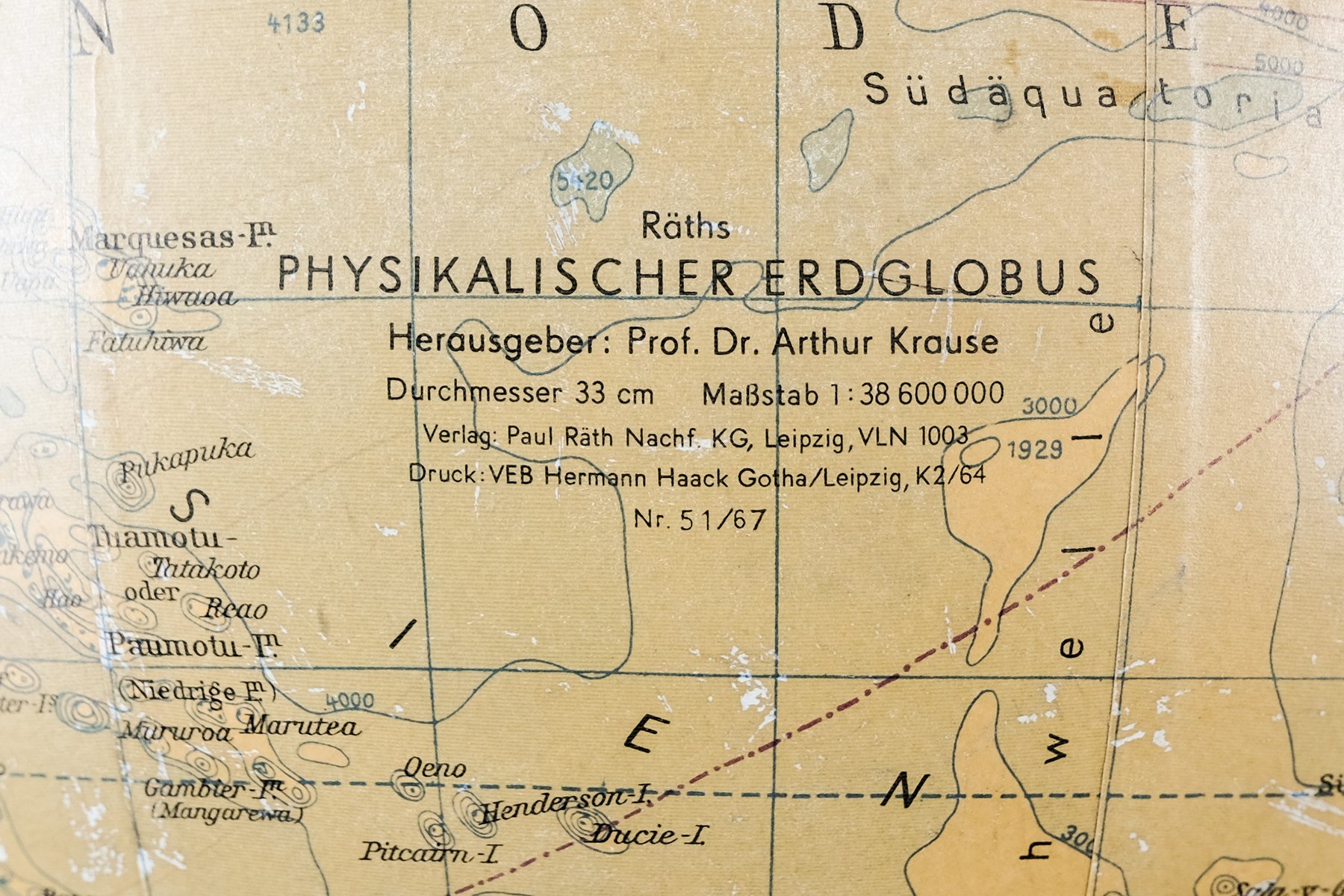 Physikalischer Globus mit Relief von Paul Räth Nachf. KG, Leipzig, 1964