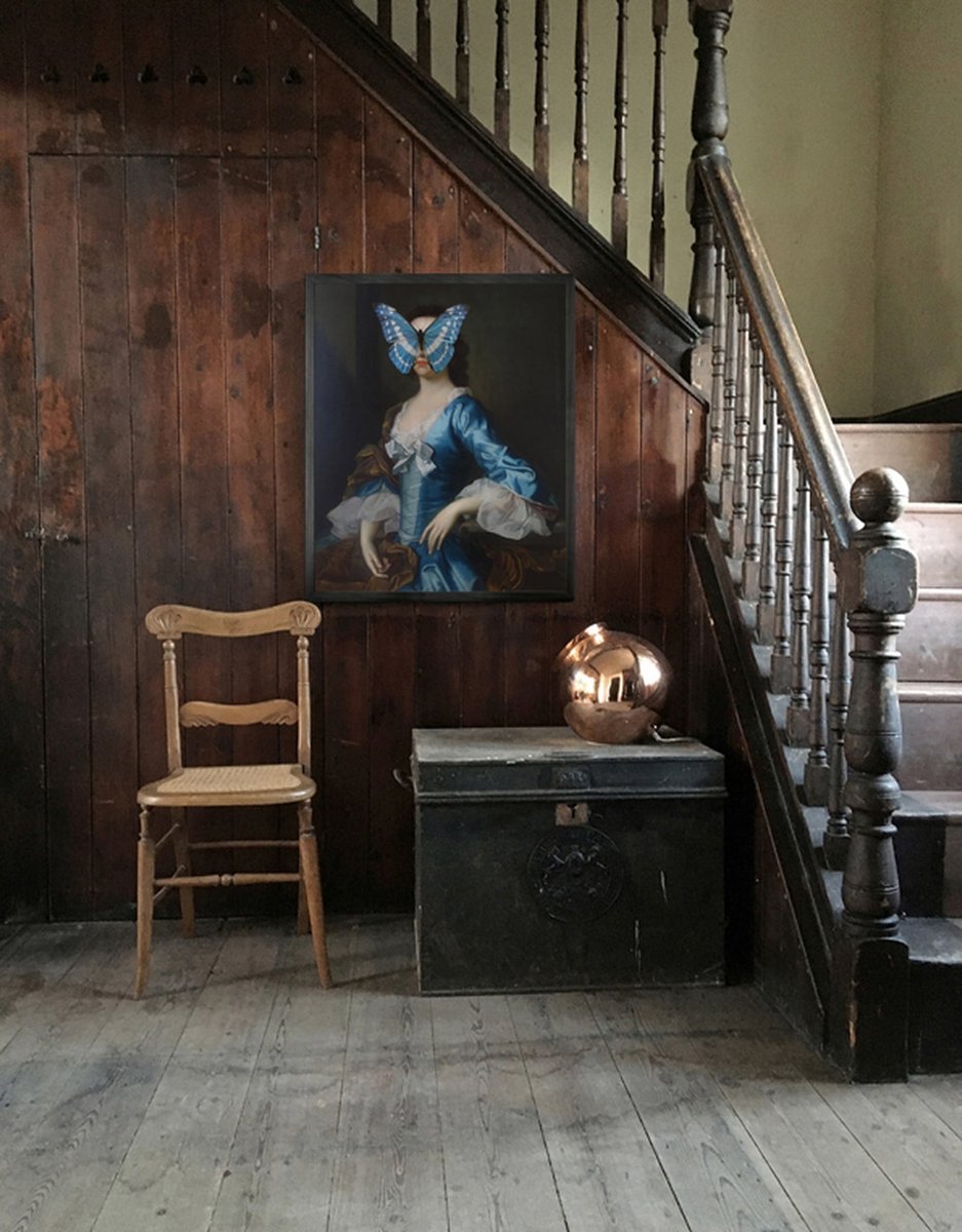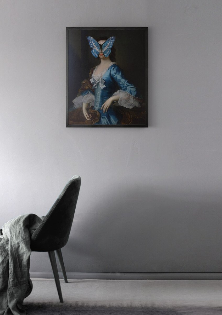 Porträt des Blau-Weißen Schmetterlings auf Lady Large von Mineheart