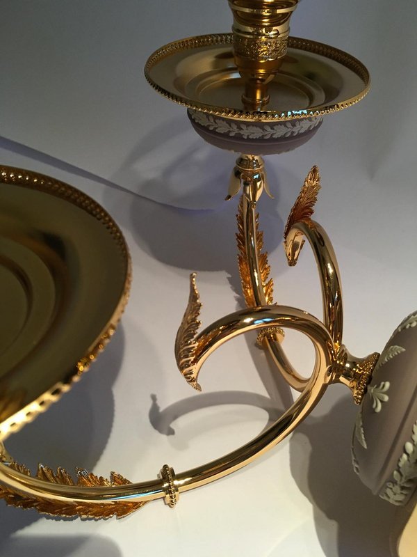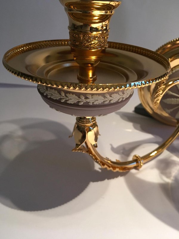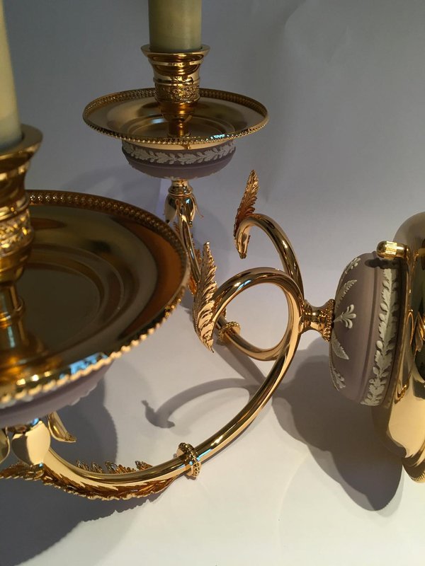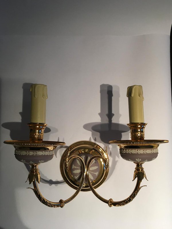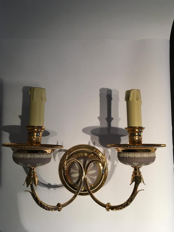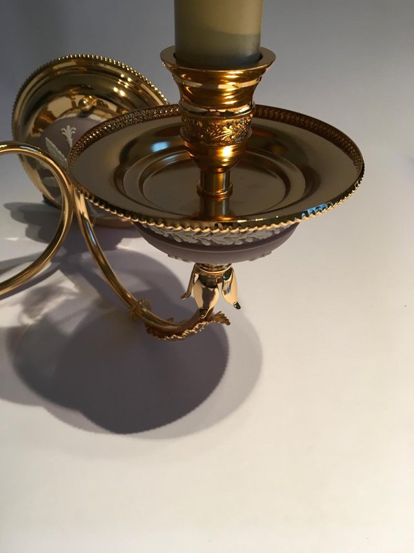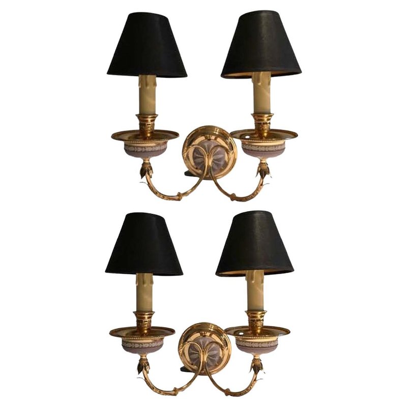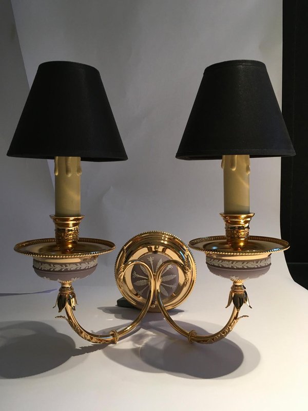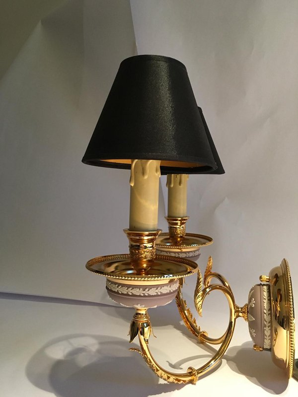 Postmoderne Wandlampen aus Messing & Porzellan, Italien, 1970er, 2er Set