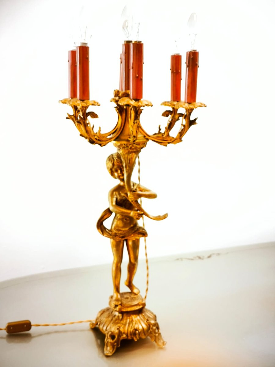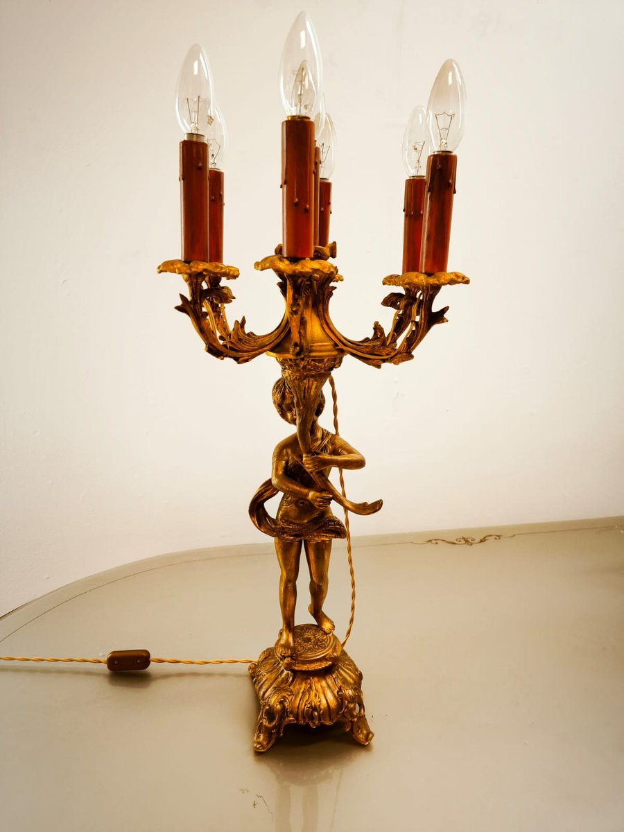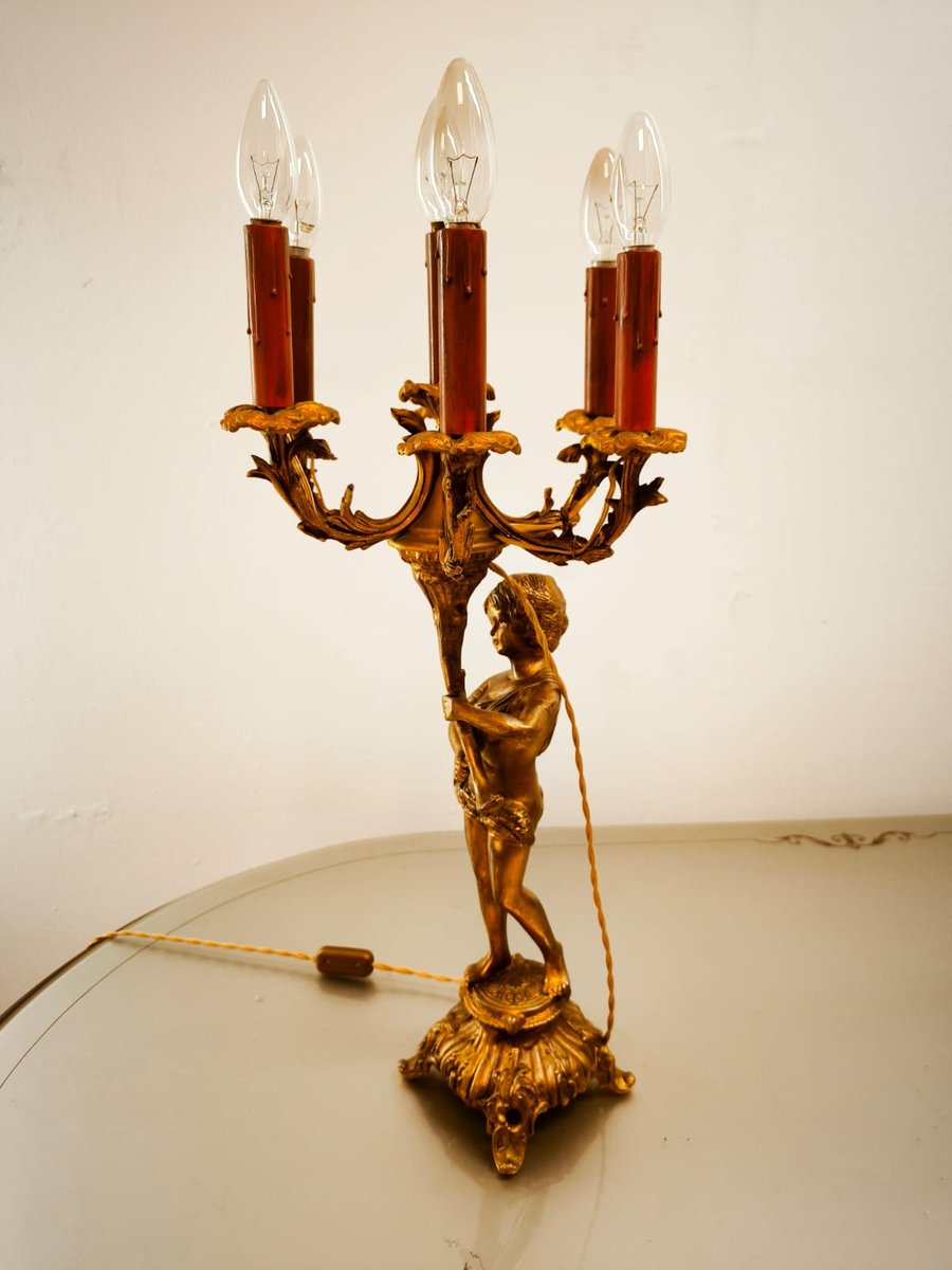 Putto Lampe aus Bronze mit sechs Leuchten
