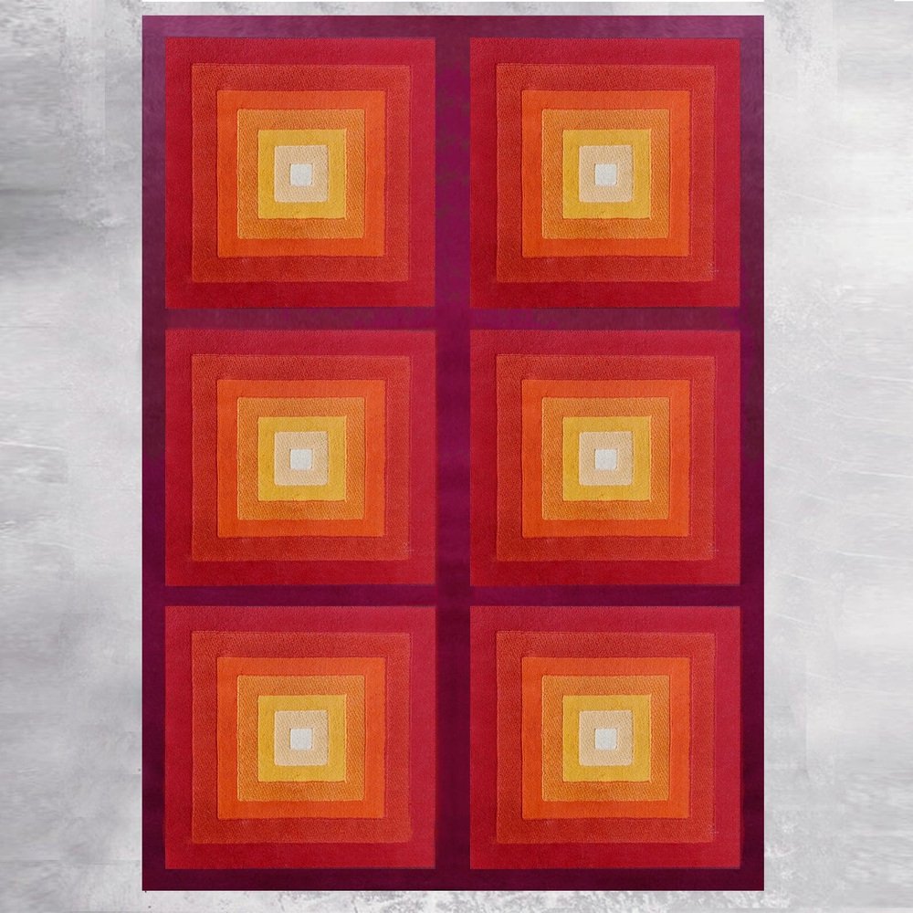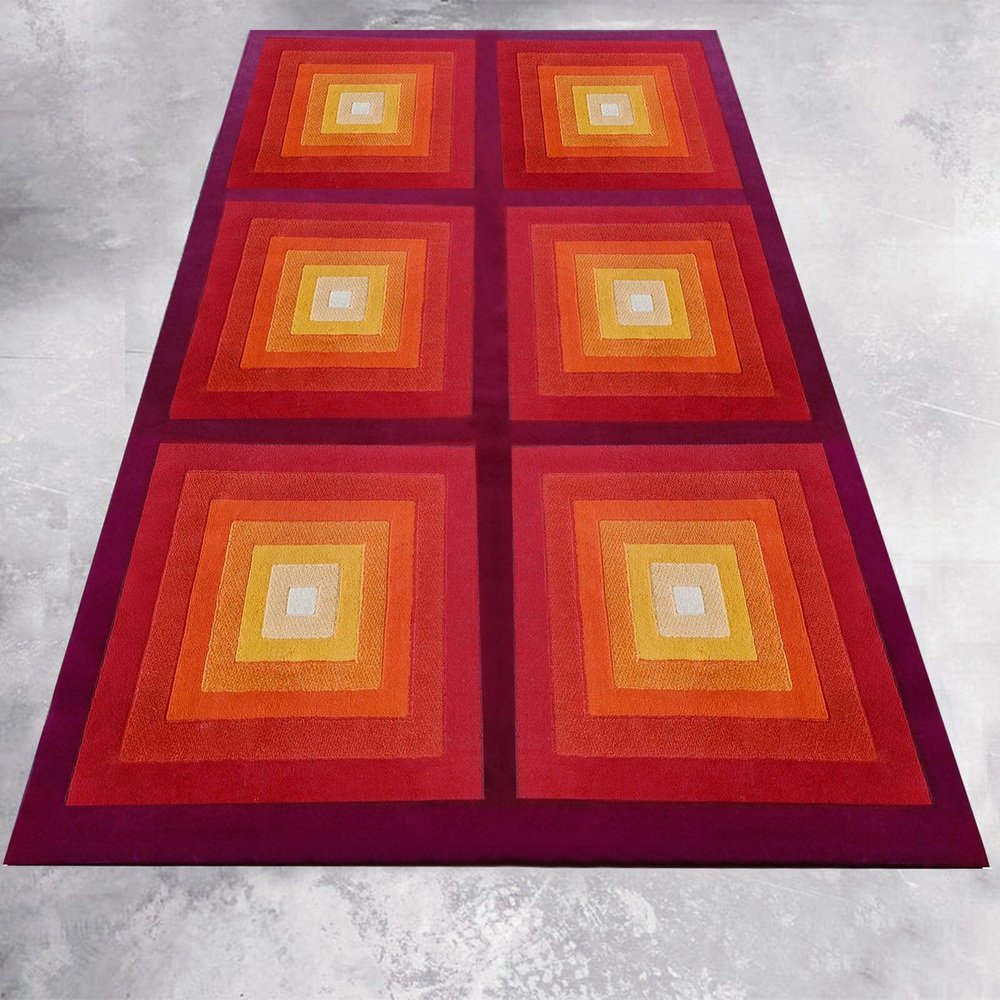 The design is known commercially as "Quadrat" or a similar variant within his collection. Panton sought to create immersive environments with color and form, and this rug is a perfect, rich example of that philosophy.