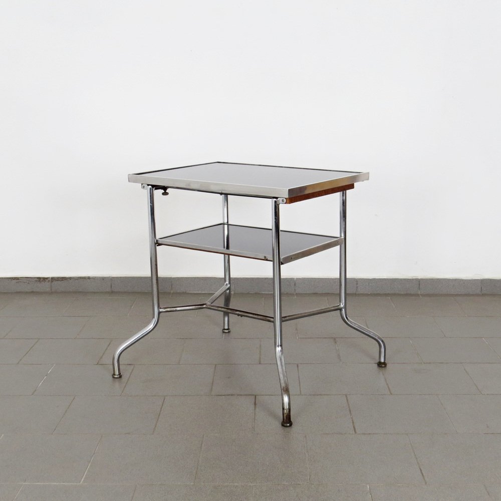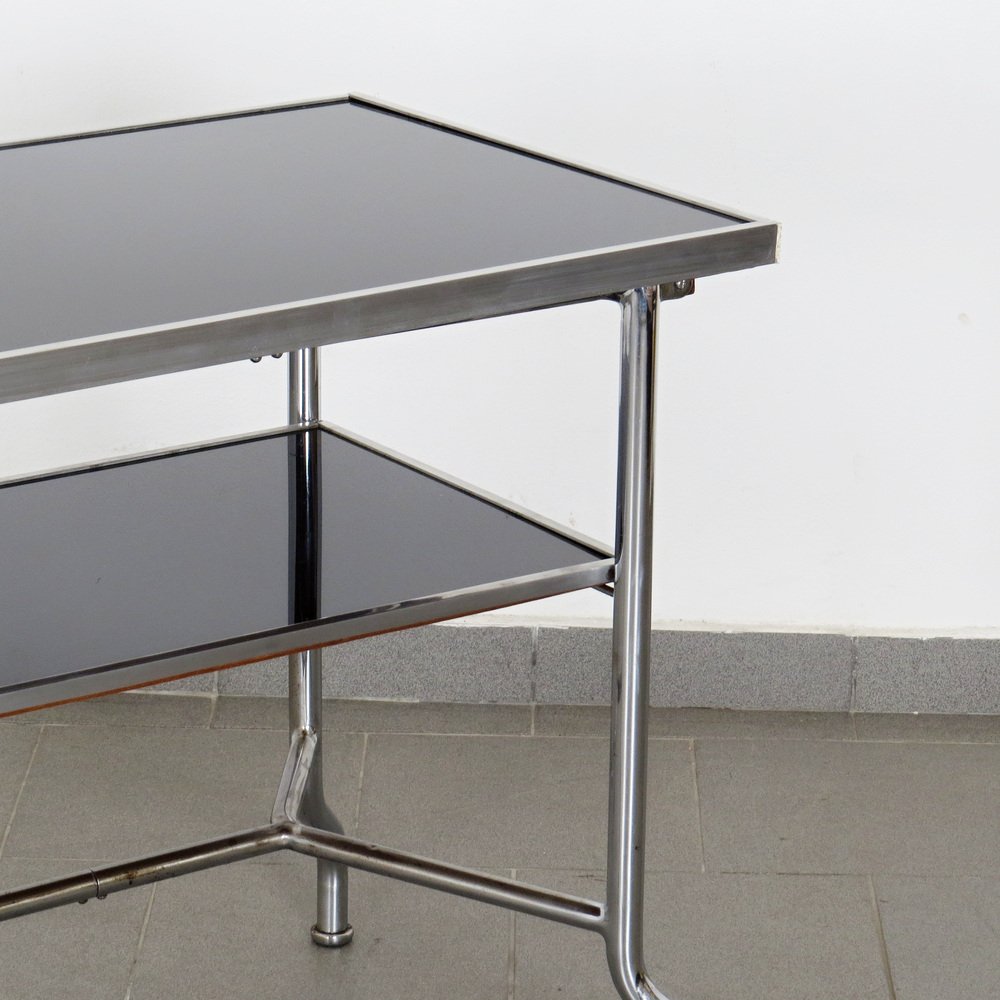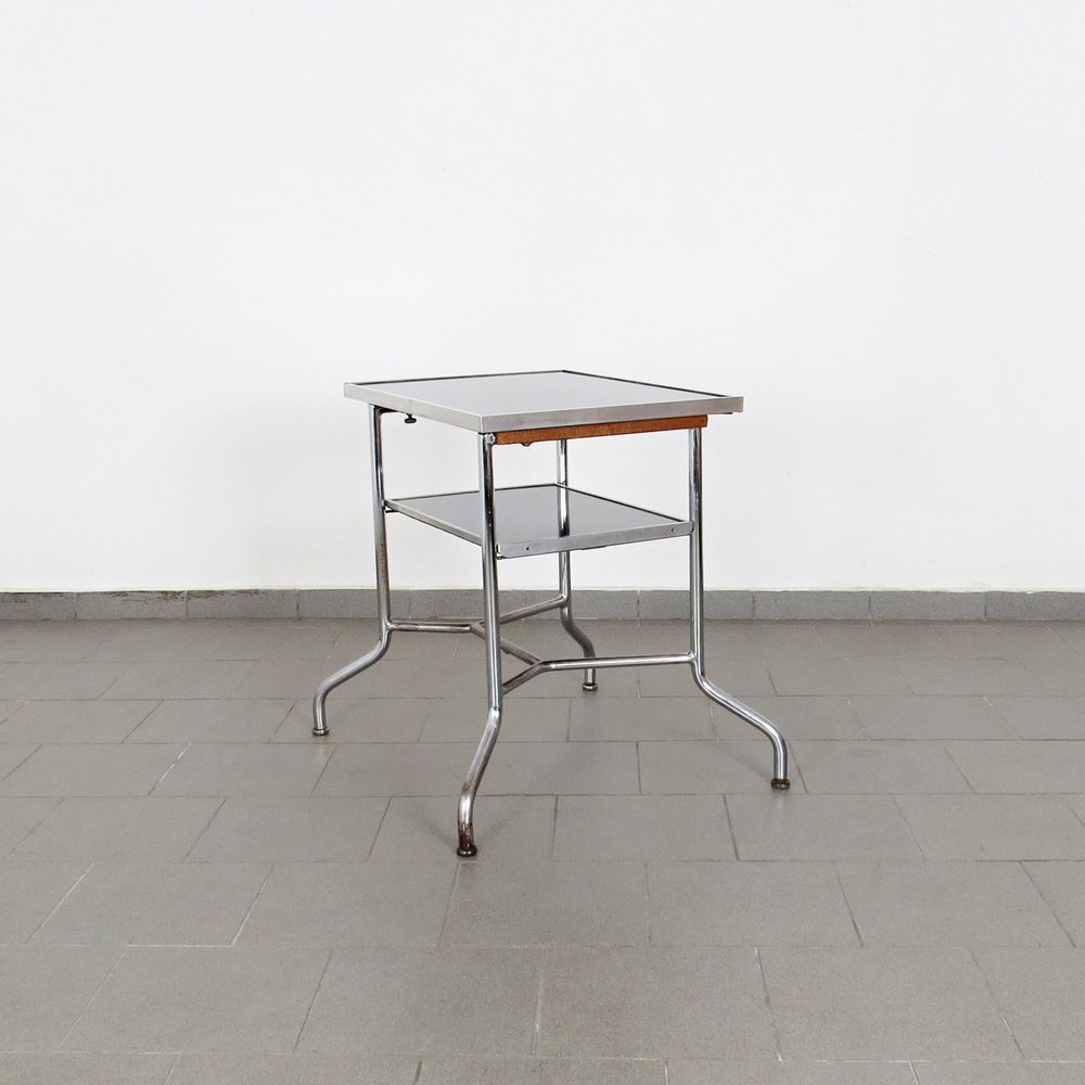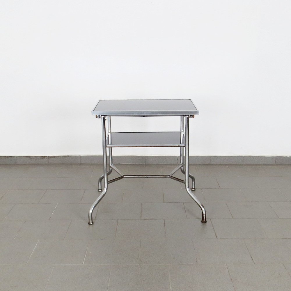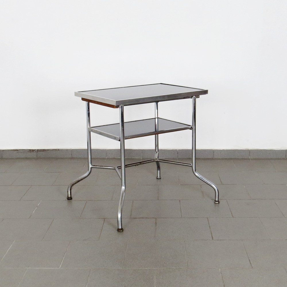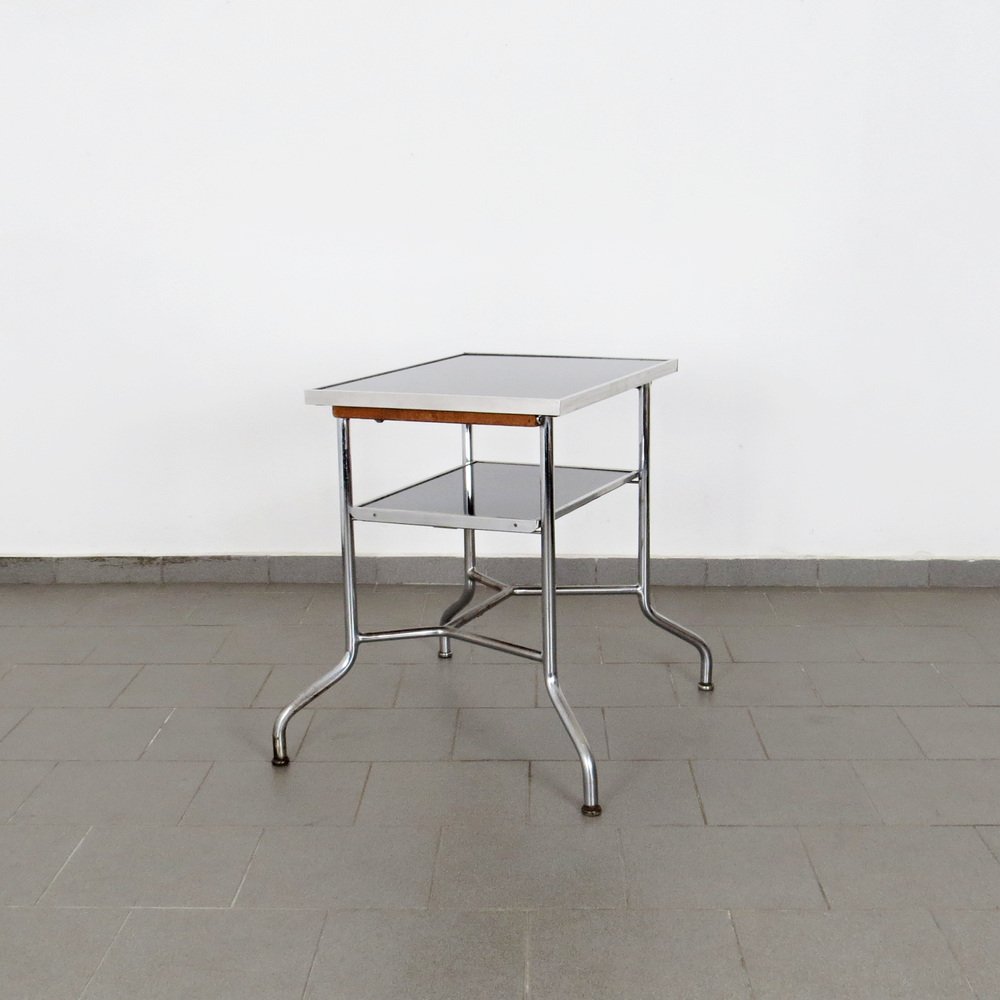 Röhrenförmiger Beistelltisch aus Chrom und Glas