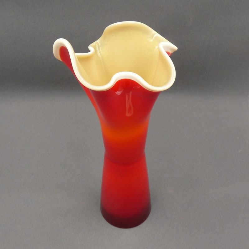 Rote & weiße Murano Glasvase, Italien