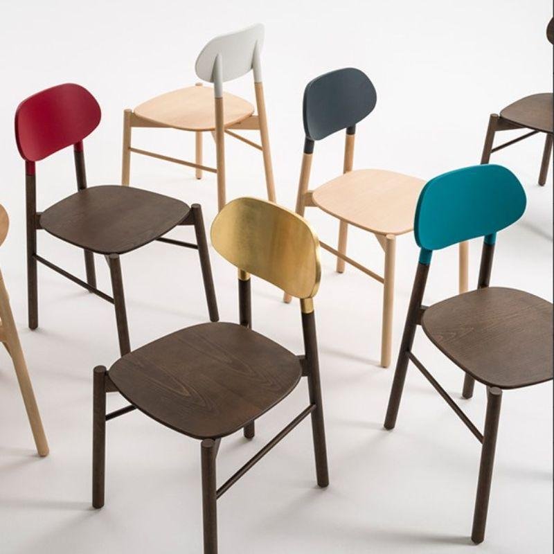 Bokken chair, red, beech structure stained, lacquered back by Colé Italia with Bellavista/Piccini Dimensions: H.81,7 D.49 W.53,5 cm Materials: Solid beech wood structure Also available: Natural beech structure; lacquered back, natural beech structure; gold or silver leaf back, beechwood stained, beech structure stained; lacquered back, beech structure stained; gold or silver leaf back An essential chair in the form yet precious in colors. Tapered and elongated, the legs of the seat are inspired by the bokken, a wooden replica of the Japanese sword used in the training of the Japanese martial art of Aikido and Kendo. Bokken chair is characterized by the backrest in precious colors: blue aquamarine, ruby red off-white, anthracite, and authentic gold or silver leaf, to match the structure of natural or walnut dyed beech wood. These chairs are customizable like all the brand’s products to meet the specific demands of the contract sector. Colé is a young Italian design brand, with a high-end production 100% made in Italy.