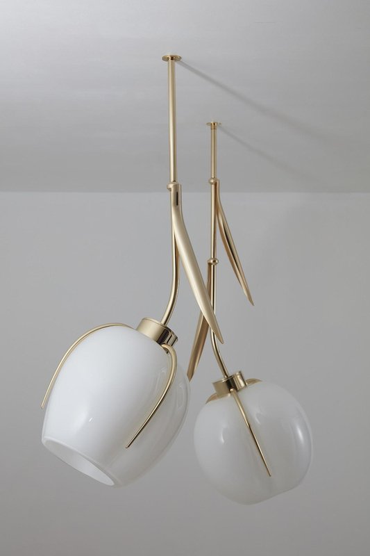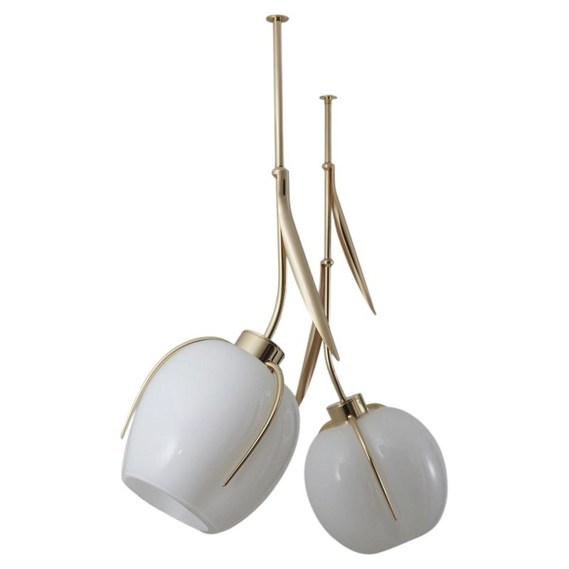 Round Muguet Pendant Lamp by Jennifer Midoz Dimensions: Ø 24 x H 25 cm Materials: Blown glass, pale gold on polished brass. All our lamps can be wired according to each country. If sold to the USA it will be wired for the USA for instance. Jennifer Midoz reinterprets the famous spring flower, symbol of happiness and renewal. The delicate buds become opaline glass bubbles offering a soft, intimate light, set like precious stones. Jennifer Midoz (formerly Mydriaz Paris) is a lighting and decorative furniture design studio founded in 2011. from its atelier under the Viaduc des Arts in Paris, Jennifer Midoz and her team develop large-scale projects, from the first sketch through to production and installation. All pieces are handcrafted and, in some cases, made to order, and can be found in renowned boutiques, hotels, and private residences.Light lies at the heart of every creation, explored through a range of materials: metal for its reflections and projections; glass and ceramics for the elegance of their movement and subtle play of color. Jennifer Midoz’s universe draws inspiration from nature, cinema, and painting—three worlds that continuously nourish the studio’s creative process. A graduate of École Boulle, Jennifer began her career in museography before founding her first brand as a jewelry designer. This early work shaped her affinity for pure, architectural forms and a deep sensitivity to texture and light—elements that naturally led her to the creation of the studio, where lighting now plays a central role.