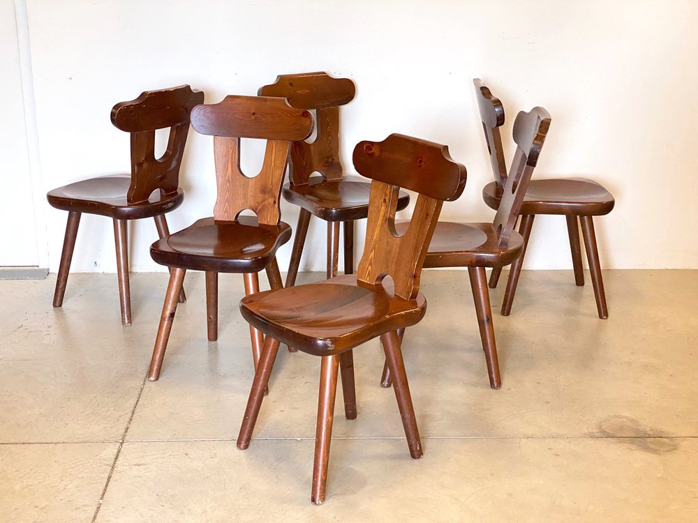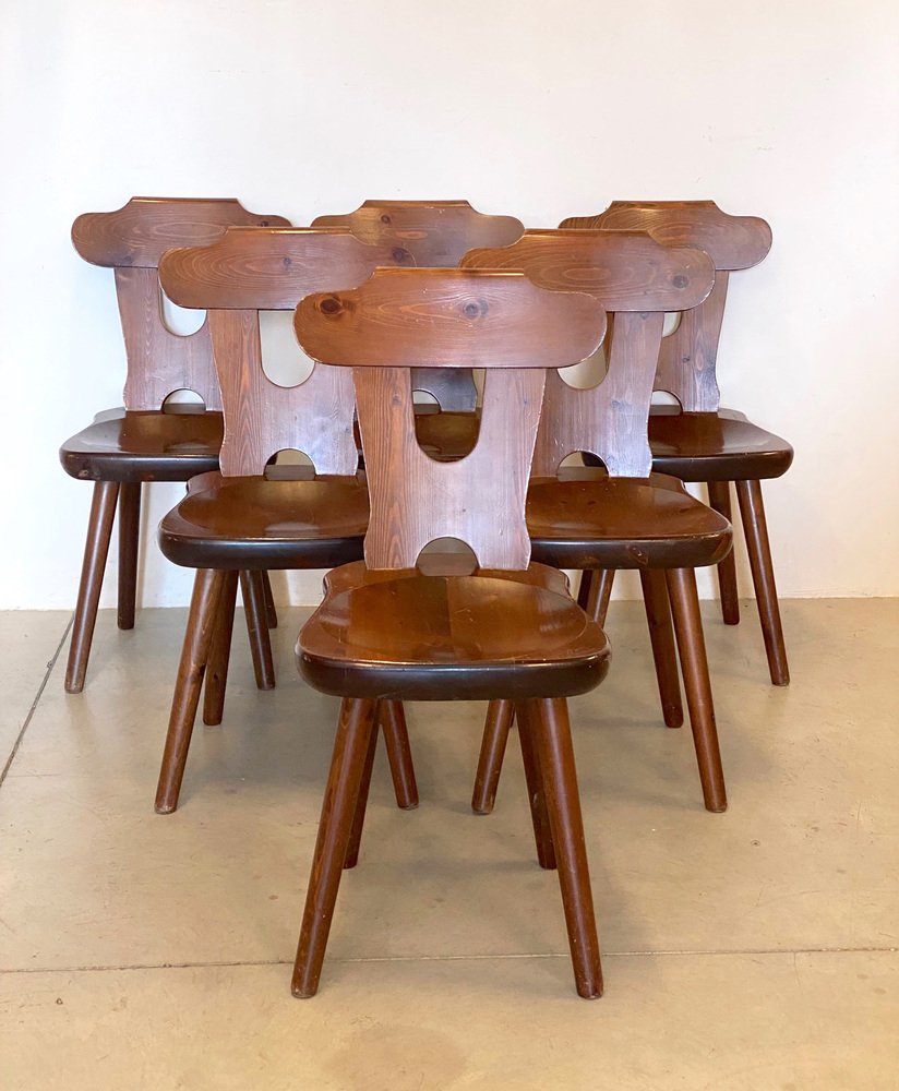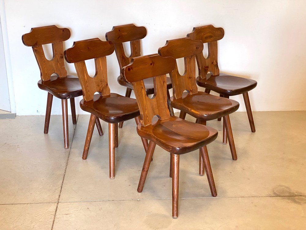 Rustikale Stühle aus Pinienholz, 1960er, 6er Set
