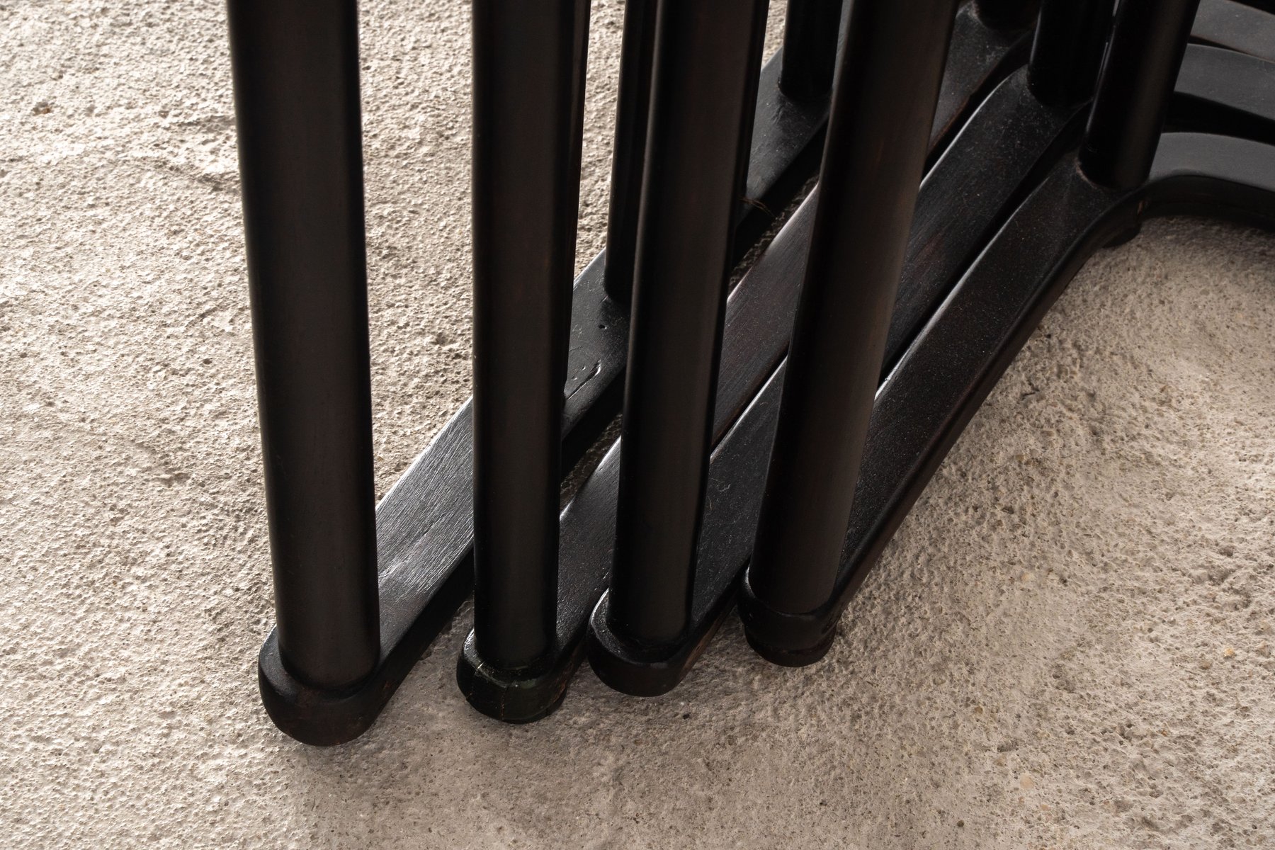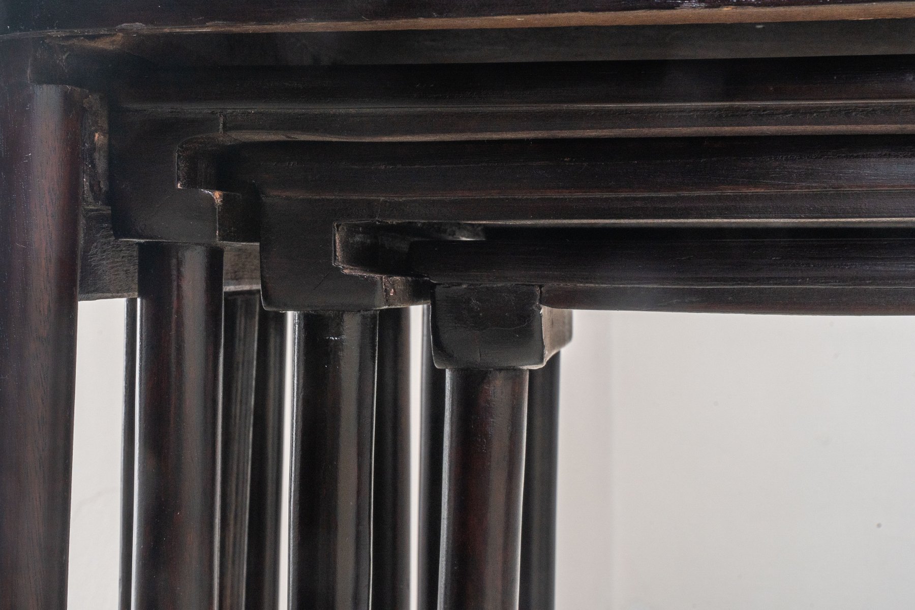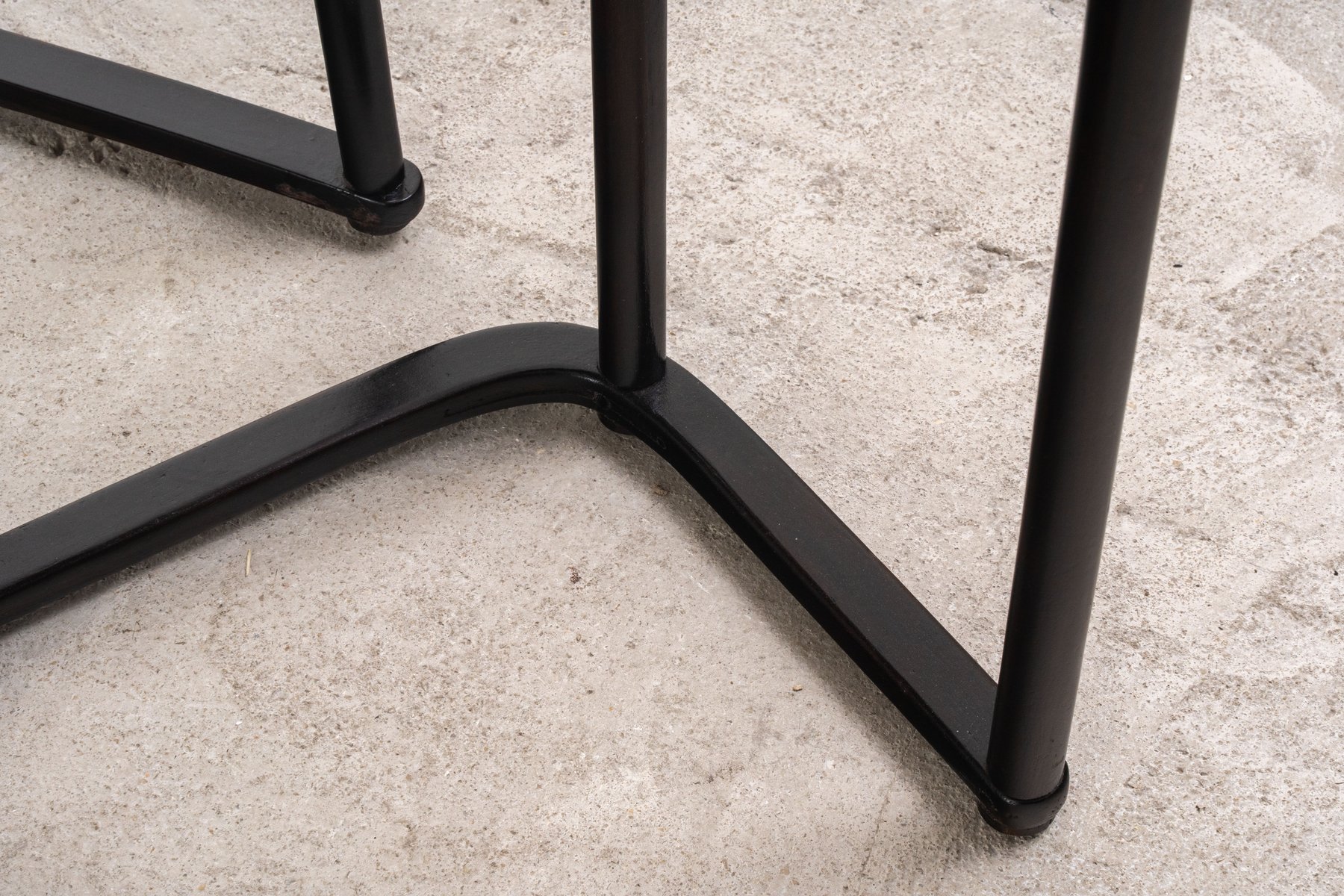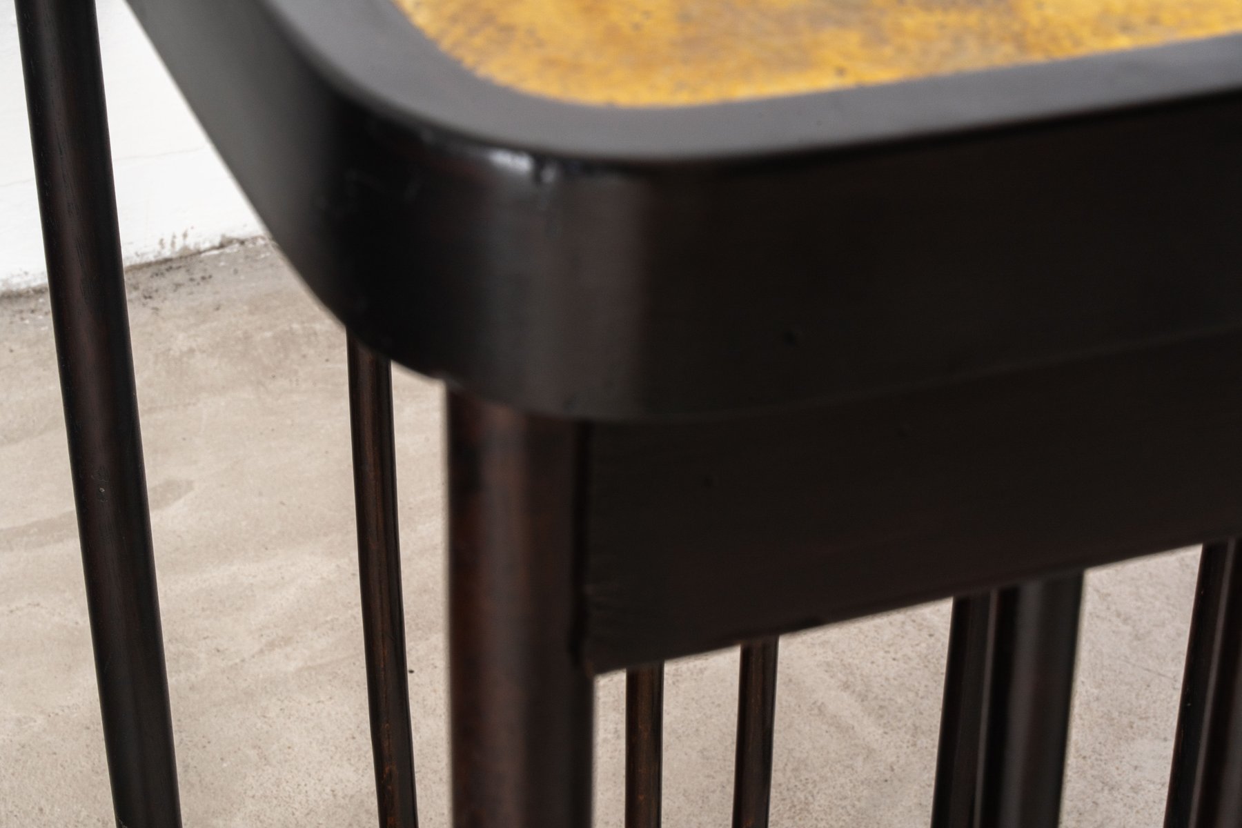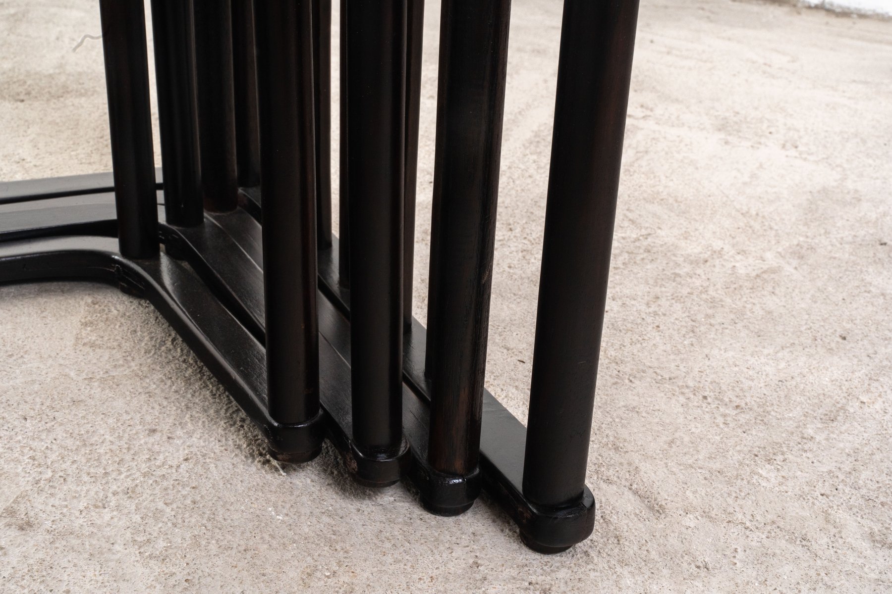 This exquisite set of nesting tables, designed by the renowned Josef Hoffmann and produced by Jacob & Josef Kohn in Vienna around 1905/06, is a testament to the Art Nouveau movement. Crafted from beech wood and featuring inlaid hammered brass tops, these tables are particularly rare with brass tops on all pieces. The smallest table bears a paper label marked "JACOB & JOSEF KOHN," affirming its authenticity. In excellent condition, these tables show minimal signs of wear. Referenced in several significant works, including the J. & J. Kohn factory catalogues of 1906 and 1916, G. Renzi's "Il mobile moderno, Gebrüder Thonet Wien, Jacob & Josef Kohn" (Milan 2008), "Gebogenes Holz. Konstruktive Entwürfe Wien 1840–1910" (Vienna 1979), and D. Baroni and A. d’Auria's "Josef Hoffmann e la Wiener Werkstätte" (Milan 1981), these tables stand as a noteworthy example of Jugendstil design. with dimensions of 75 cm in height, 62 cm in width, and 45 cm in depth, they represent a rare and valuable find for collectors and connoisseurs of early 20th-century furniture.