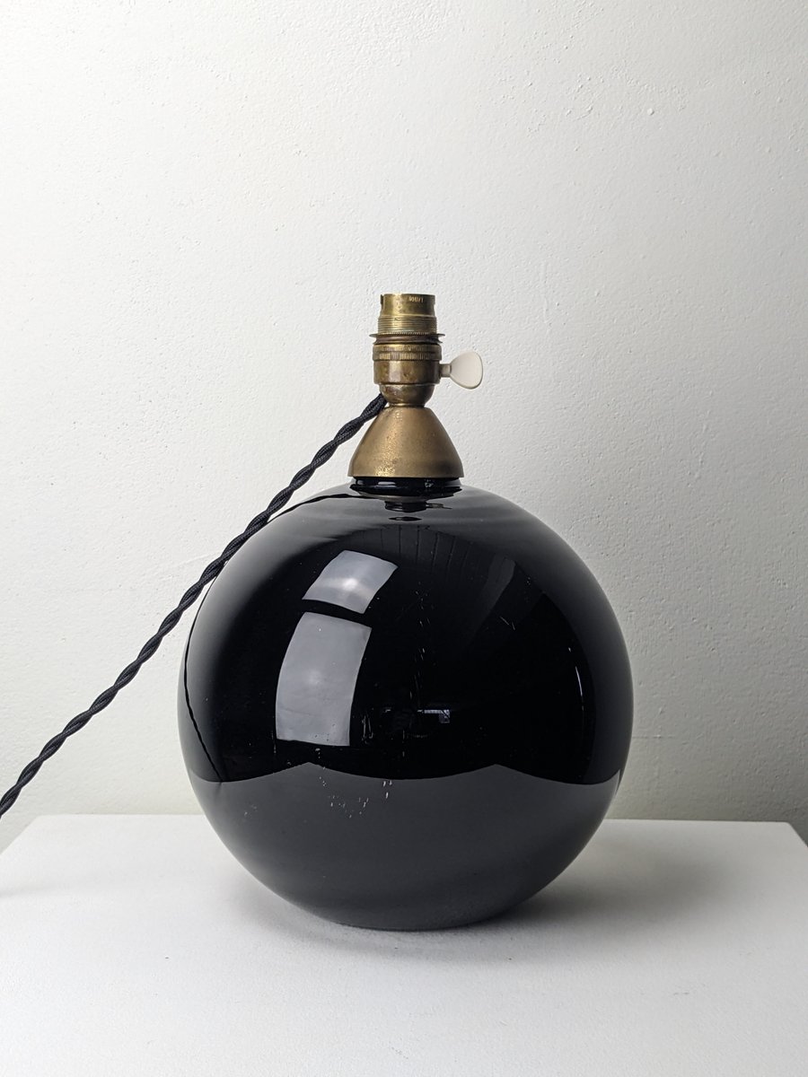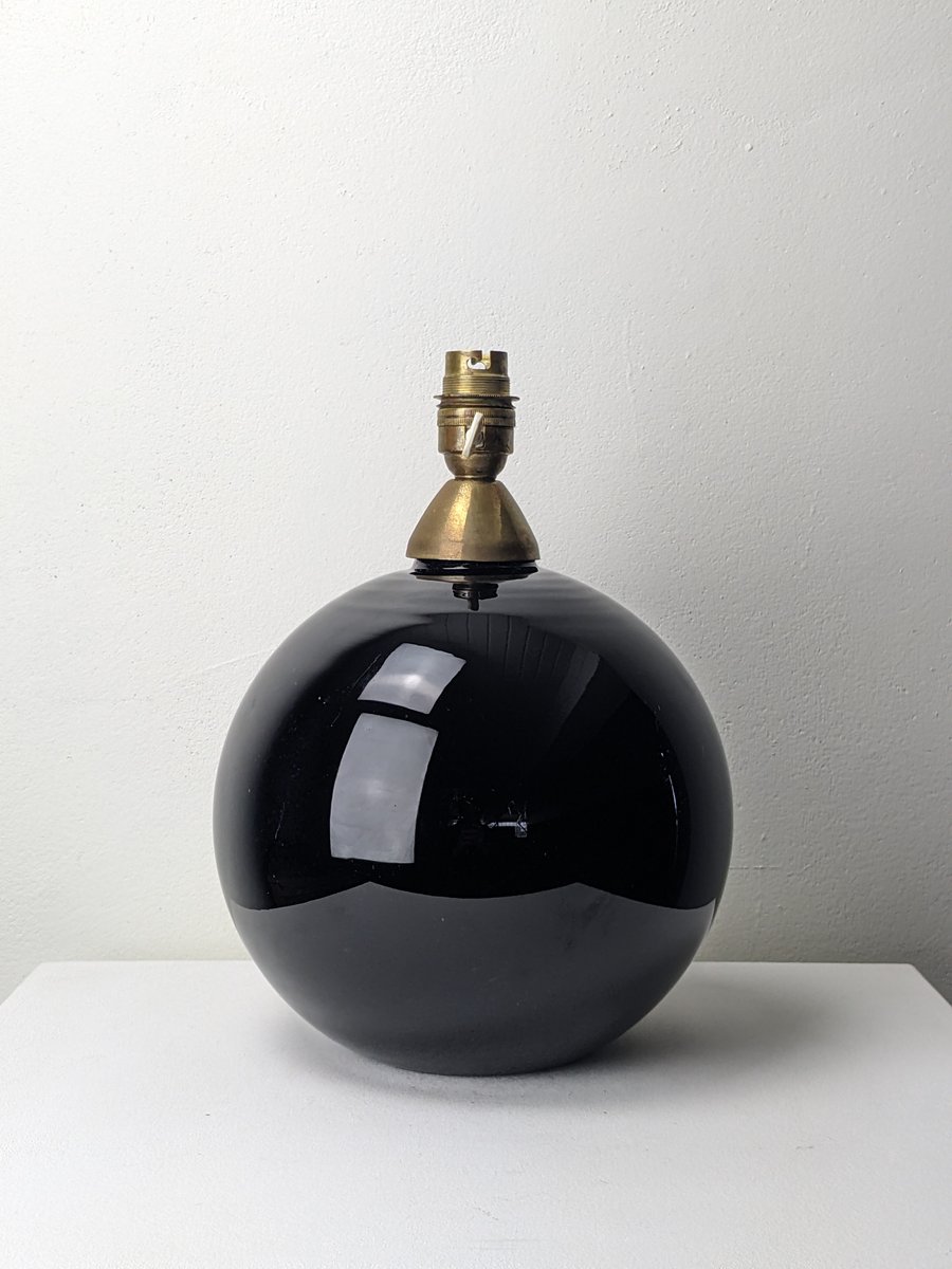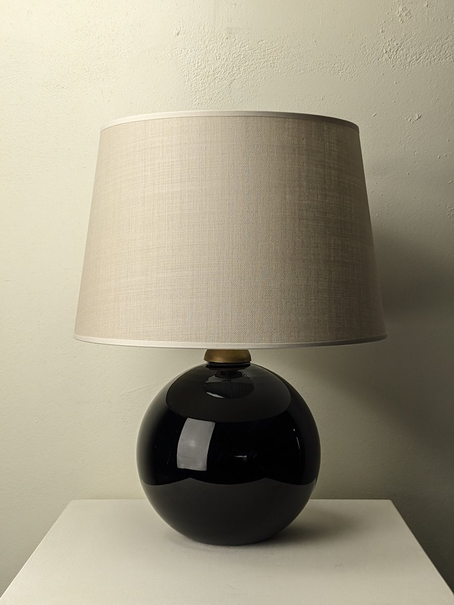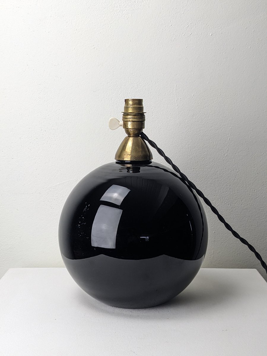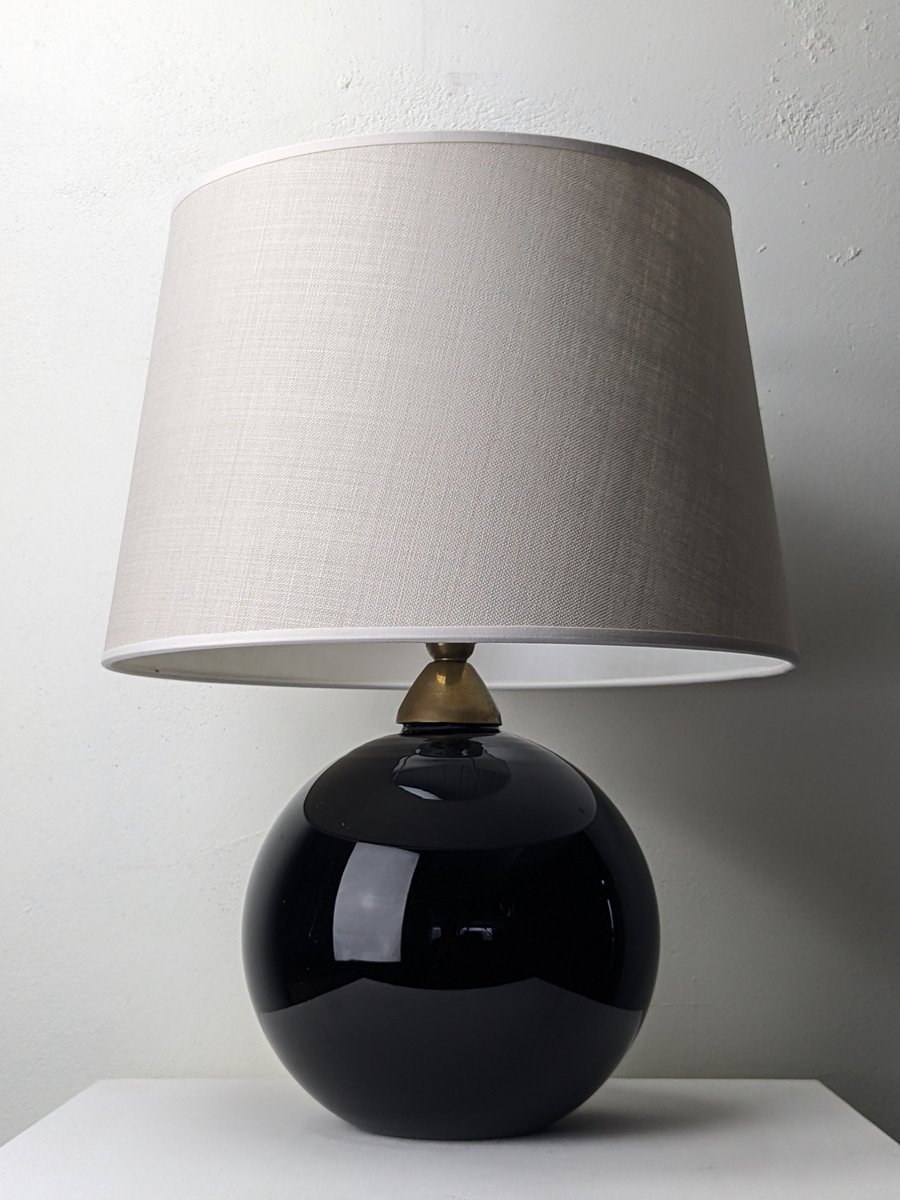 Schwarze Opalglas Tischlampe im Stil von Jacques Adnet, Frankreich, 1930er