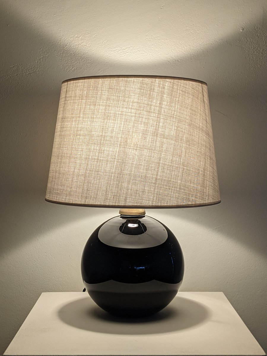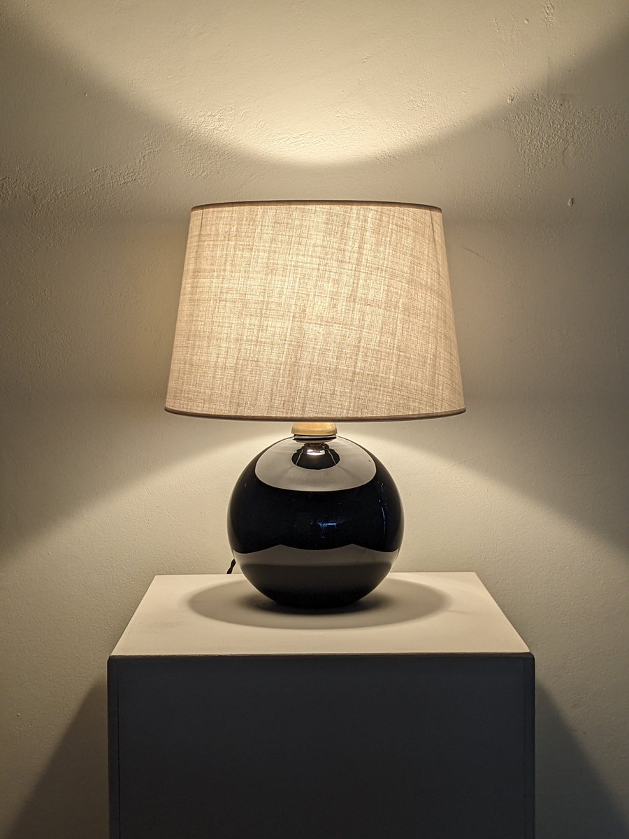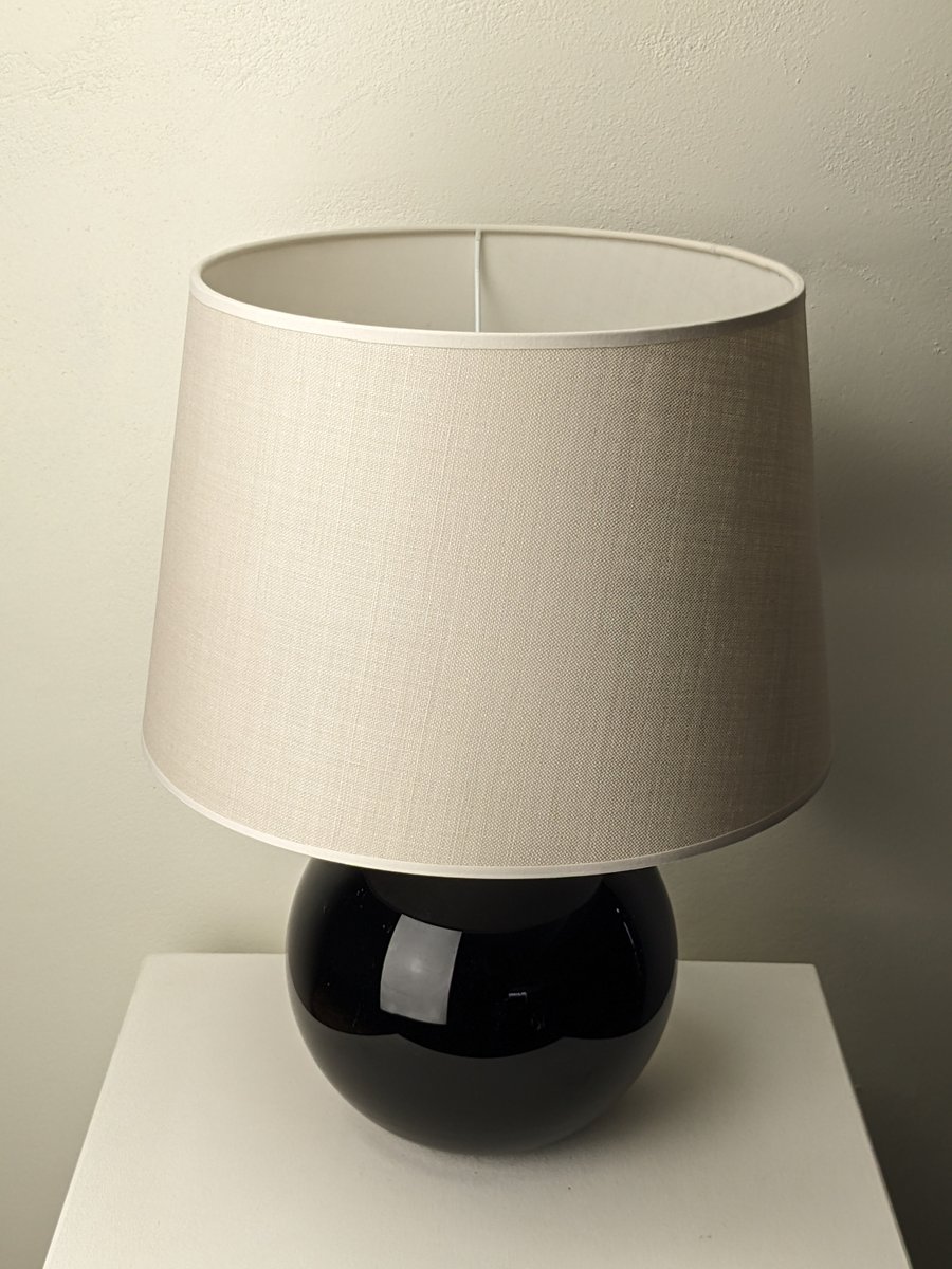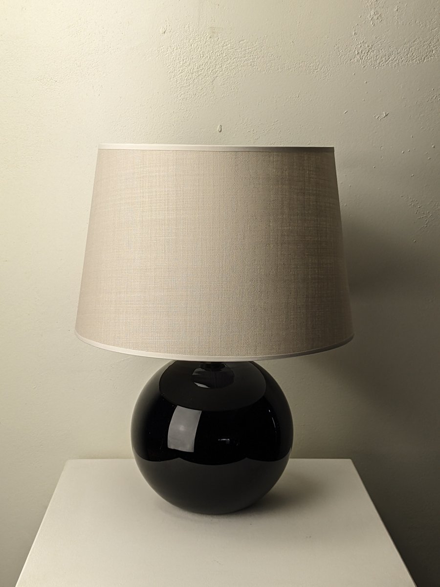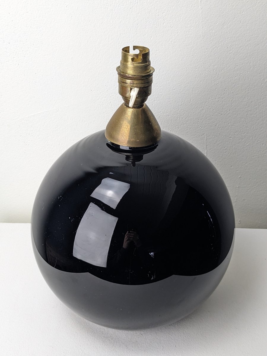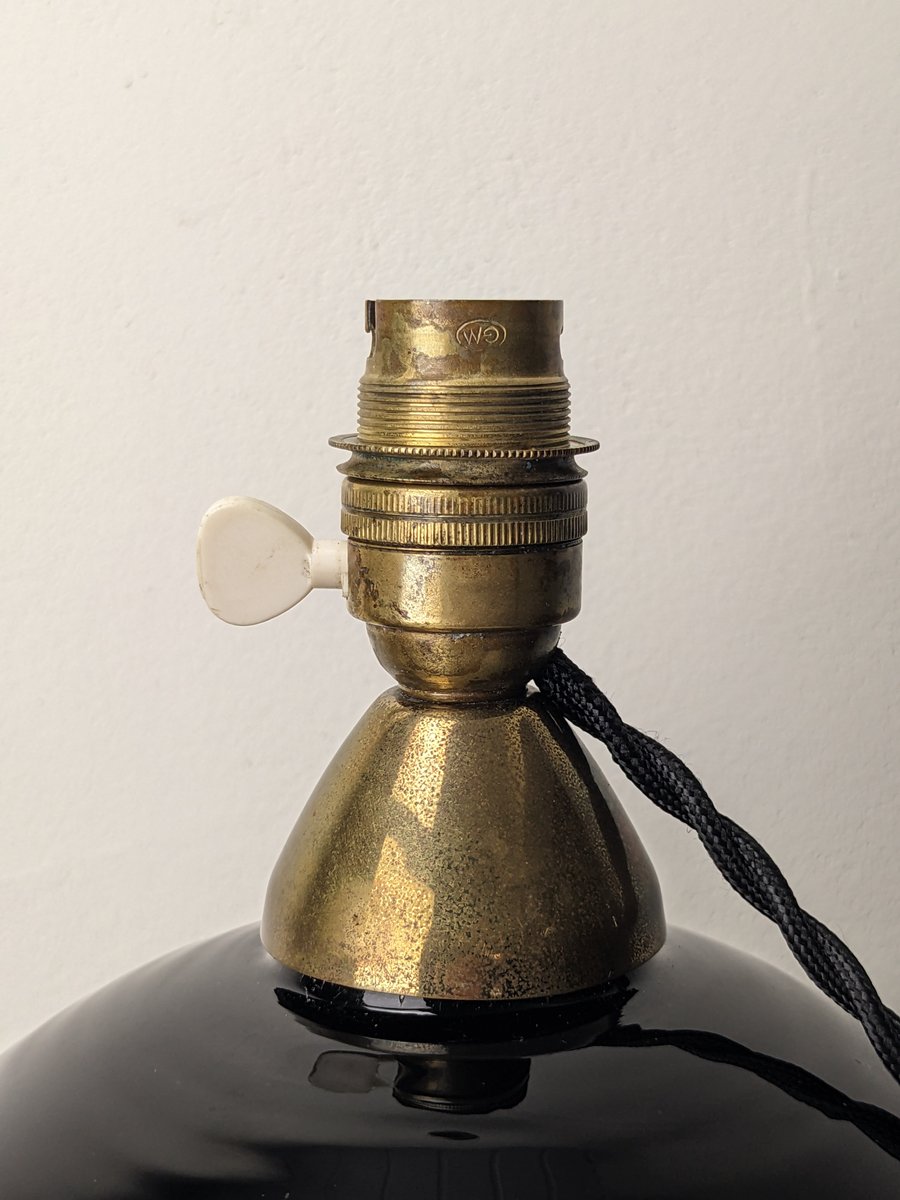 Schwarze Opalglas Tischlampe im Stil von Jacques Adnet, Frankreich, 1930er