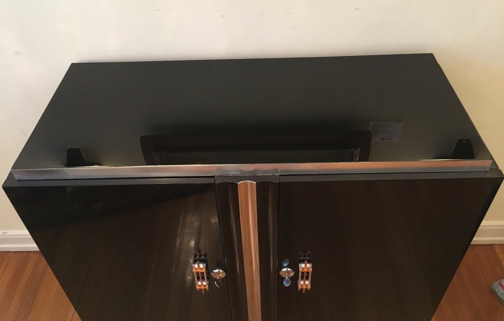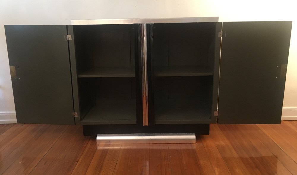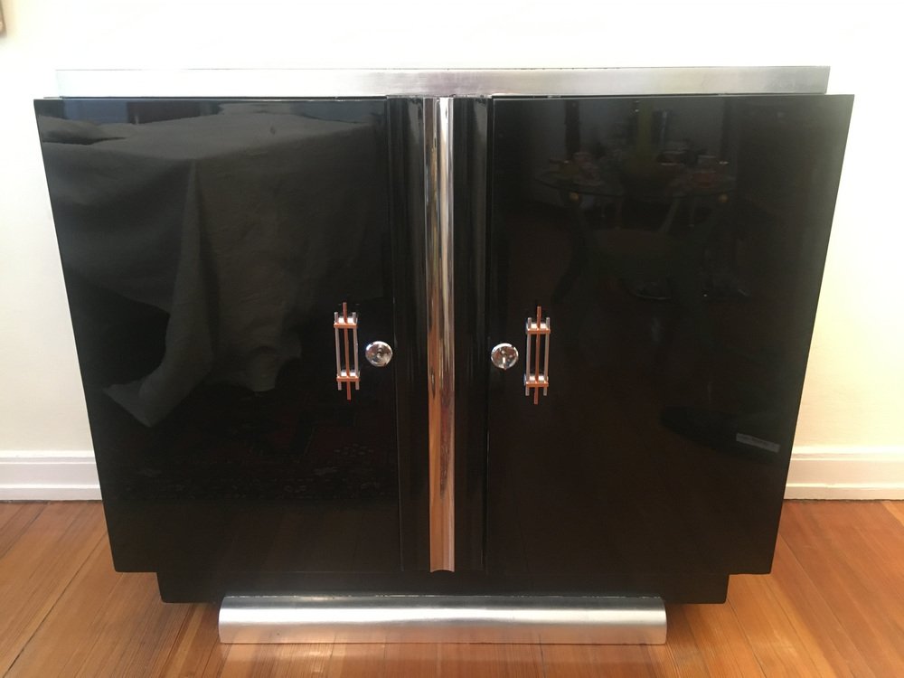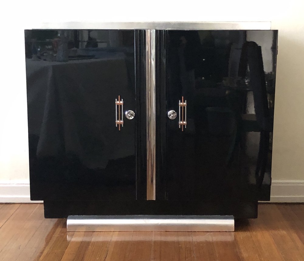 Schwarzes Art Deco Sideboard mit Blattgold Elementen, Frankreich, 1920er