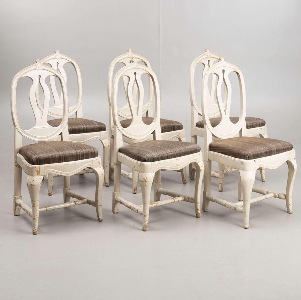 Schwedische bemalte Gustavianische Stühle, 1800er, 6 . Set