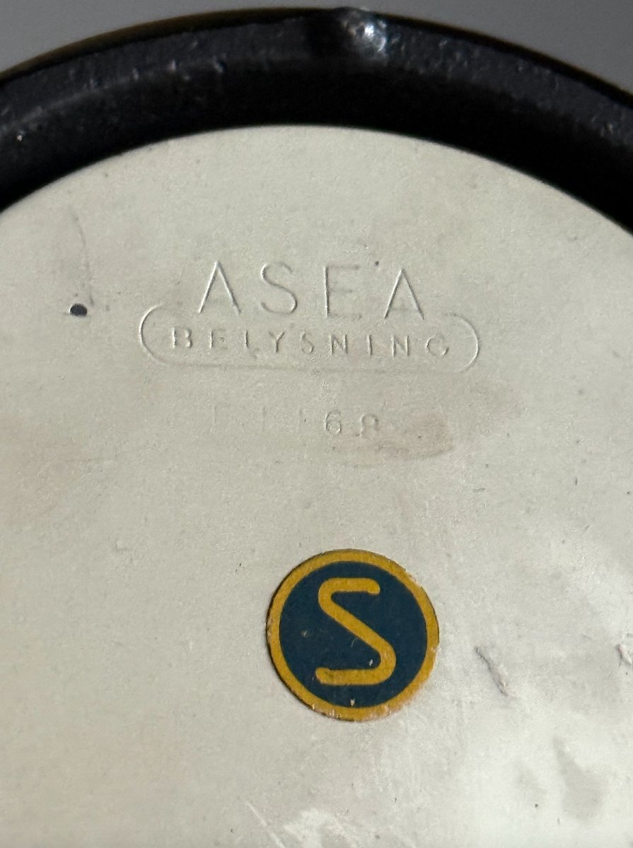 An acronym for Allmänna Svenska Elektriska Aktiebolaget (in English, the “General Swedish Electrical Limited Company”), ASEA was a Swedish manufacturer of electrical products and industrial infrastructure. While broadly known for the more large-scale parts of the catalog—e.g., steam turbines for power plants, high-speed locomotives for passenger railroads, etc.—ASEA endures in hearts of design lovers for their midcentury interior lighting collections produced in collaboration with venerated designers like Gunnar Asplund and Hans Bergström.