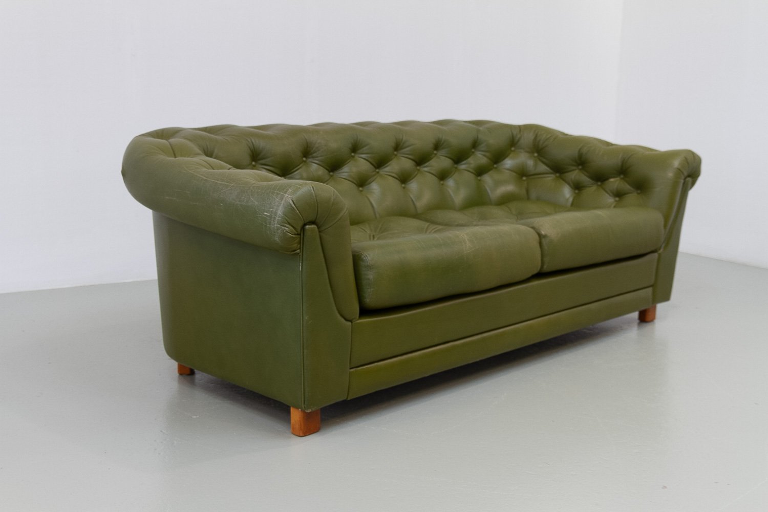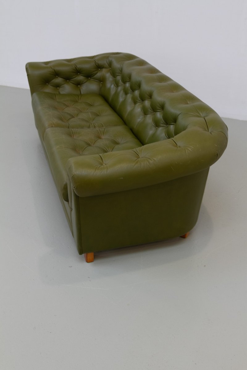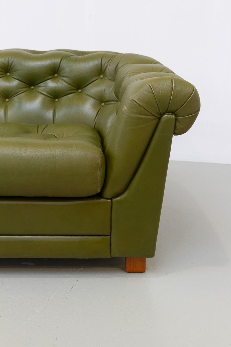 Schwedisches Vintage Chesterfield Ledersofa, 1970er