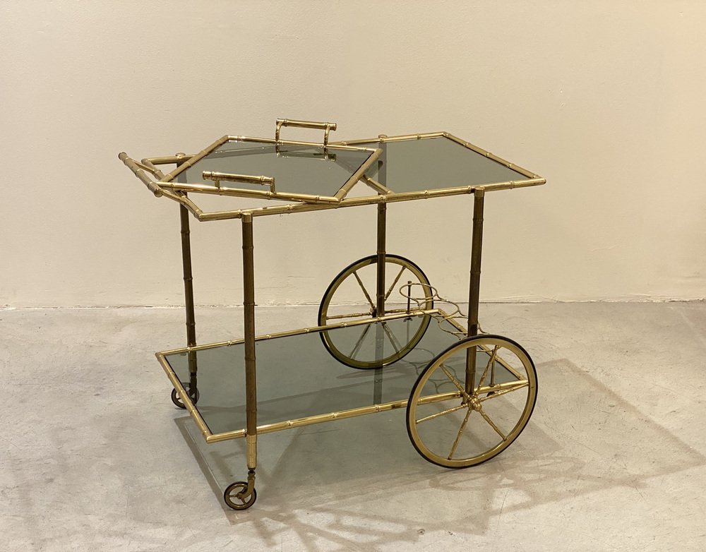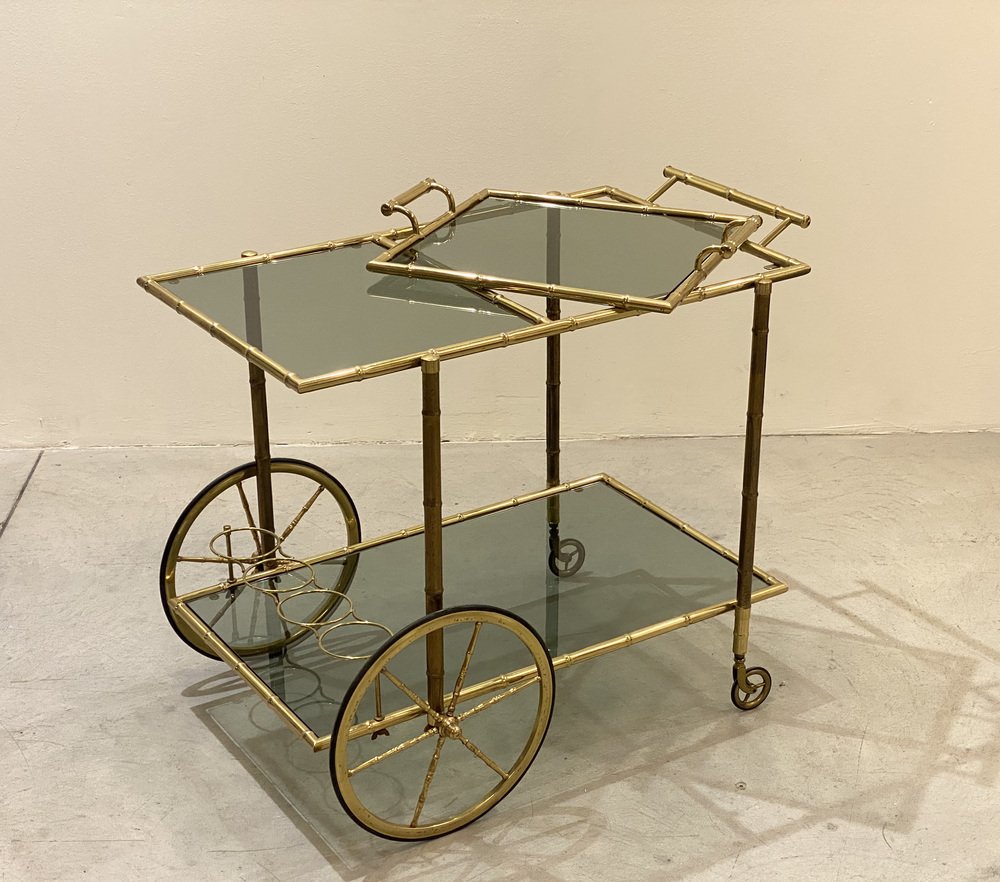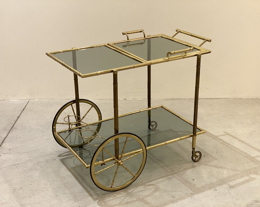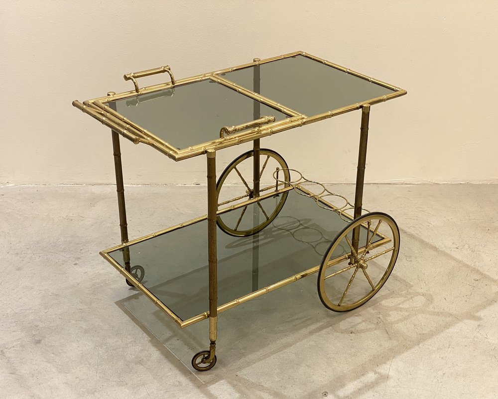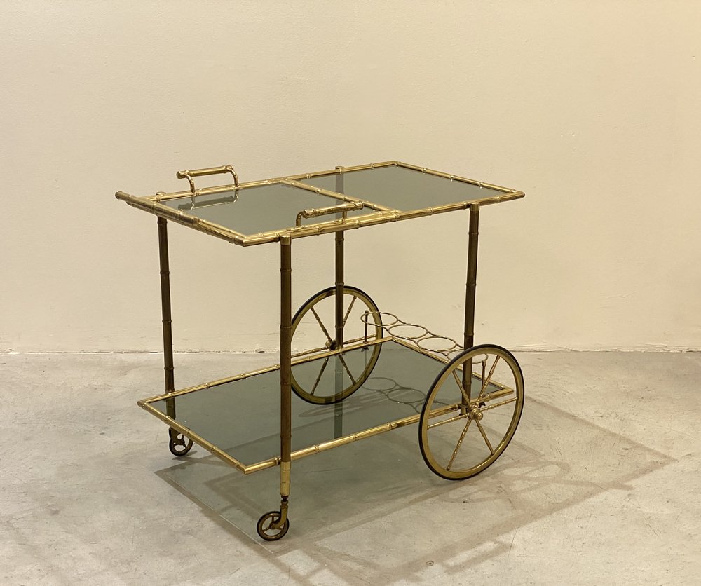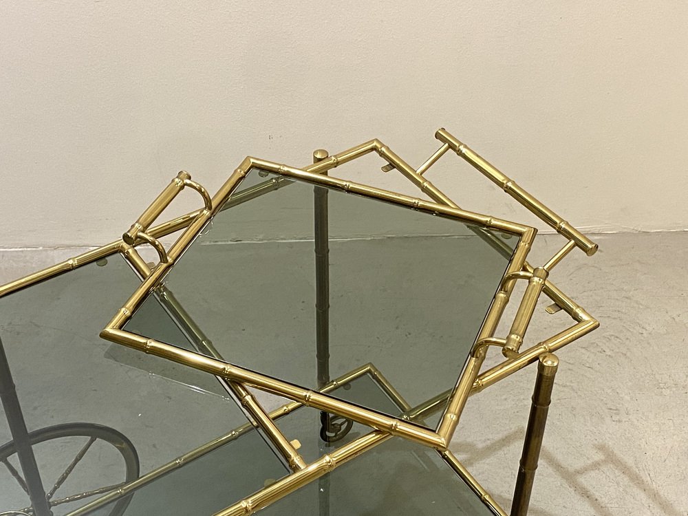 Servierwagen aus Bambus & Messing von Maison Bagues, 1970er