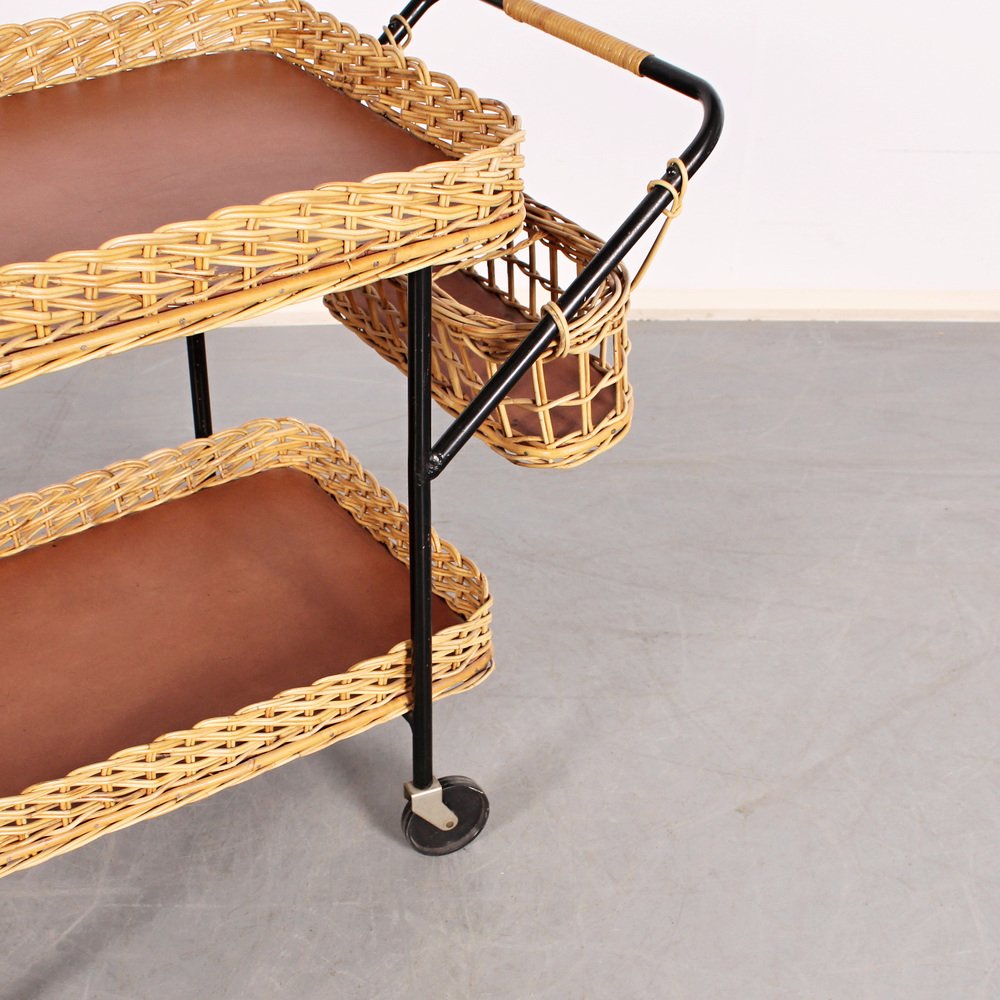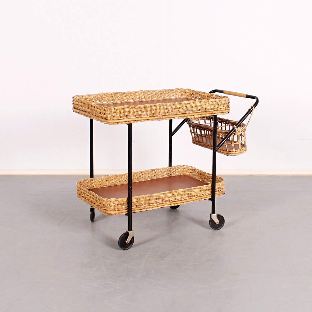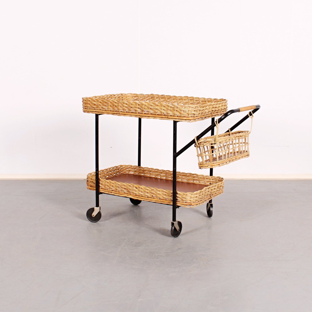 Servierwagen aus Rattan & Stahl