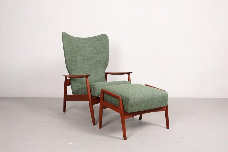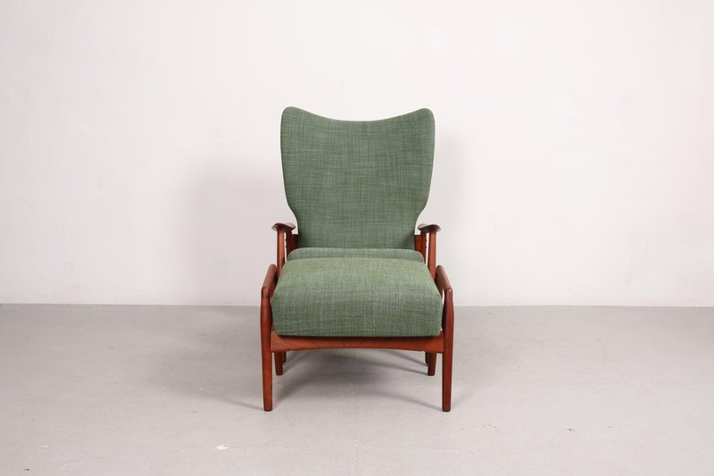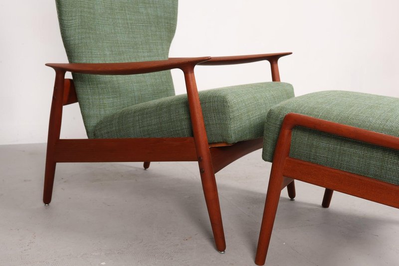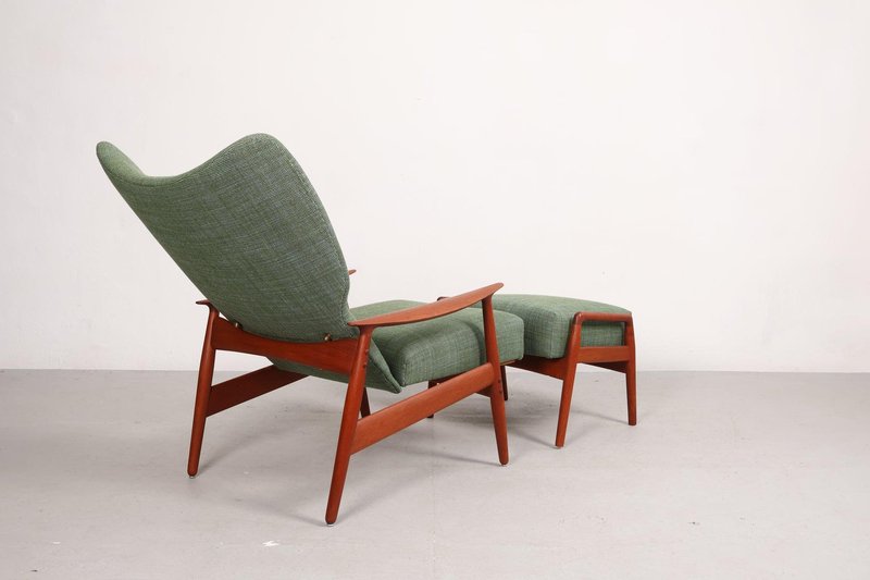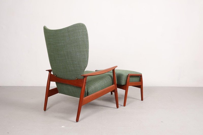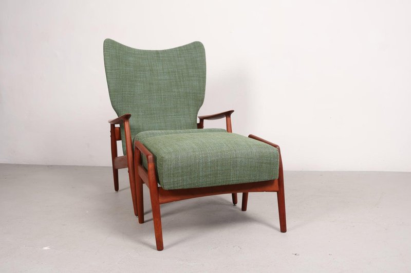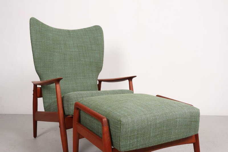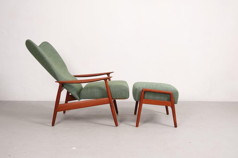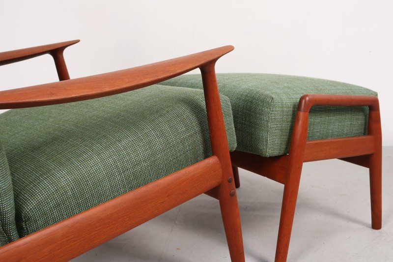 Set aus Sessel und Fußhocker aus Teak von K. Rasmussen, Norwegen, 1960er