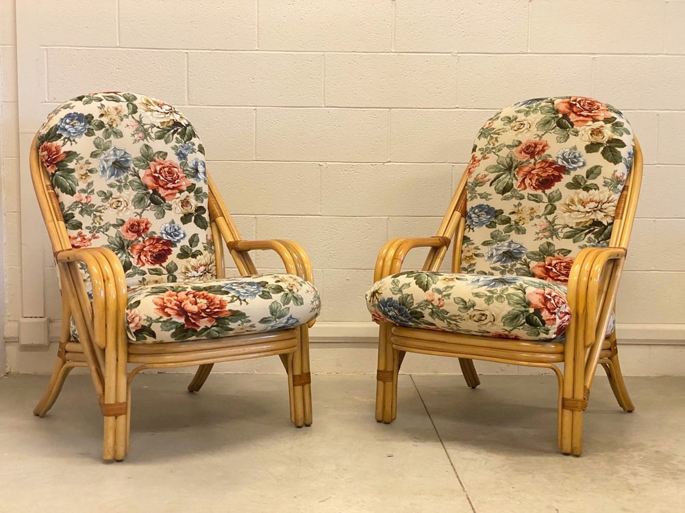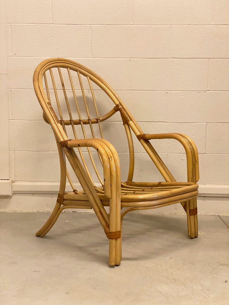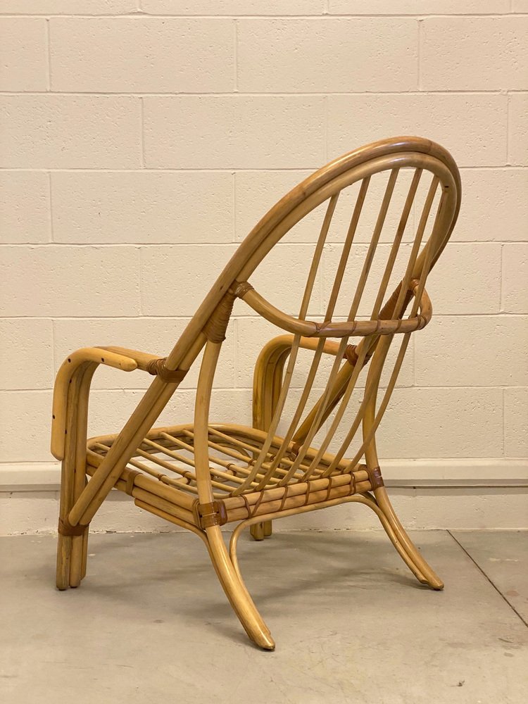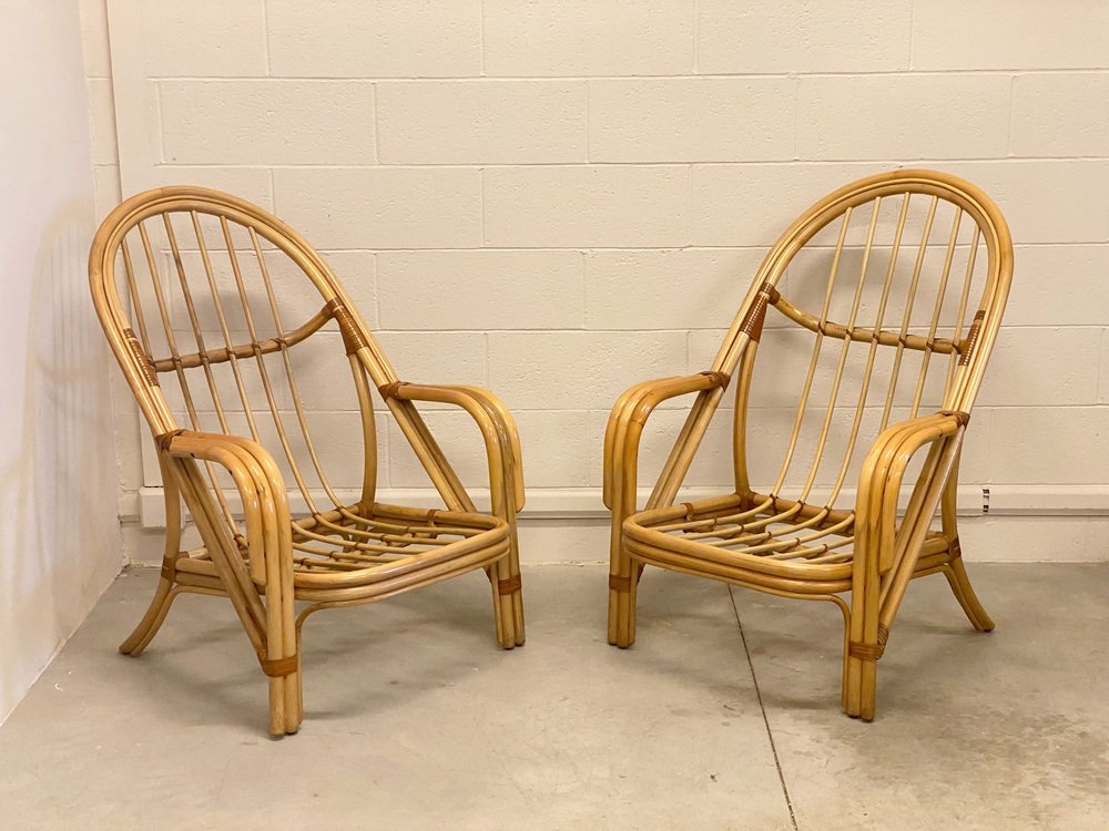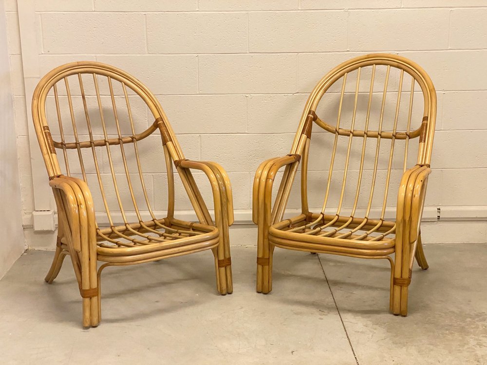 Sessel aus Bambus & Leder, 1980er, 2er Set