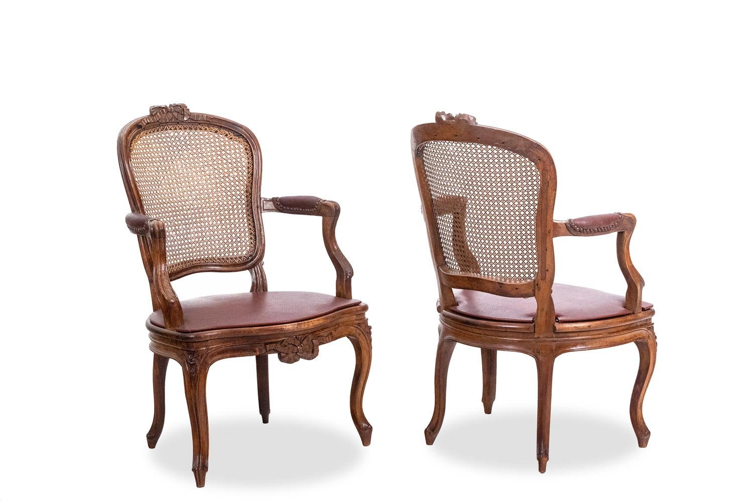 Cabriolet Armlehnstühle aus Nussholz & Geflecht, 2er Set