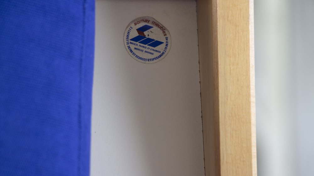 Around the time of the financial crash in 1929, Sornay devised what would prove to be his signature technique: cloutage, a method of studding the exterior of veneered furniture panels with a series of perfectly proportioned nails. Patented in 1932, cloutage—which lowered manufacturing costs without sacrificing functionality or elegance—could be found on nearly every piece of Sornay’s 1930s oeuvre, from cabinets and multitiered tables to his distinctive angular-based Rosewood and Mahogany Armchairs (1935). Sornay continued to experiment with new manufacturing techniques in the following decades, culminating with his late 1940s pioneering of a new system to produce modular furniture, in which long metal or wood bolts were used to hold furniture panels together. This innovative design, like similar contemporaneous work such as Elias Svedberg’s Triva series for Nordiska Kompaniet, was essentially a precursor to Ikea’s flat-packed furniture.