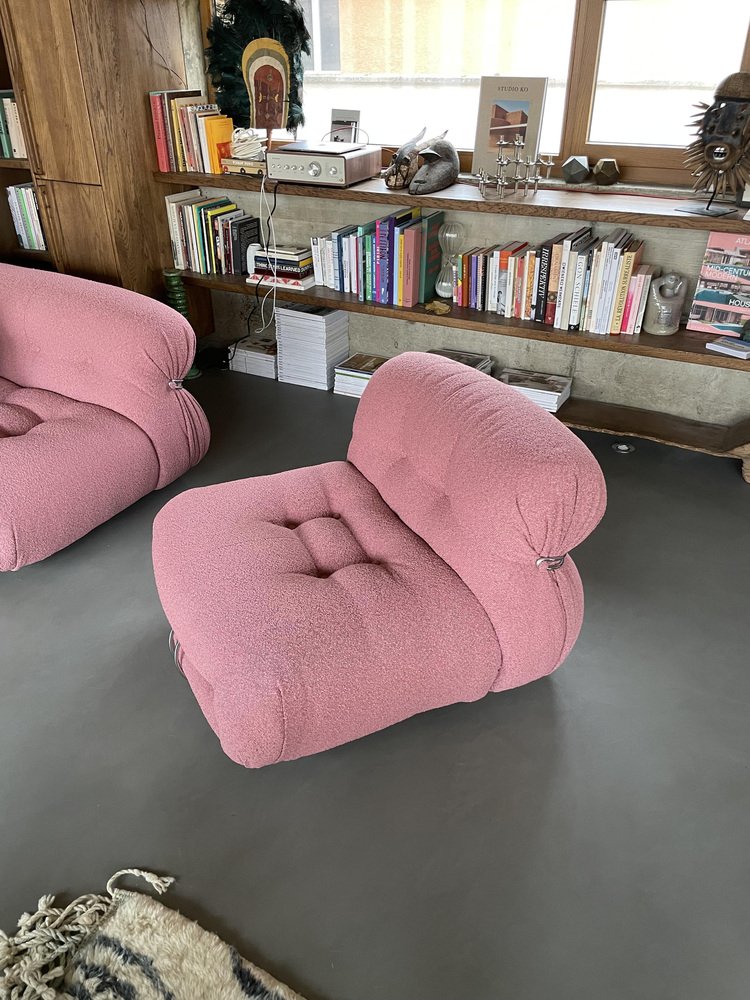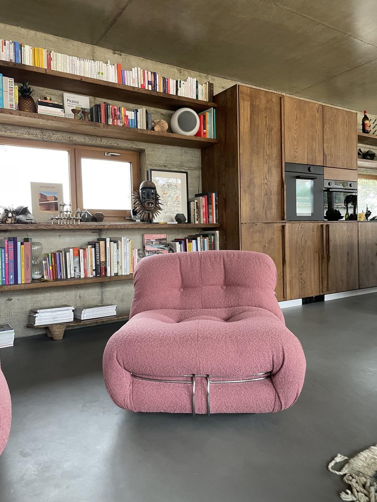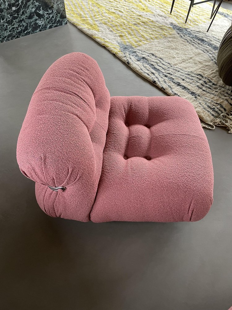 The armchair was covered with a "completed" fabric from a fine of old pink color. The curly brings him a certain warmth, and a very interesting sweetness of seat.