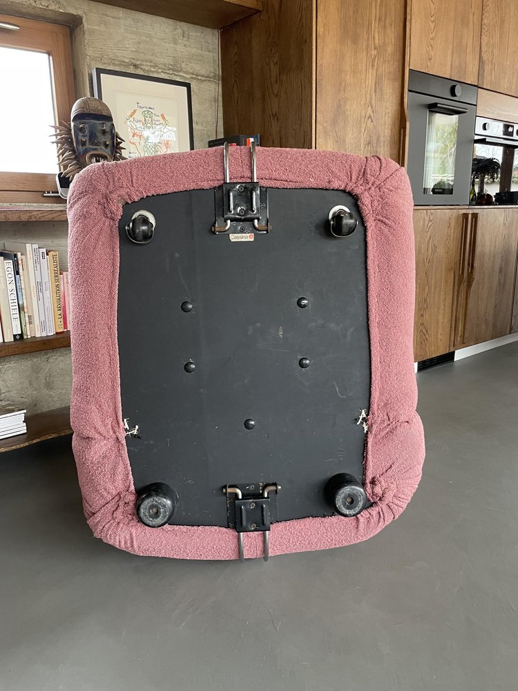 Cassina label of the period under the seat, two feet and two front casters allowing to move it easily.