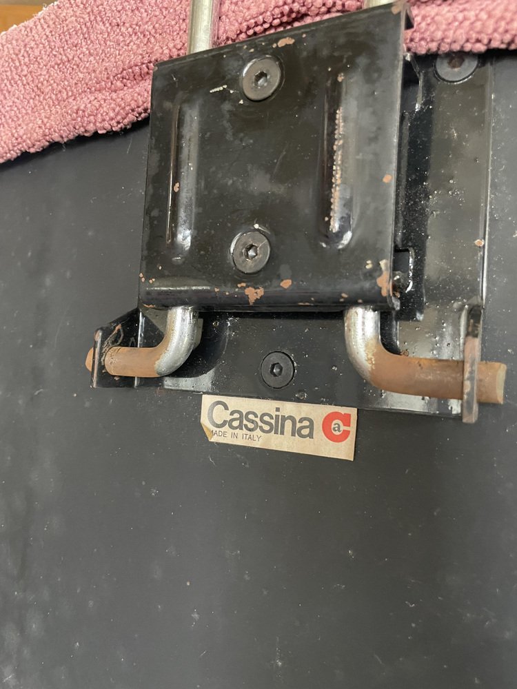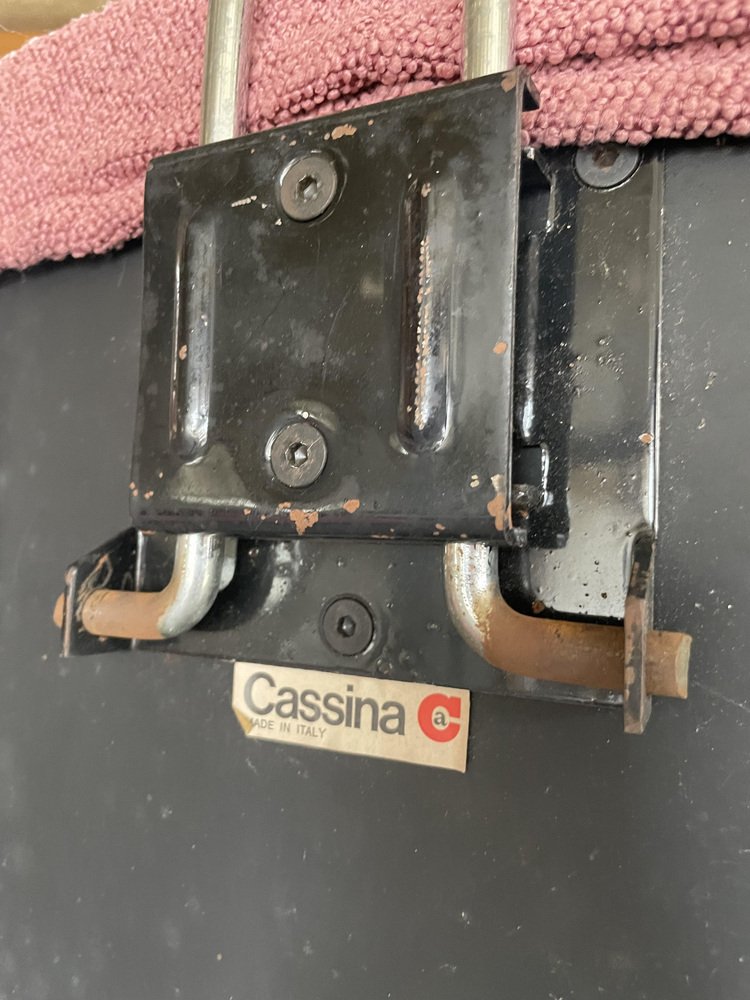 Cassina Etikett der Zeit unter dem Sitz, zwei Füße und zwei vordere Rollen, die es leicht zu bewegen.