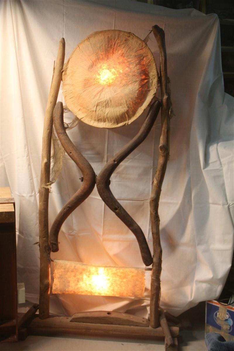 Stehlampe aus Pergament & Holz, 1960er