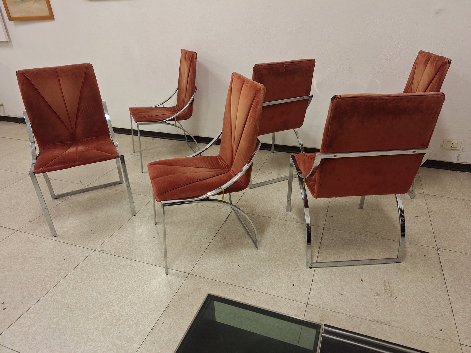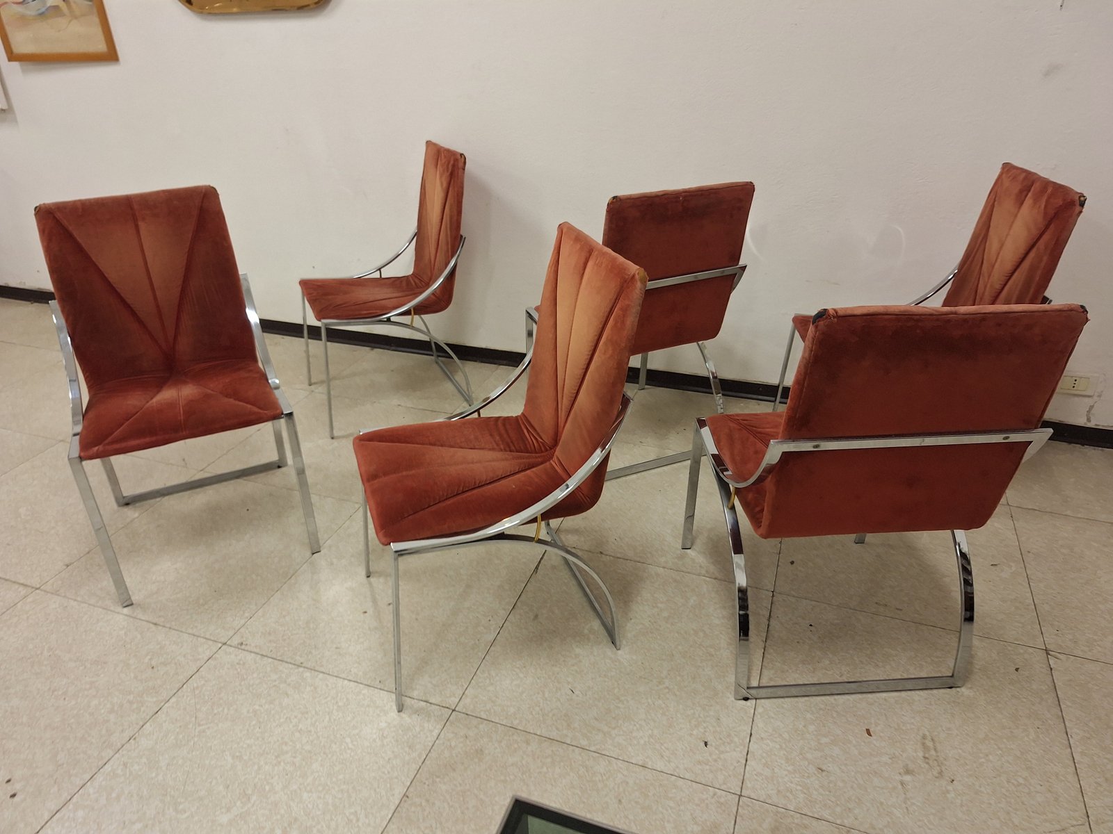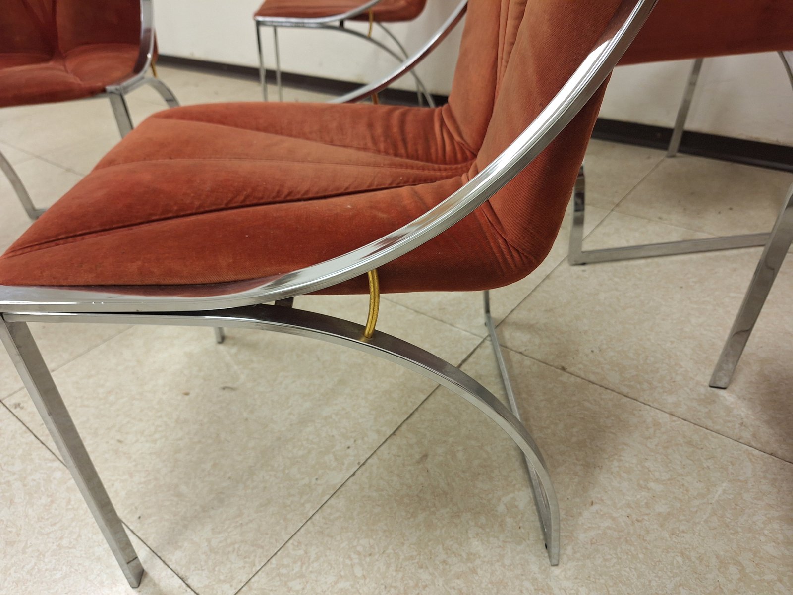 Stühle aus Chrom mit Sitz und Rückenlehne aus Ziegelstoff, 1970er, 6er Set
