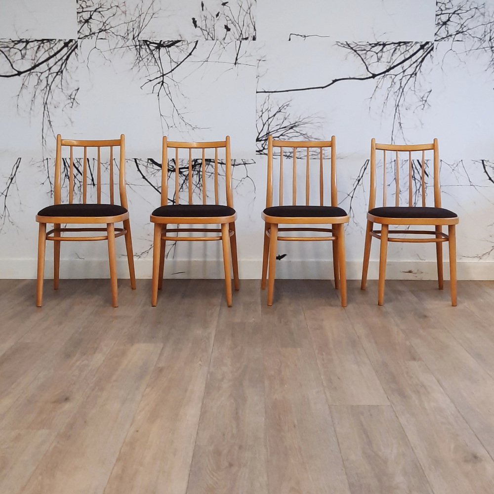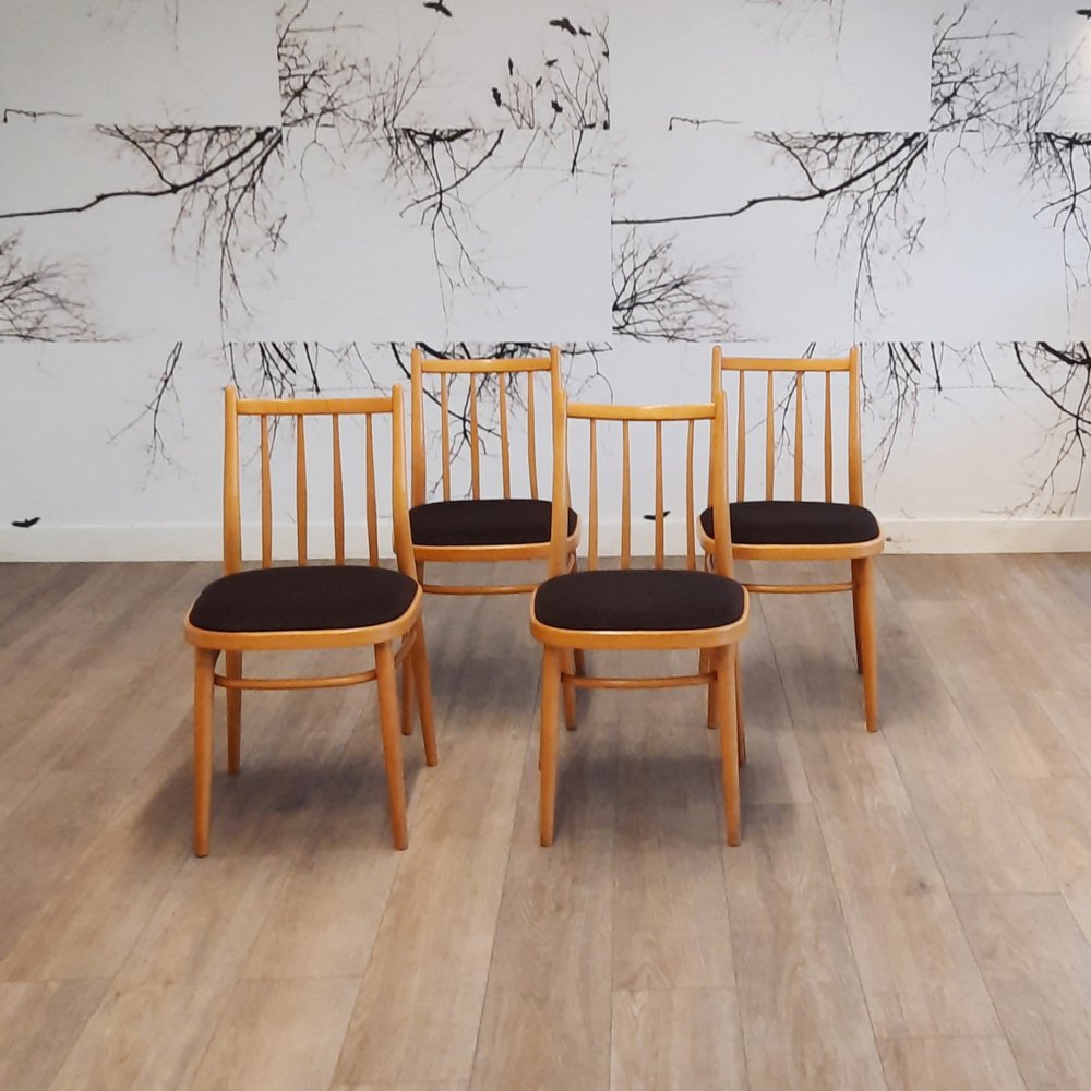 Stühle mit Spindelrücken von Thonet, 1950er-1960er, 4er Set