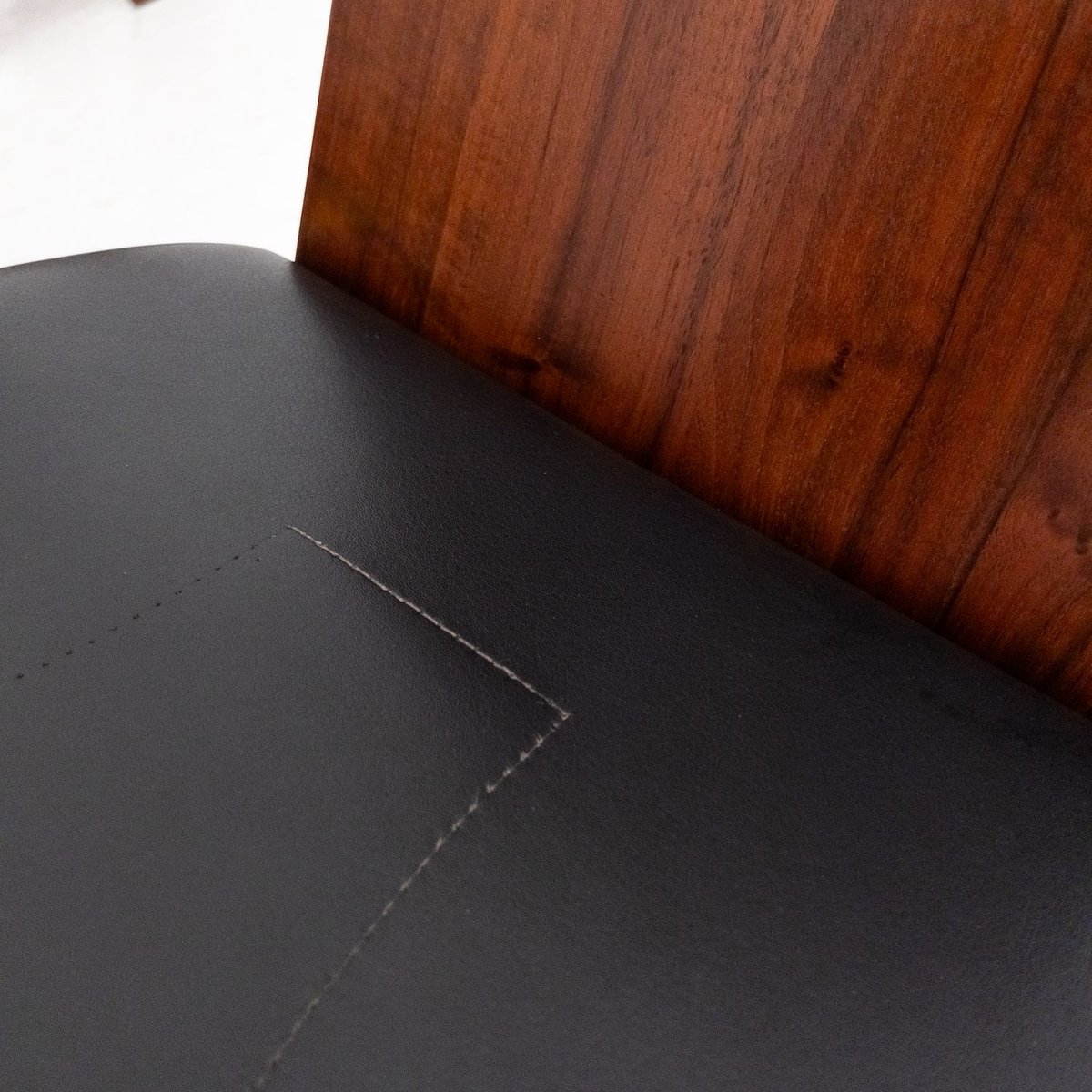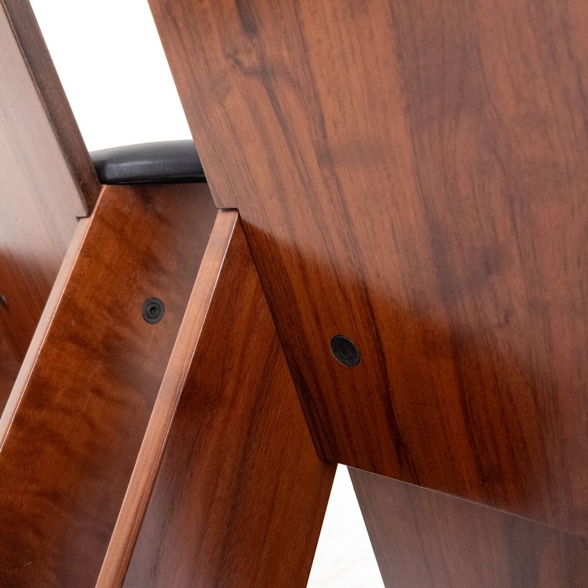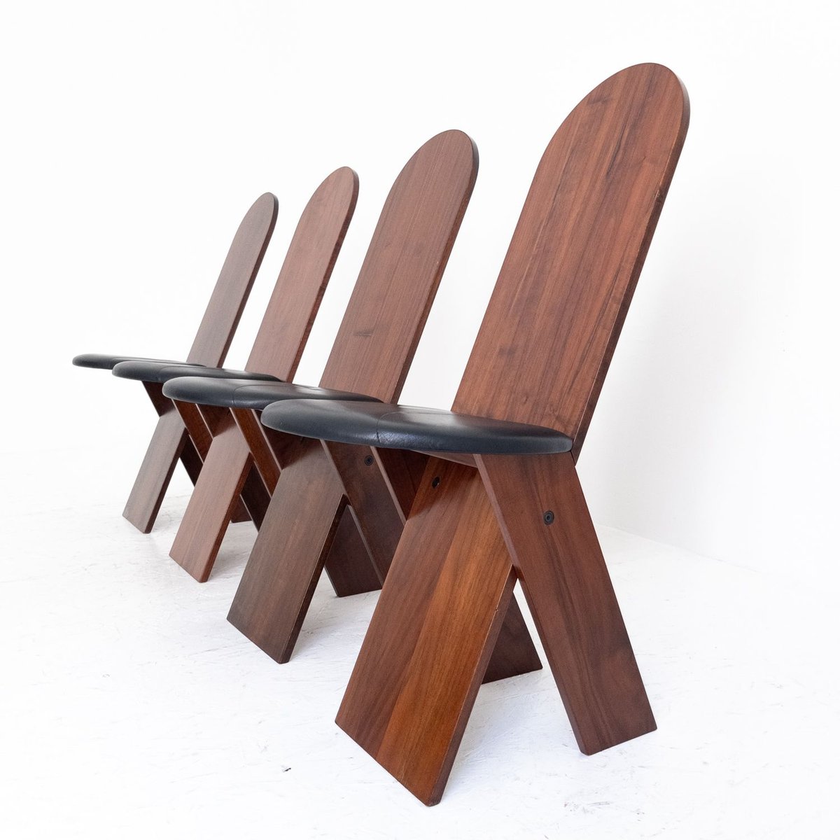 Von Sammlern wegen der handwerklichen Qualität der Materialien geschätzt, sind diese Stühle ein Beispiel für zeitloses italienisches Design, das jedem Raum eine raffinierte Note verleiht. Die SD57-Stühle sind eine perfekte Synthese aus minimalistischem und funktionellem Design von Marco Zanuso, einem der wichtigsten italienischen Designer des 20. Jahrhunderts. Jahrhunderts. Die 1973 für Poggi entworfenen Stühle zeichnen sich durch eine solide Holzstruktur mit einfachen, kantigen Linien aus, die sich harmonisch mit der hochwertigen schwarzen Lederpolsterung der Sitzfläche verbindet. Das schlichte, aber elegante Design unterstreicht das Gleichgewicht zwischen Ästhetik und Funktionalität und macht diese Stühle zur idealen Ergänzung von Vintage-Einrichtungen und modernen oder klassischen Interieurs.