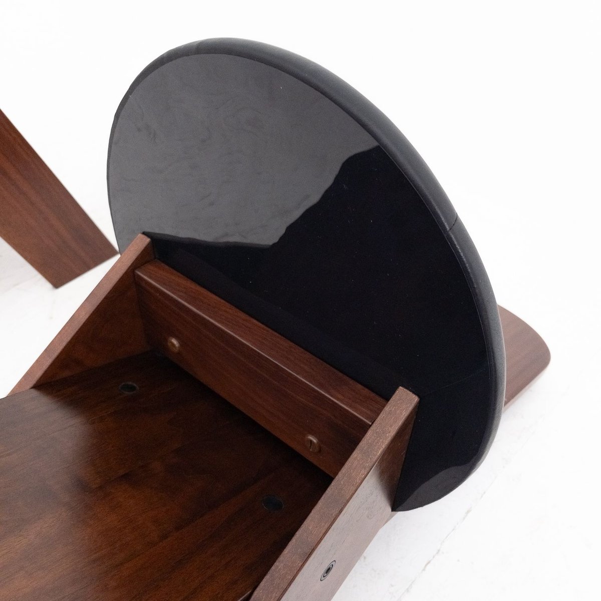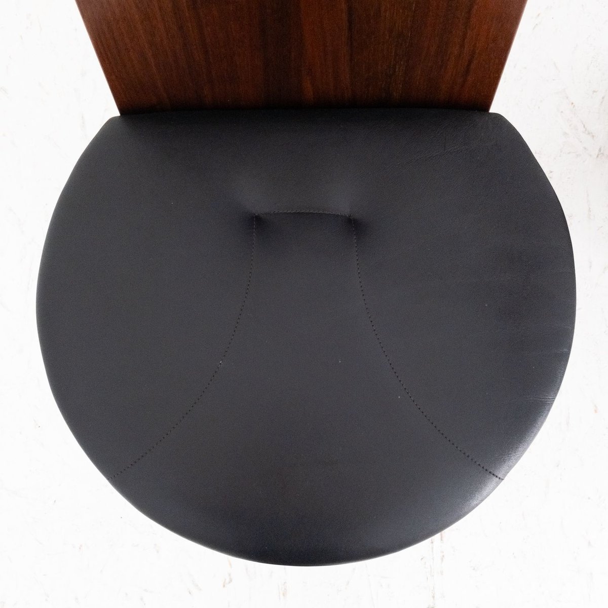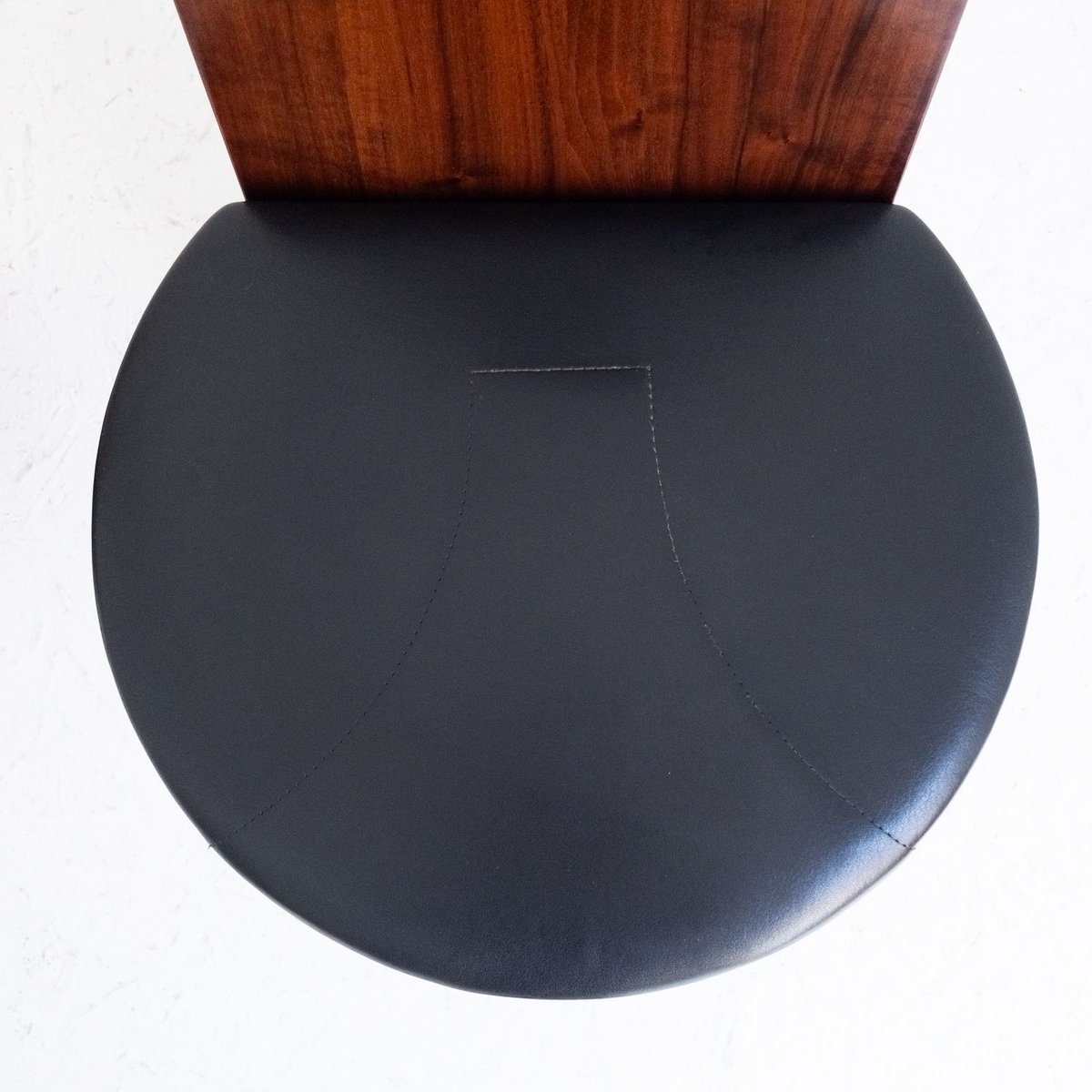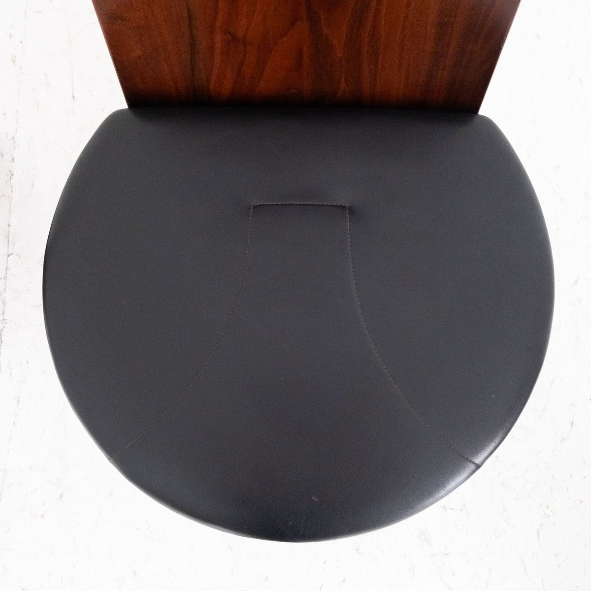 The SD57 chairs represent a perfect synthesis of the minimalist and functional design of Marco Zanuso, one of the most important Italian designers of the 20th century. Designed in 1973 for Poggi, these chairs are characterized by a solid wooden structure with simple, angular lines, which integrates harmoniously with the high-quality black leather padded seat. The sober but elegant design emphasizes the balance between aesthetics and functionality, making these chairs ideal for vintage furnishings and modern or classic interiors.